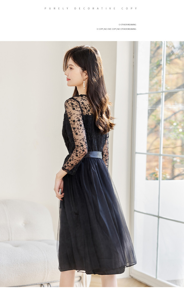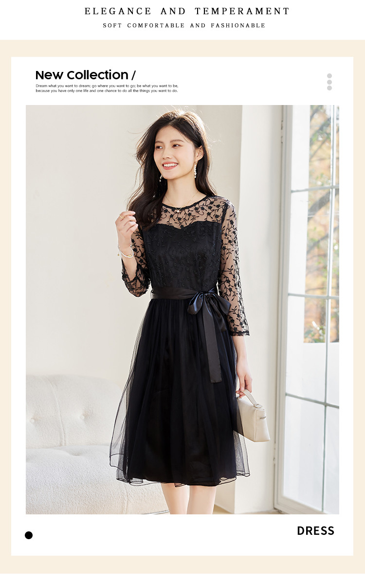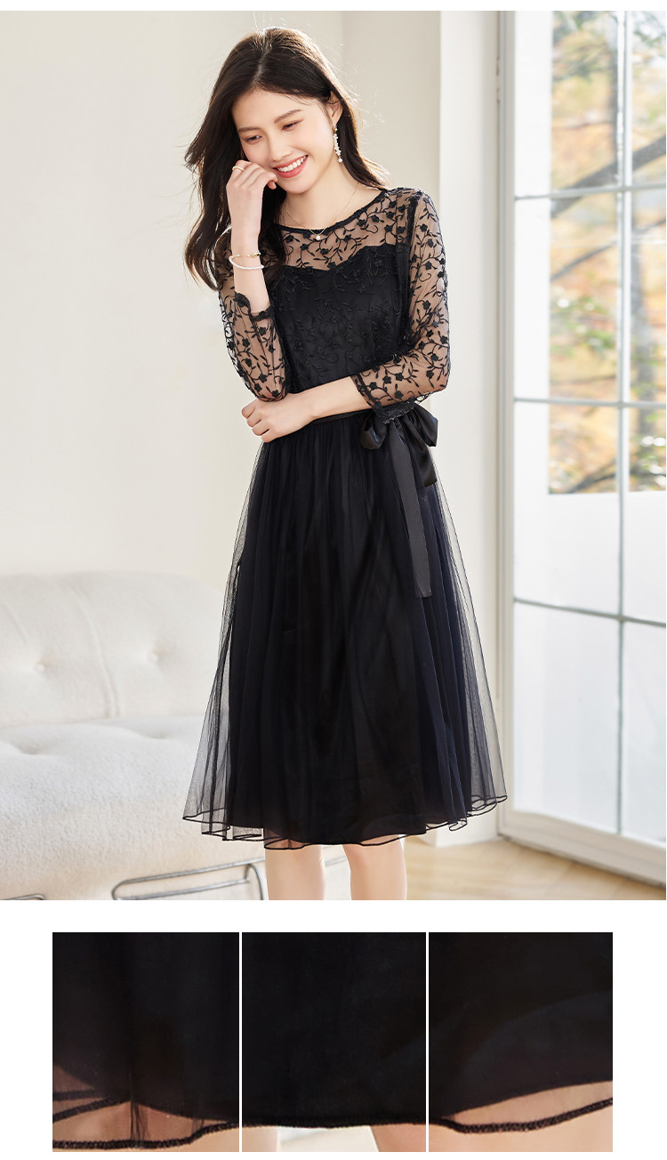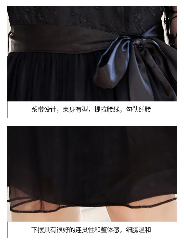 商品名称:【夏装】名媛绣花纯色时尚拼接显瘦七分袖连衣裙 418840