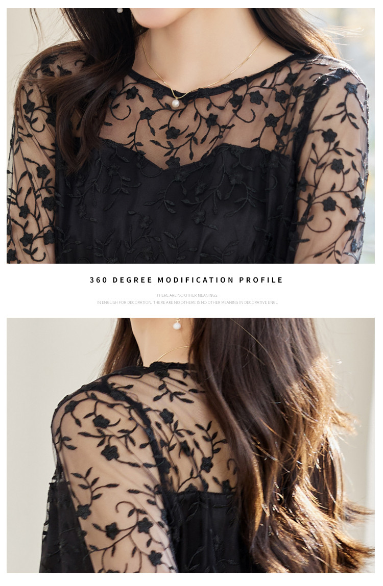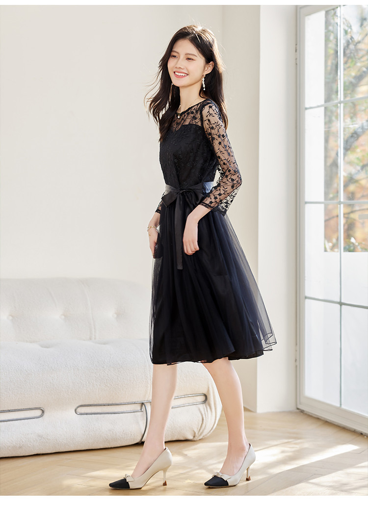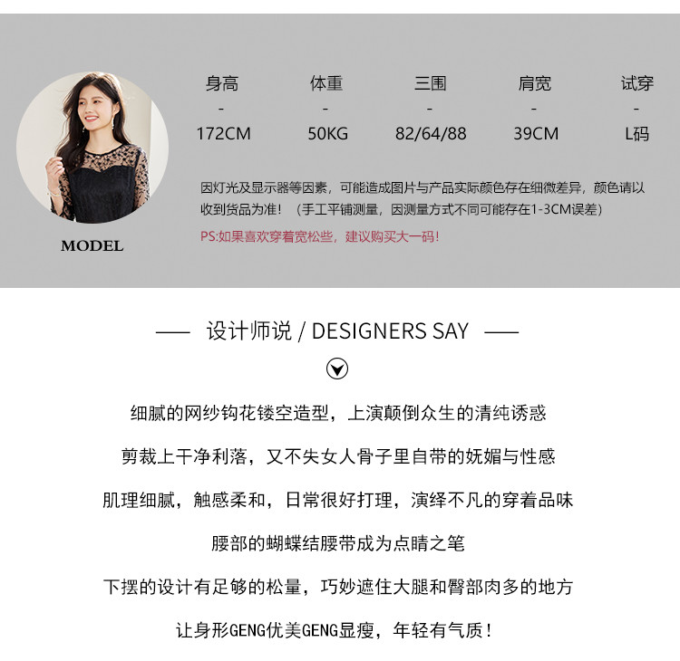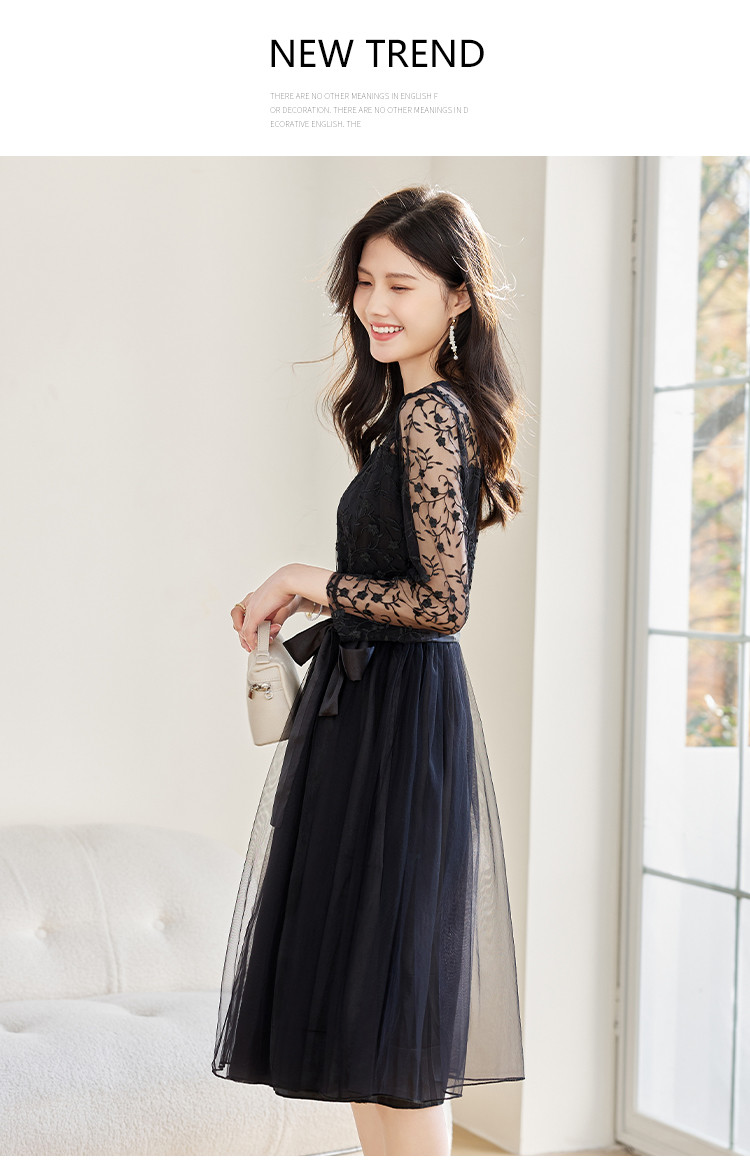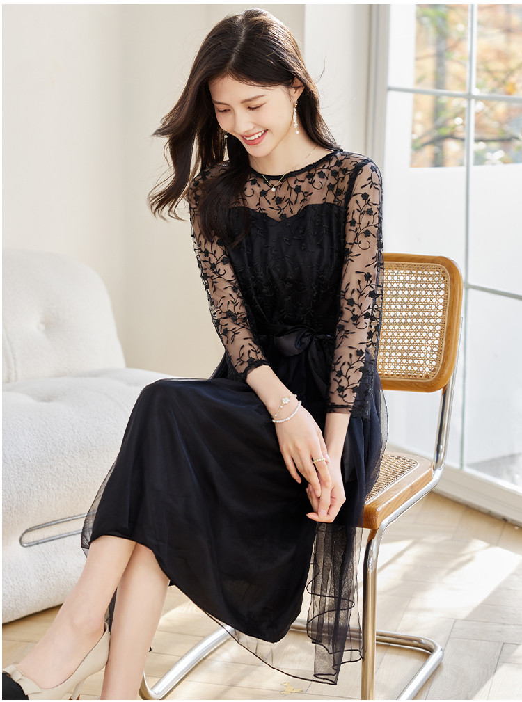 商品名称:【夏装】名媛绣花纯色时尚拼接显瘦七分袖连衣裙 418840
