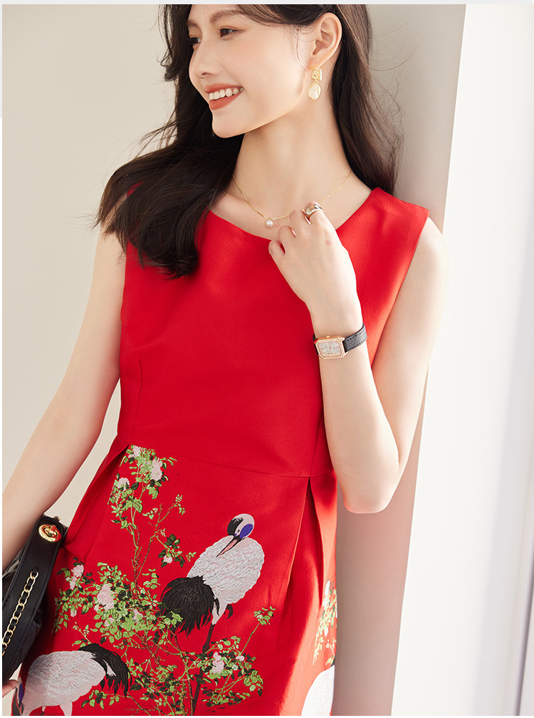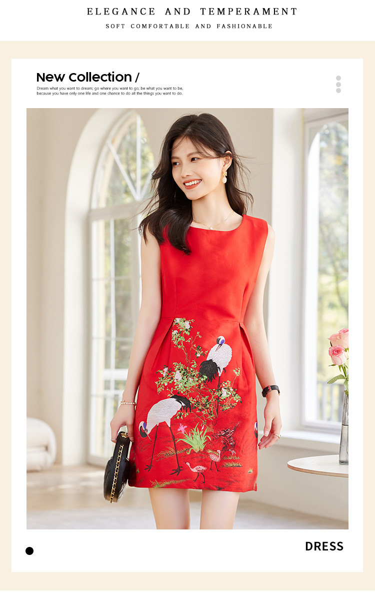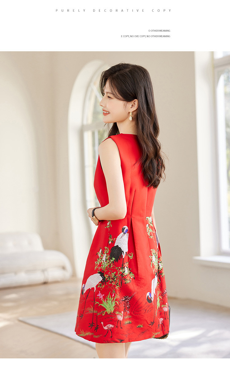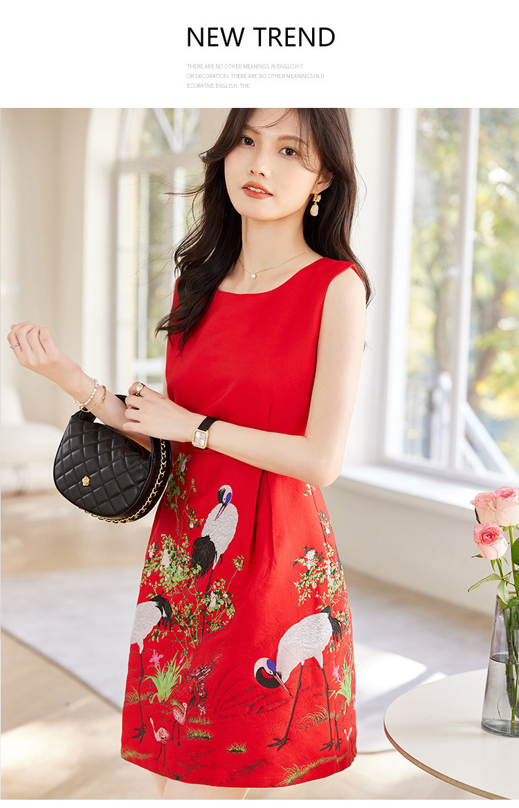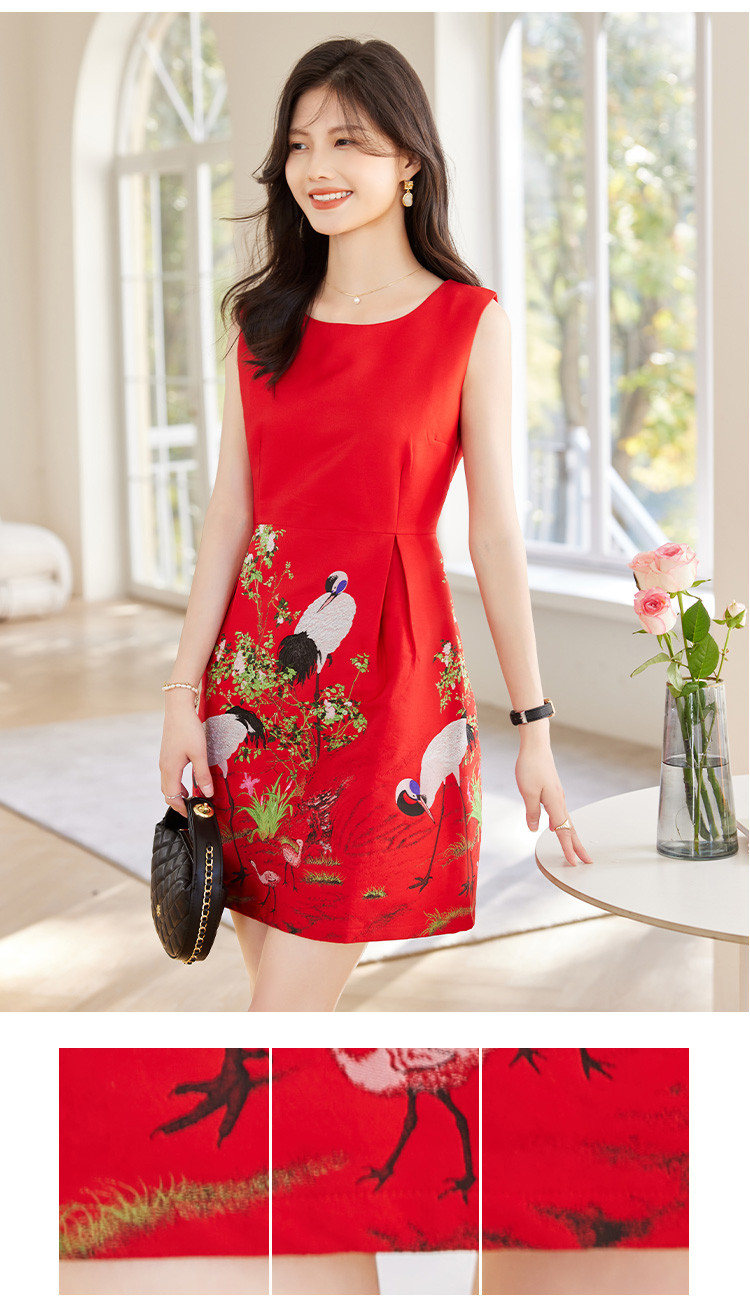 商品名称:2025春装女装时尚简约气质优雅淑女提花圆领无袖连衣裙 080280