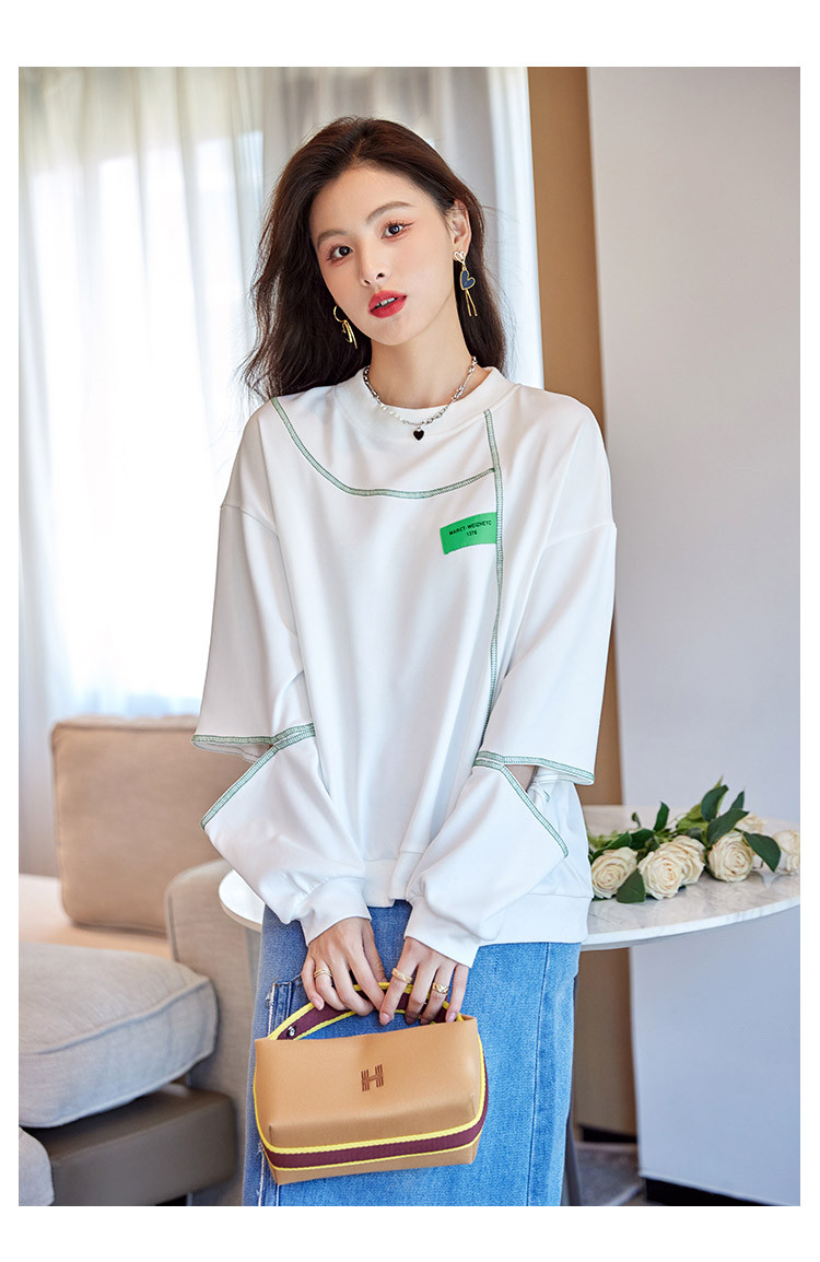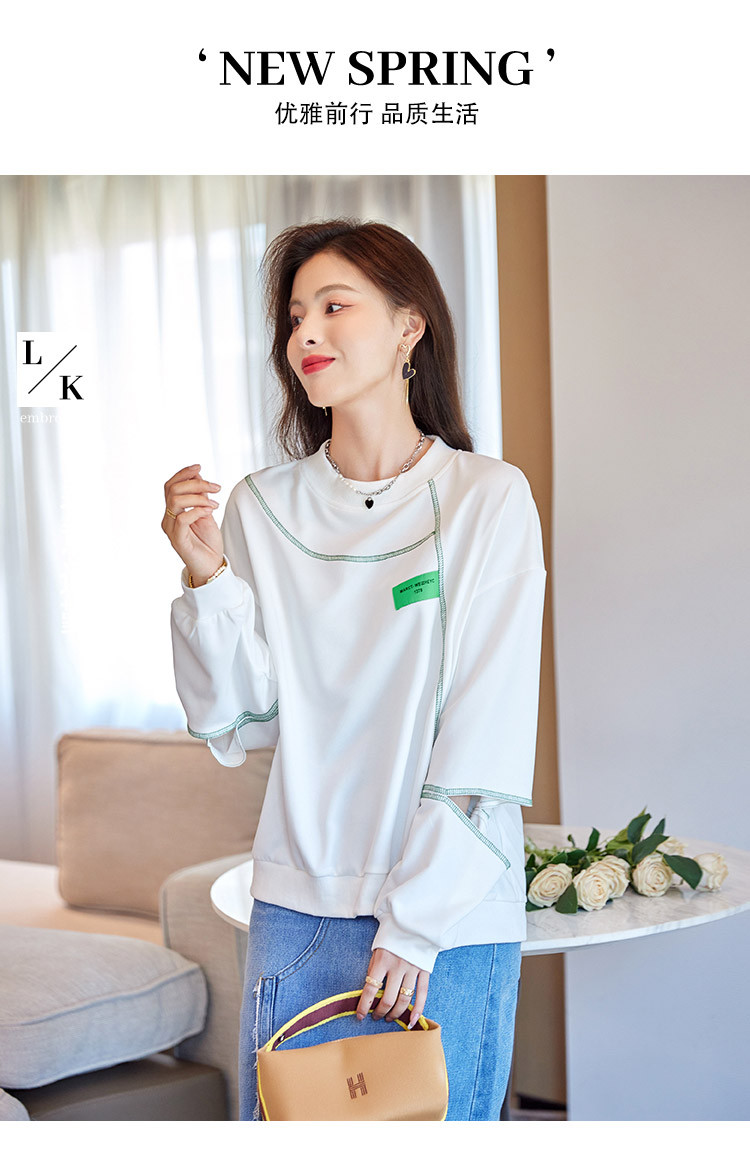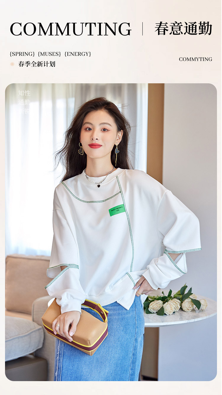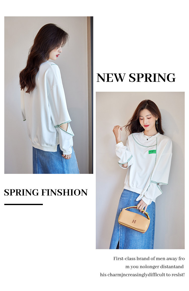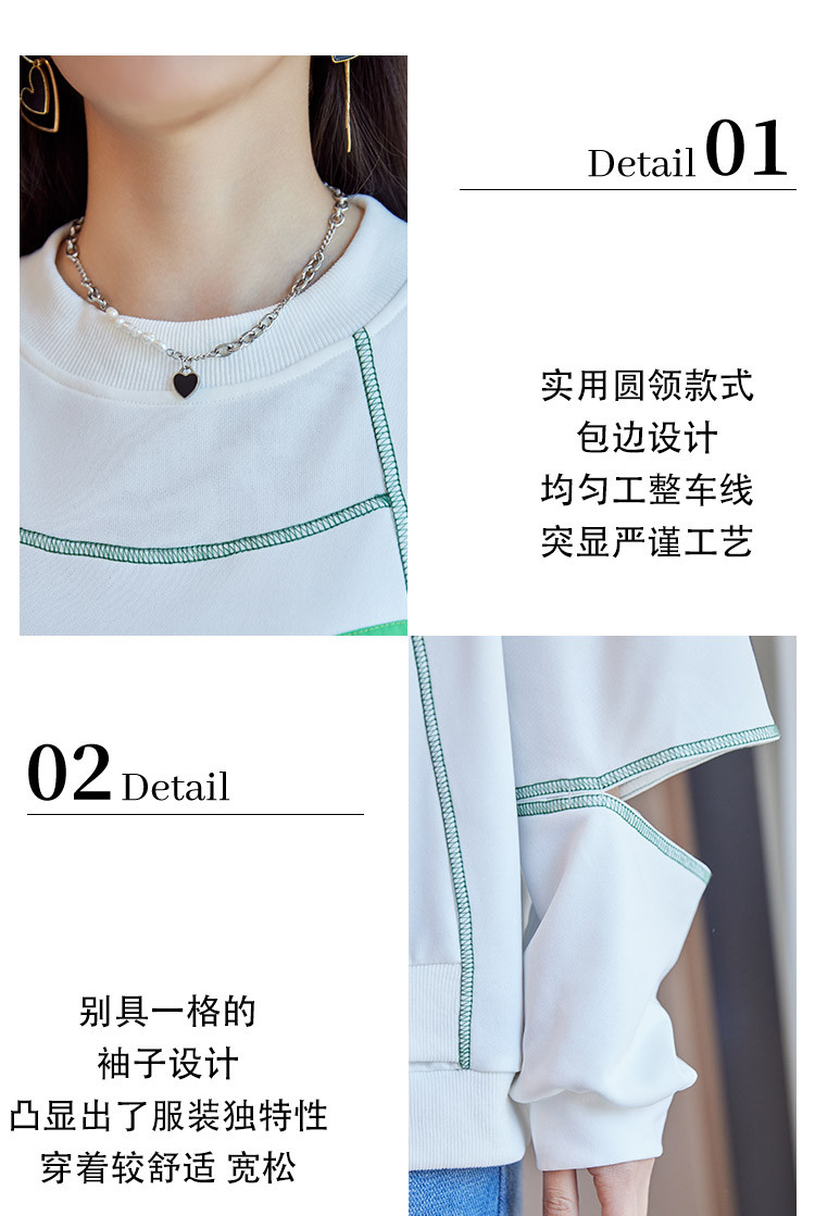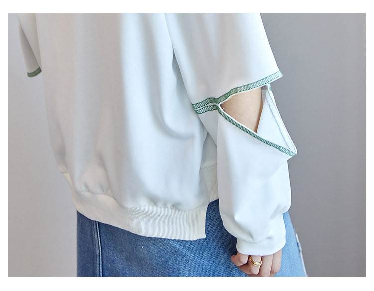 商品名称:春季韩版女式圆领卫衣宽松显瘦袖口破洞设计潮流上衣 220568