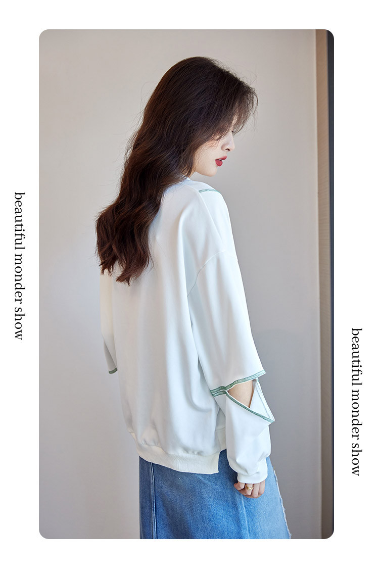 春季韩版女式圆领卫衣宽松显瘦袖口破洞设计潮流上衣 220568