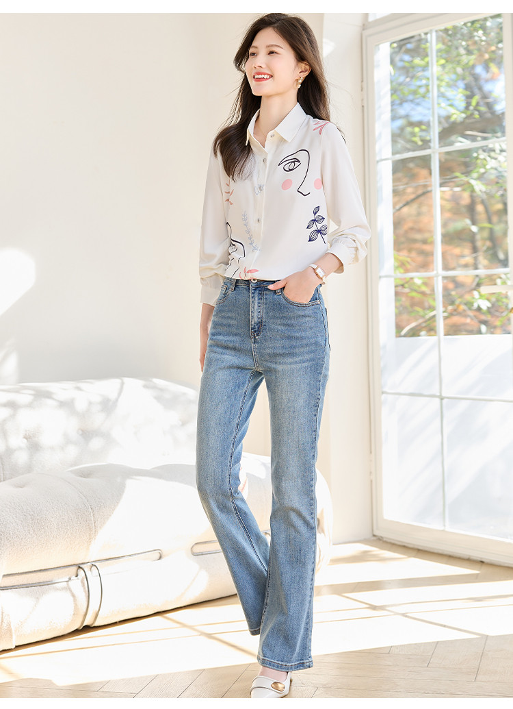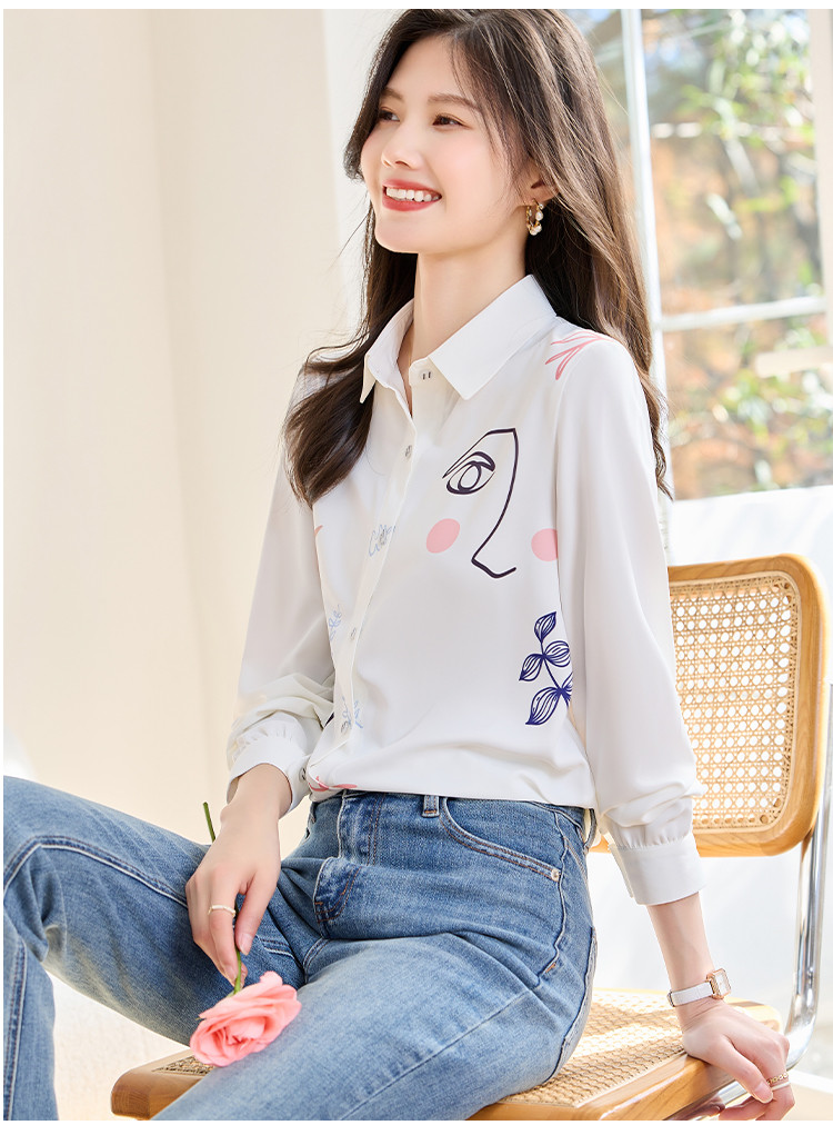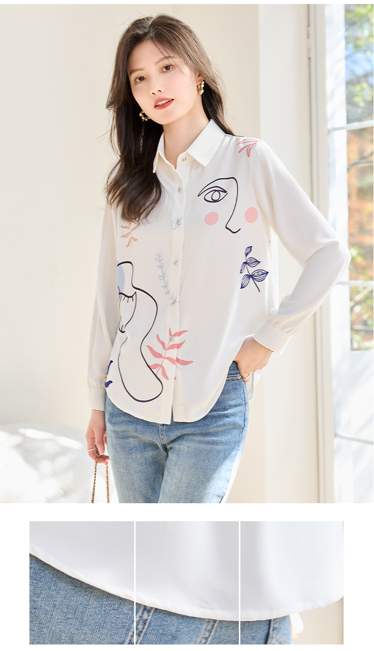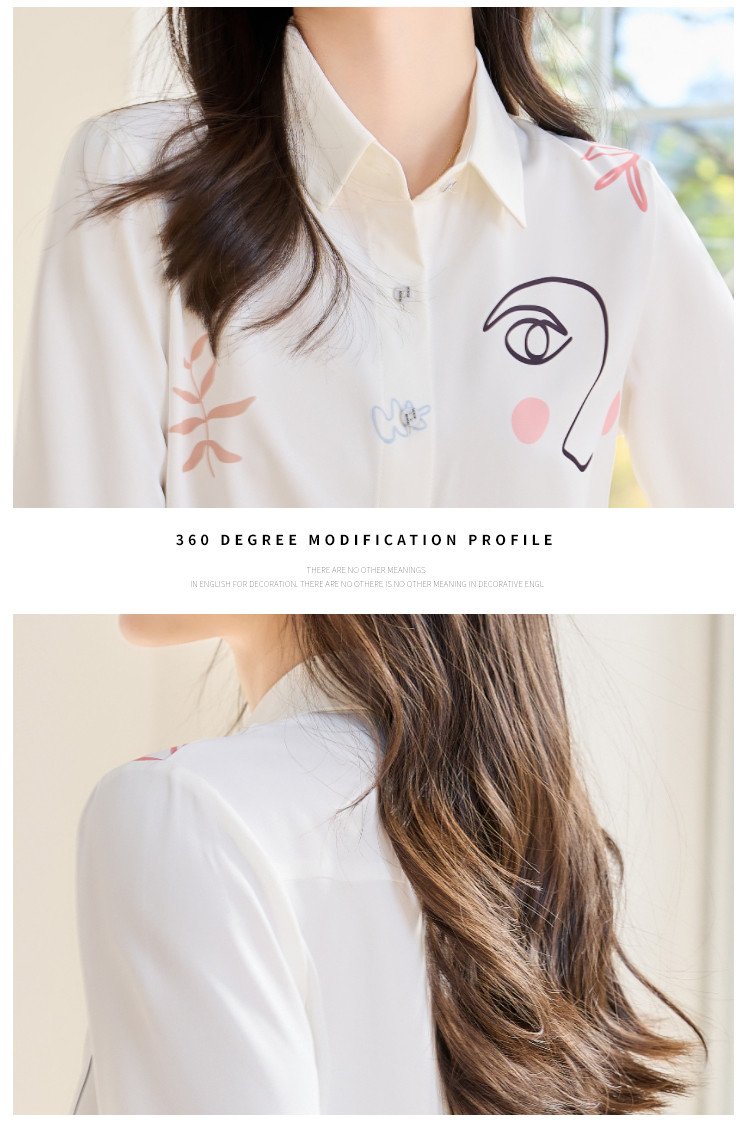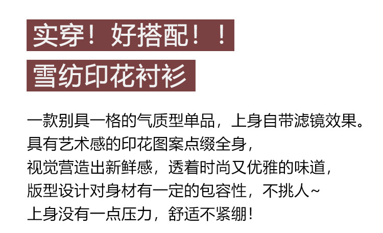 春装时尚荷叶领个性印花雪纺女长袖衬衫显瘦上衣 476184
