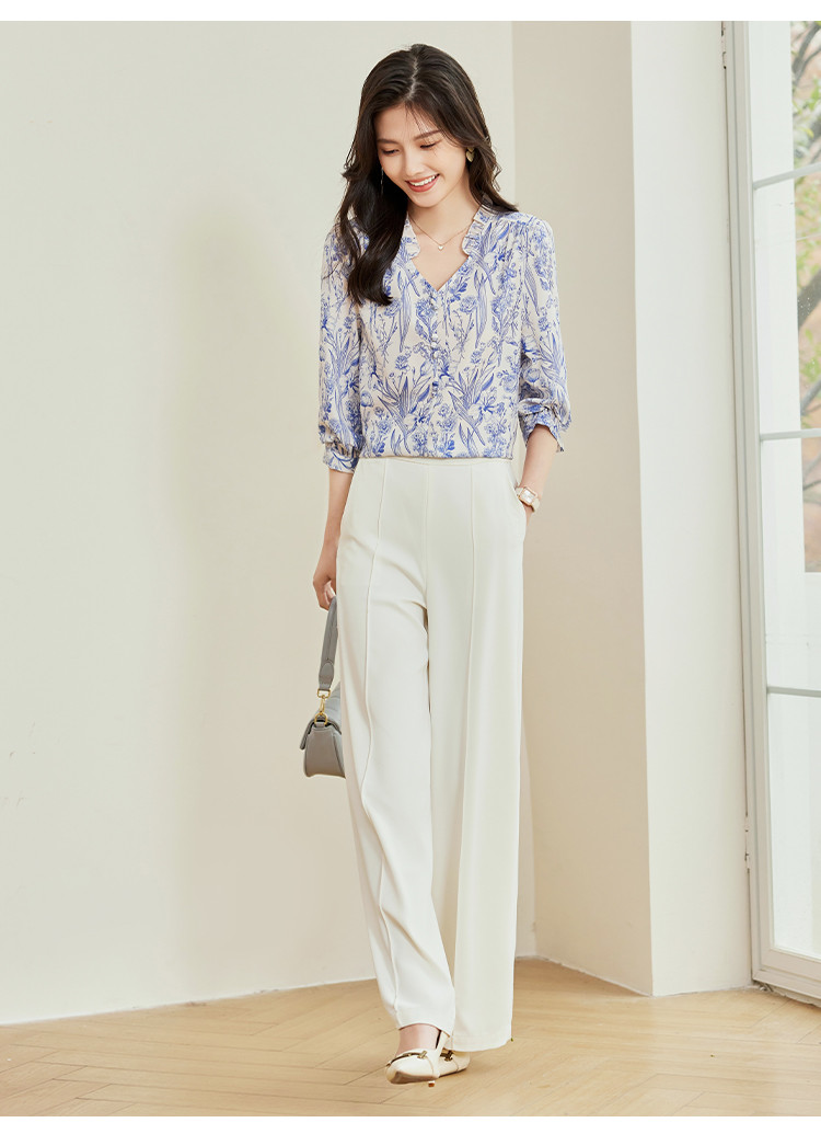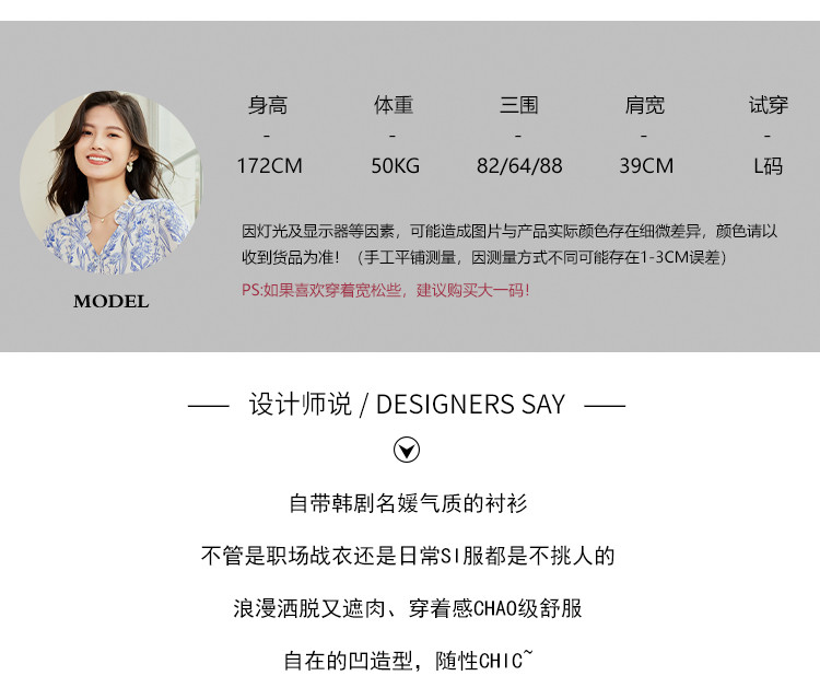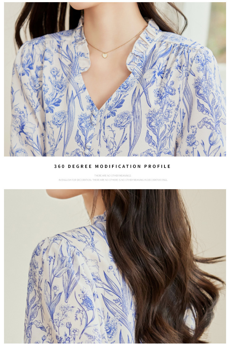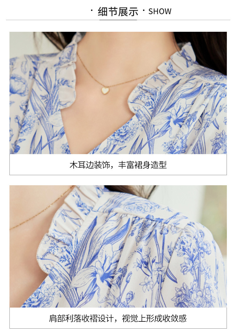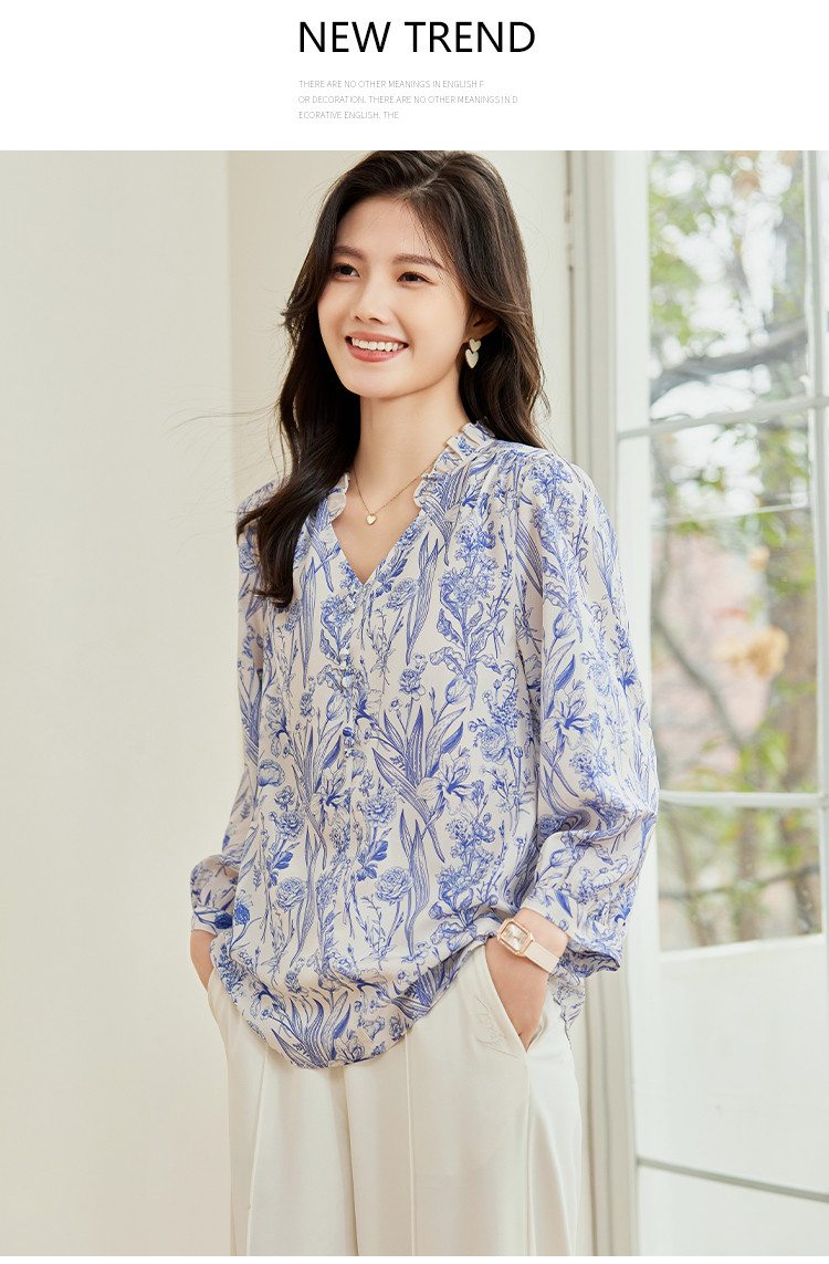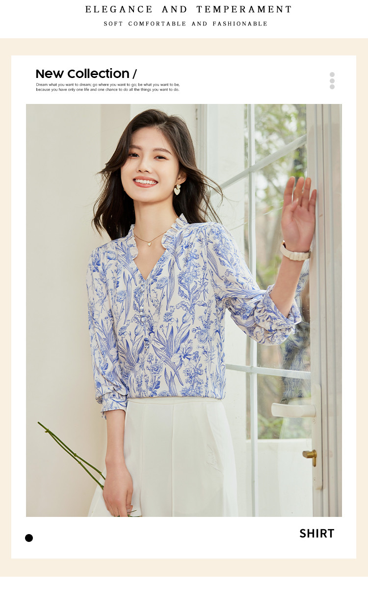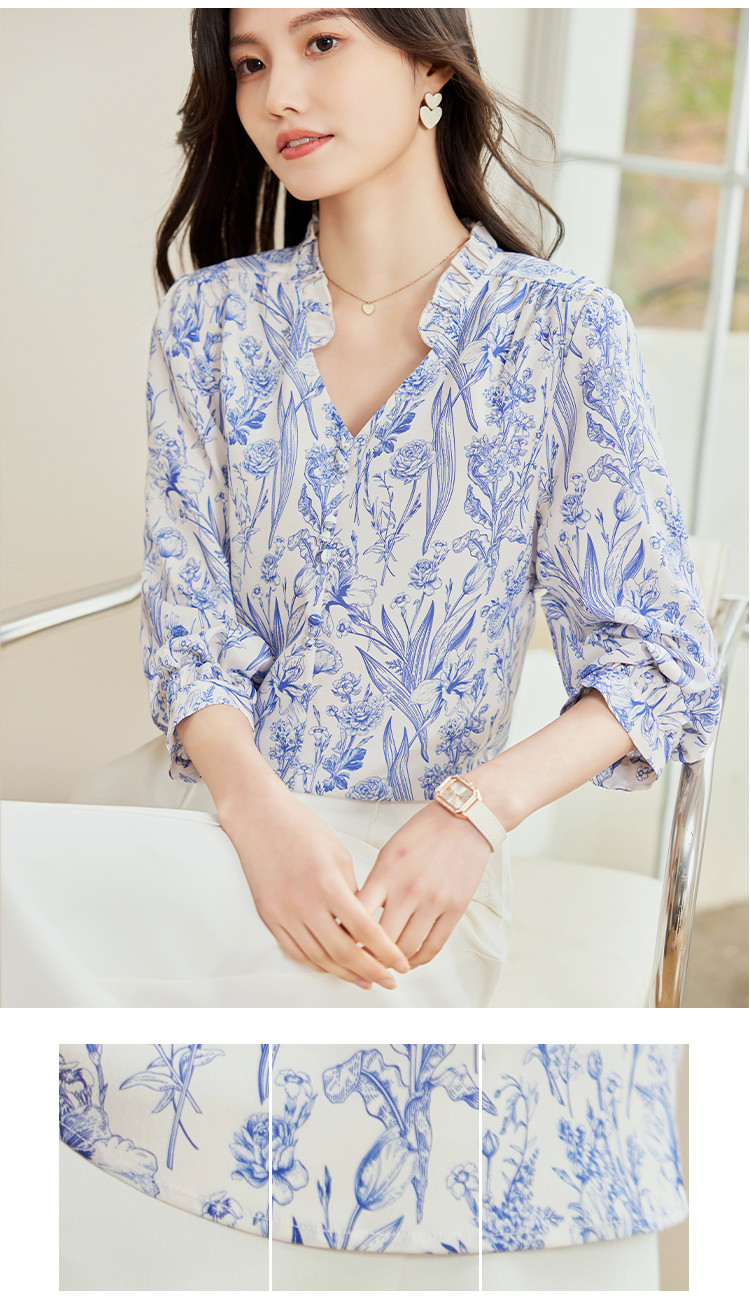 商品名称:春装时尚优雅个性印花开领雪纺女式长袖衬衫 963672