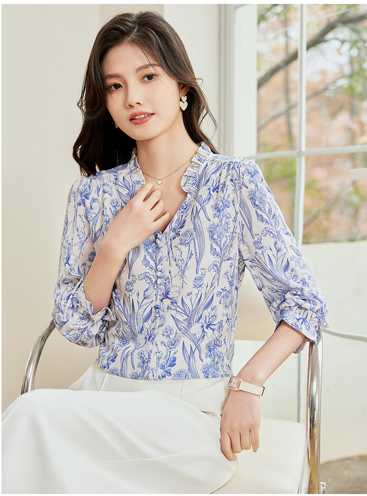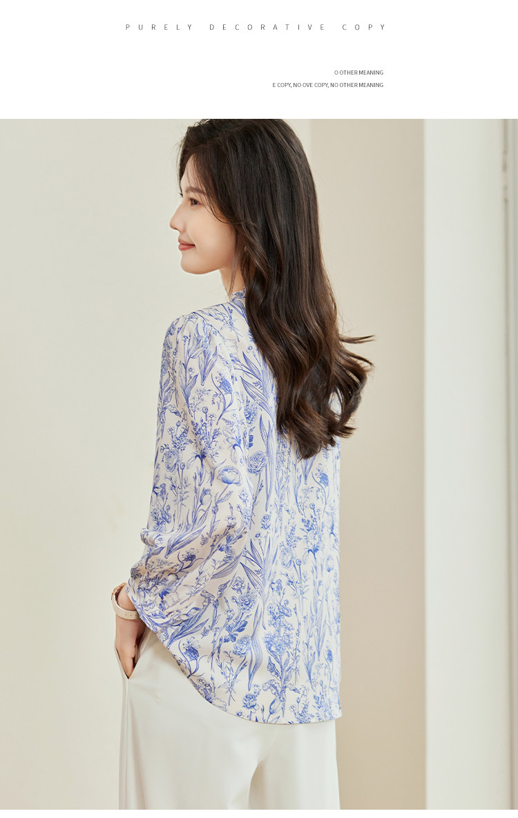 春装时尚优雅个性印花开领雪纺女式长袖衬衫 963672