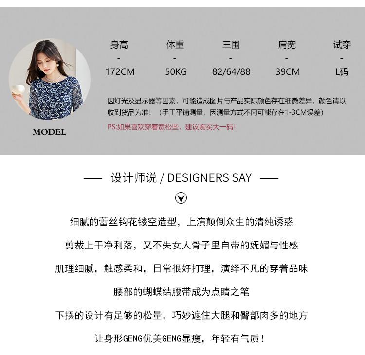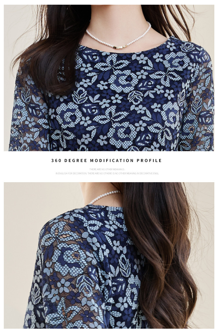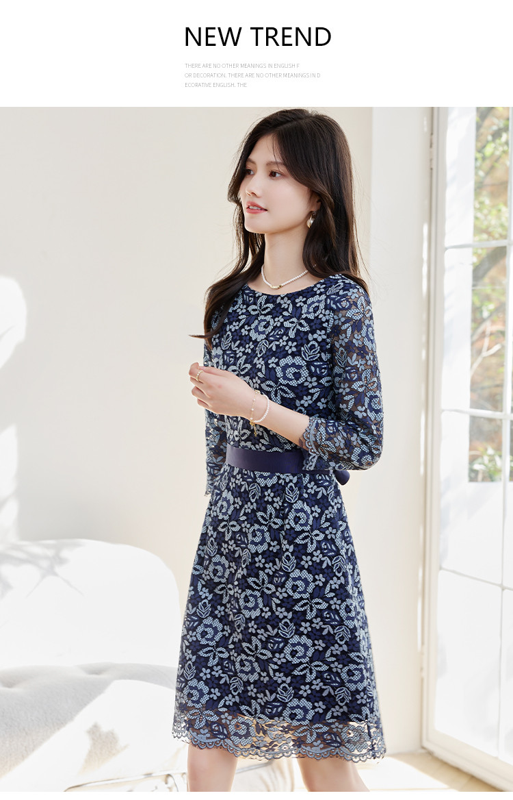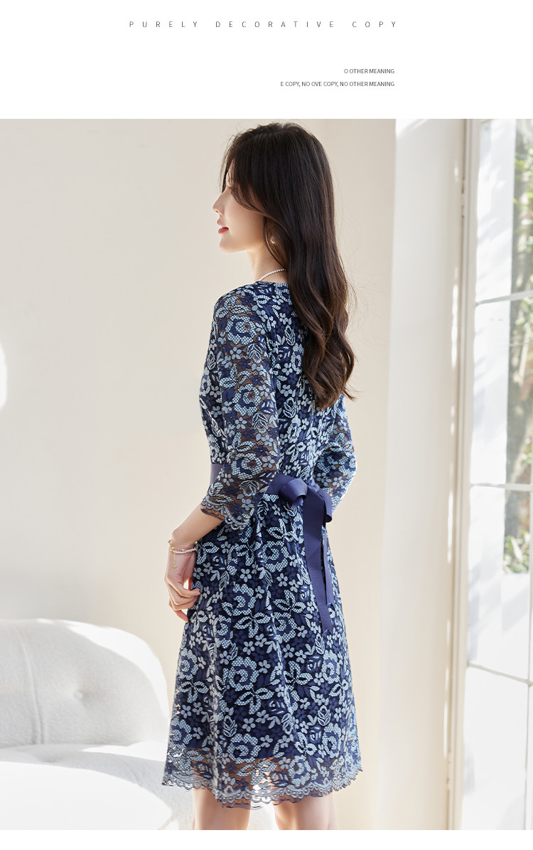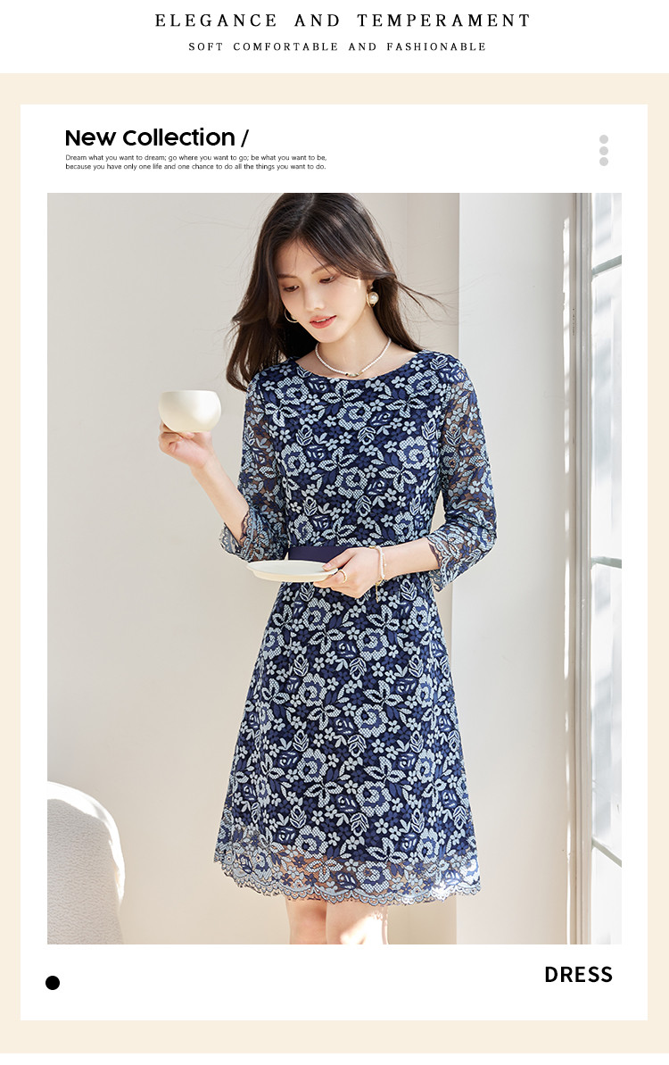 商品名称:春装女装时尚复古花型气质七分袖连衣裙 390168