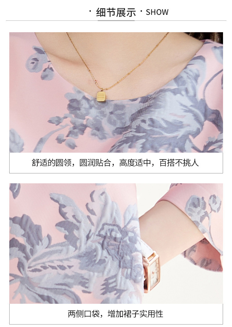 商品名称:春装女装优雅简约时尚气质清新淑女提花七分袖显瘦连衣裙 658712