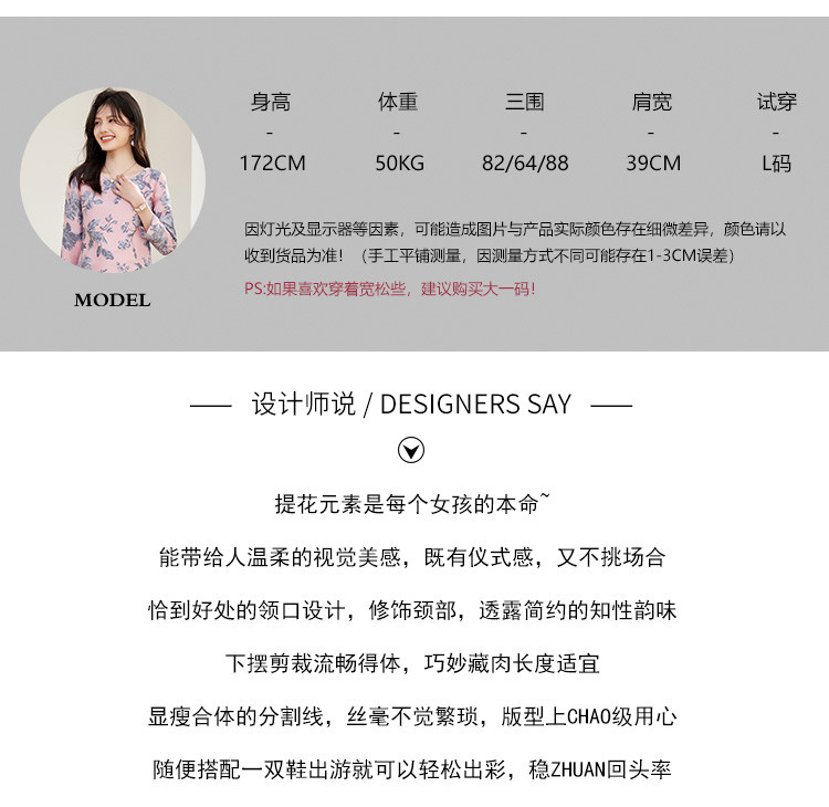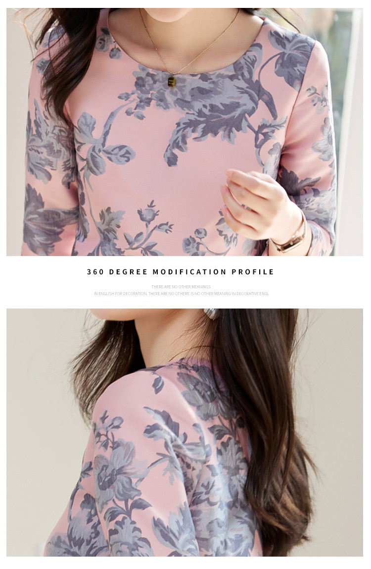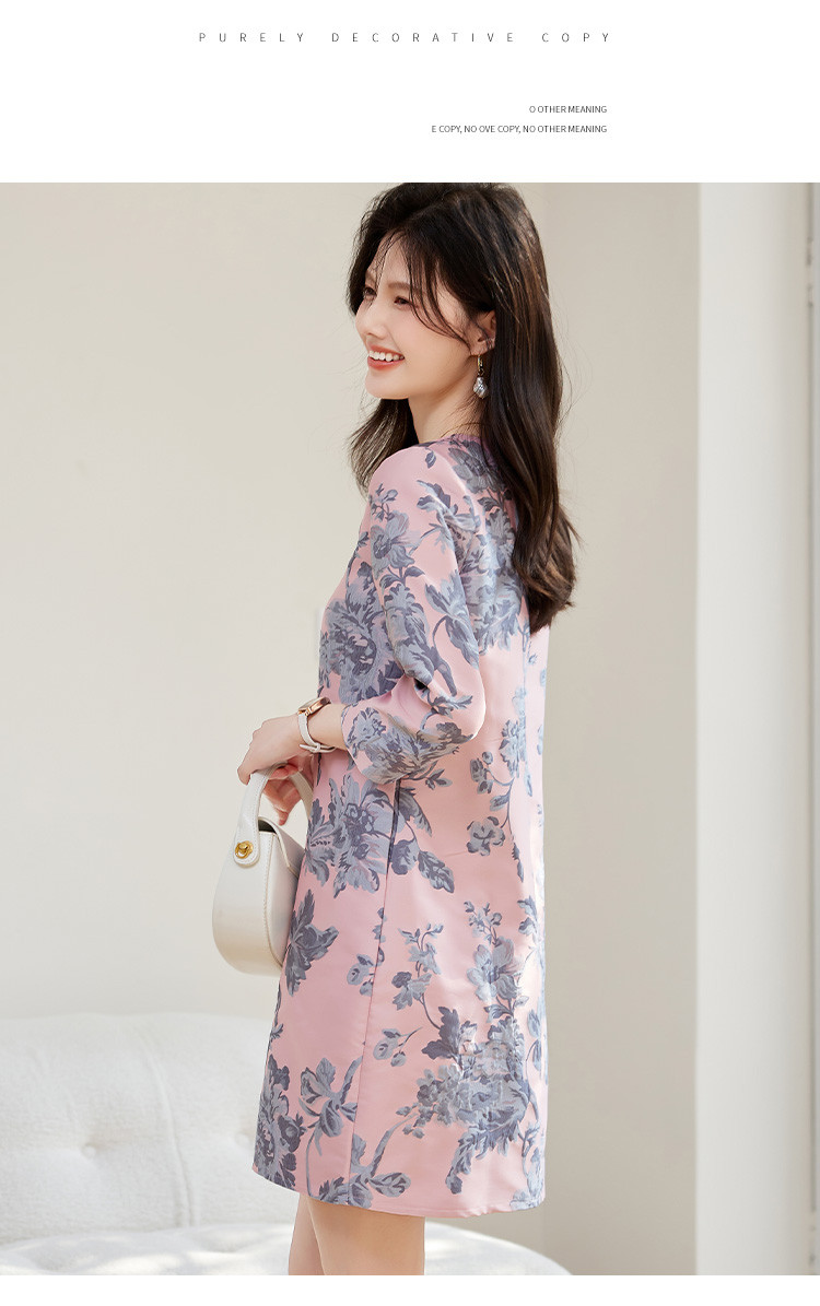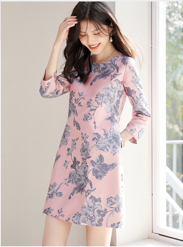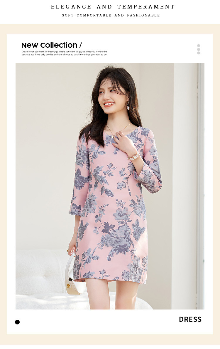 春装简约大气时尚印花修身显瘦气质圆领七分袖连衣裙 023448