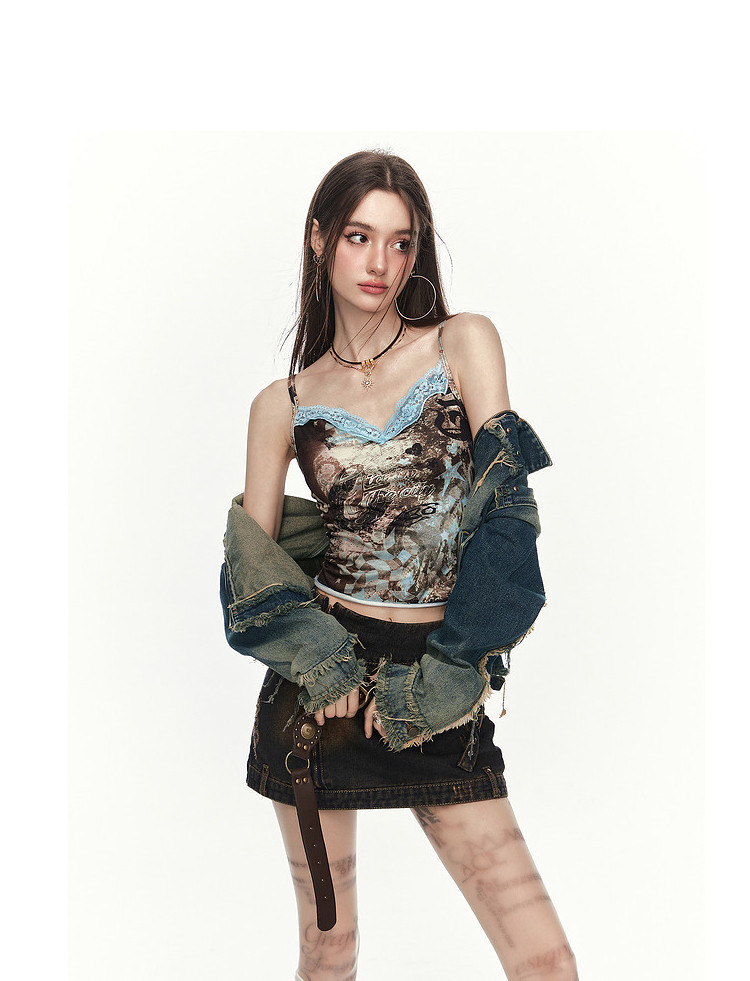 【秋季热卖】设计感毛边牛仔外套女春秋款分割线铆钉装饰小众上衣 918356