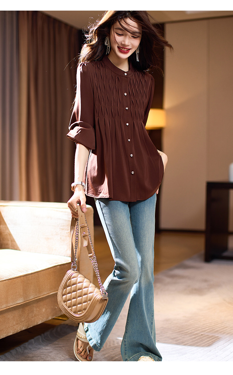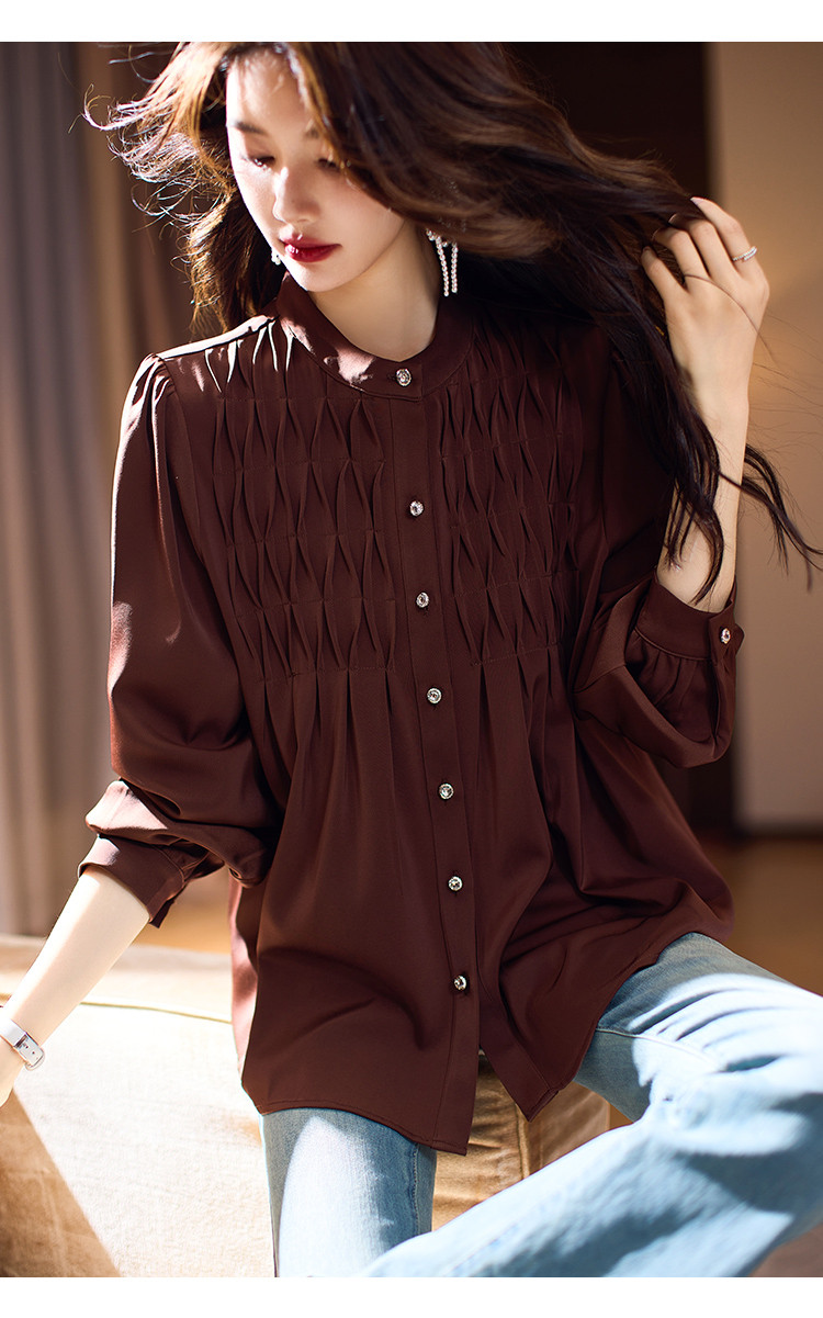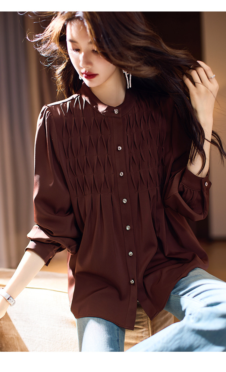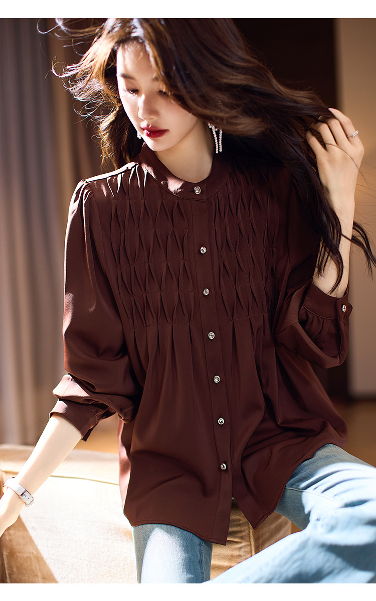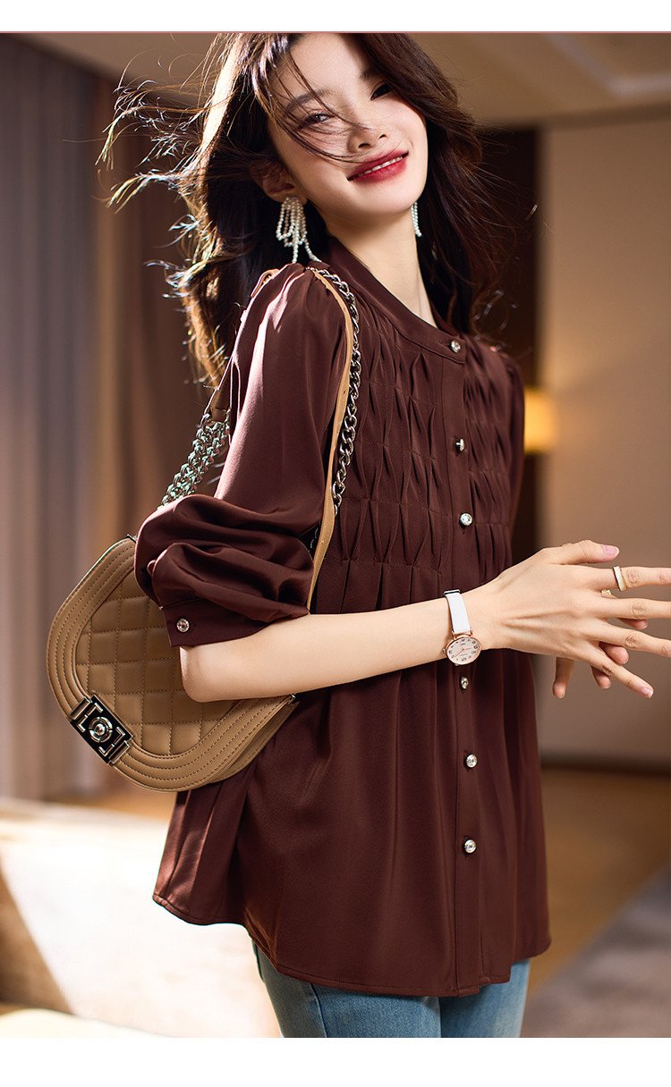 商品名称:法式复古衬衫女2025春夏新款高级感肌理衬衣长袖气质雪纺衫女 361481
