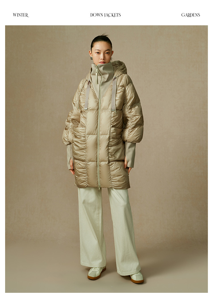 【国风系列】新中式鹅绒羽绒服女冬季连帽中长款外套 627222