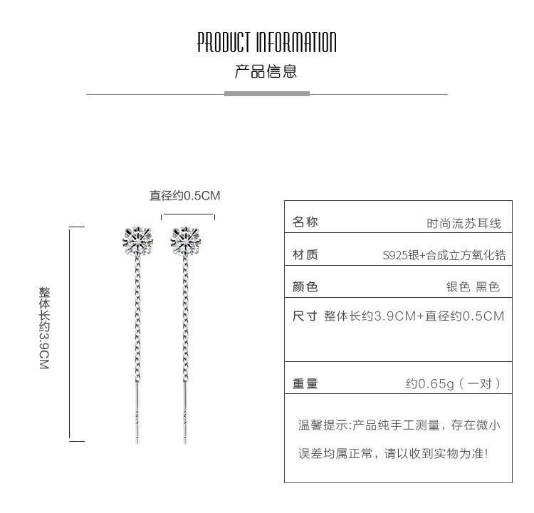 商品名称:S925纯银长款耳线个性时尚百搭耳环耳饰简约 380801