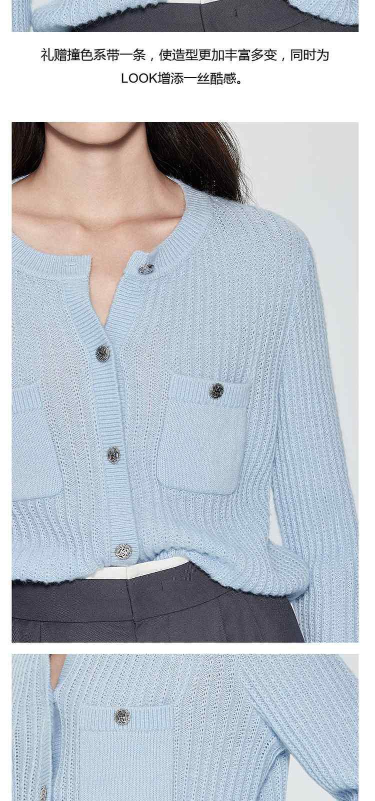 商品名称:春装 软糯马海毛羊毛混纺显瘦坑条肌理慵懒风针织外套 119951