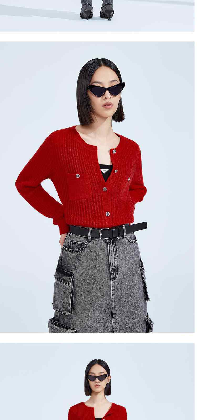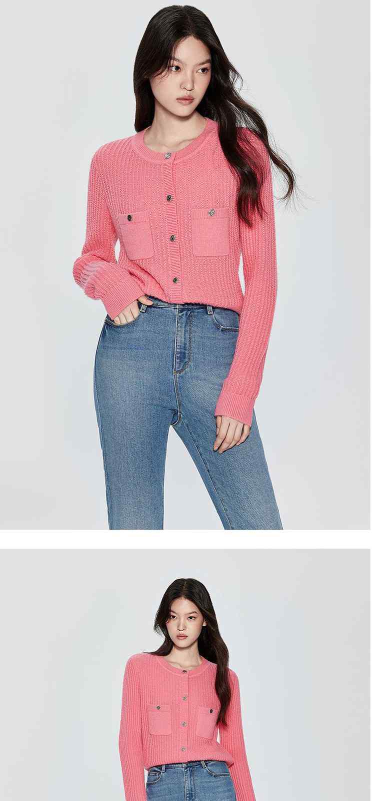 春装 软糯马海毛羊毛混纺显瘦坑条肌理慵懒风针织外套 119951