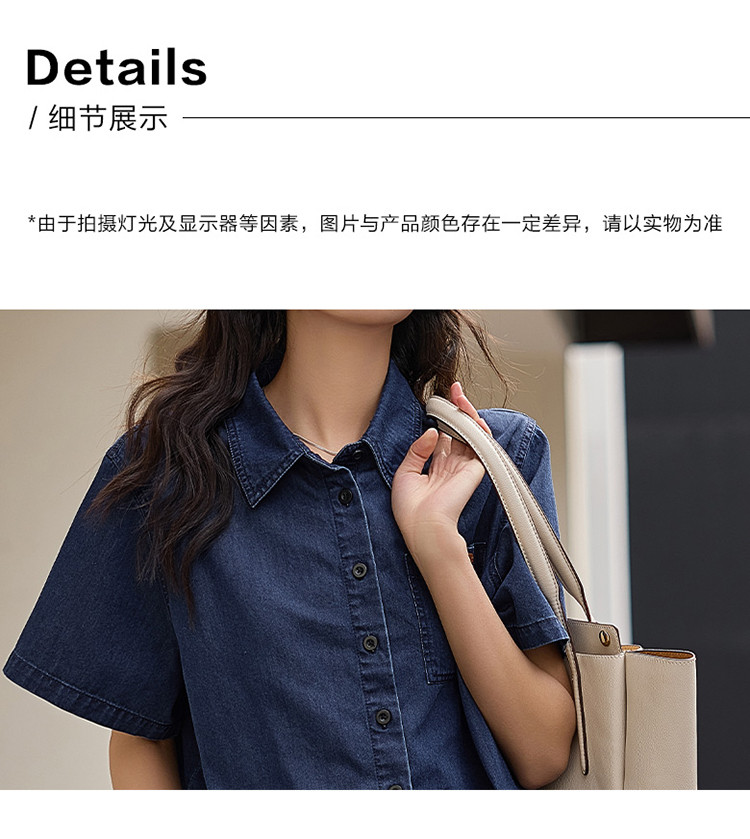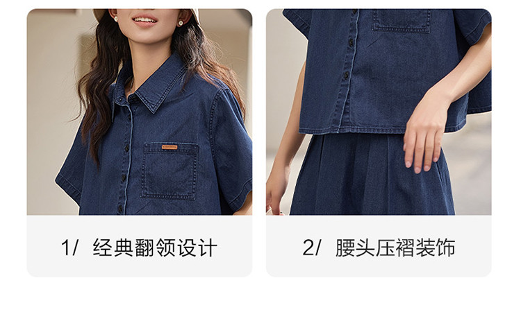 商品名称:【牛仔套装】夏款网红风翻领短袖纯色牛仔半裙两件套女 248386