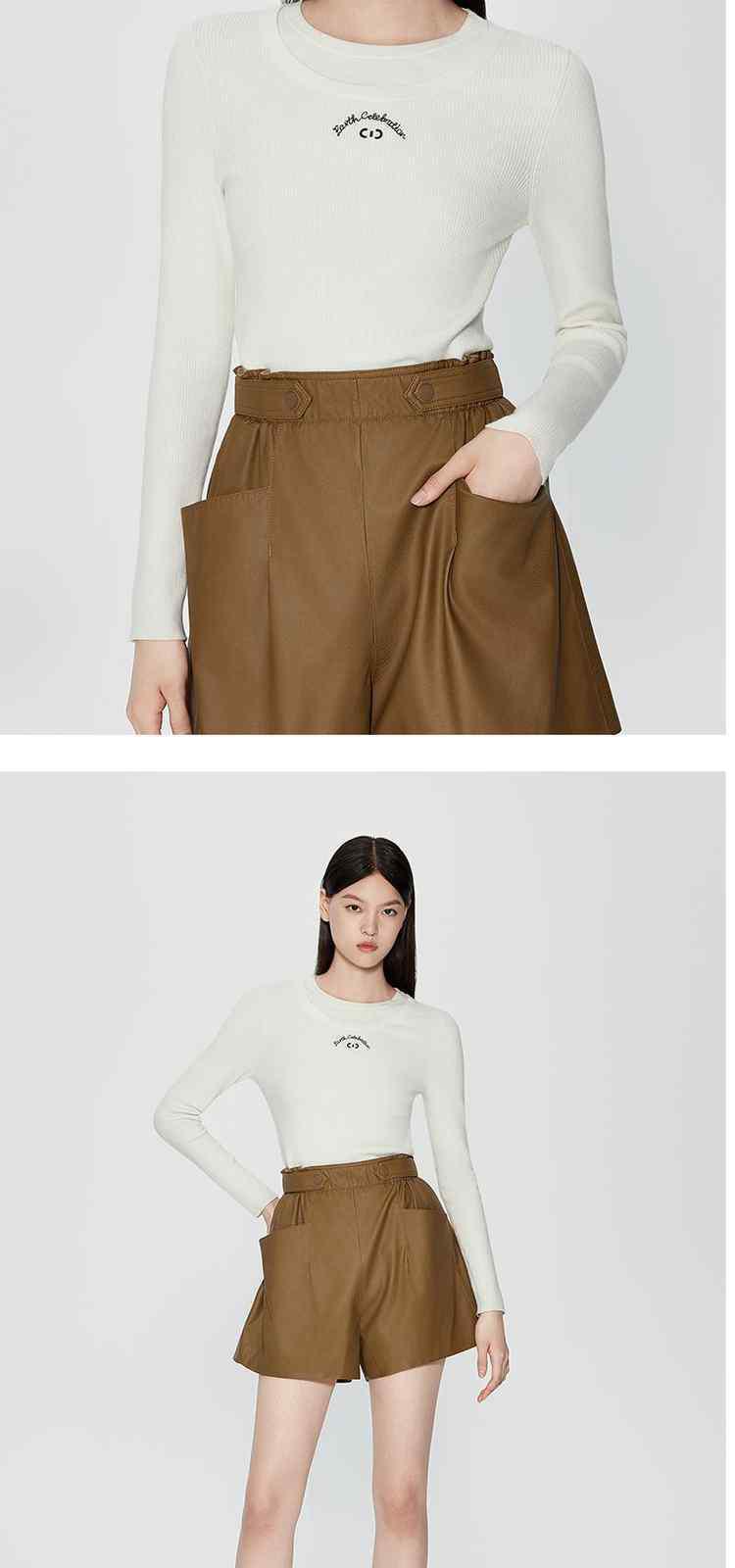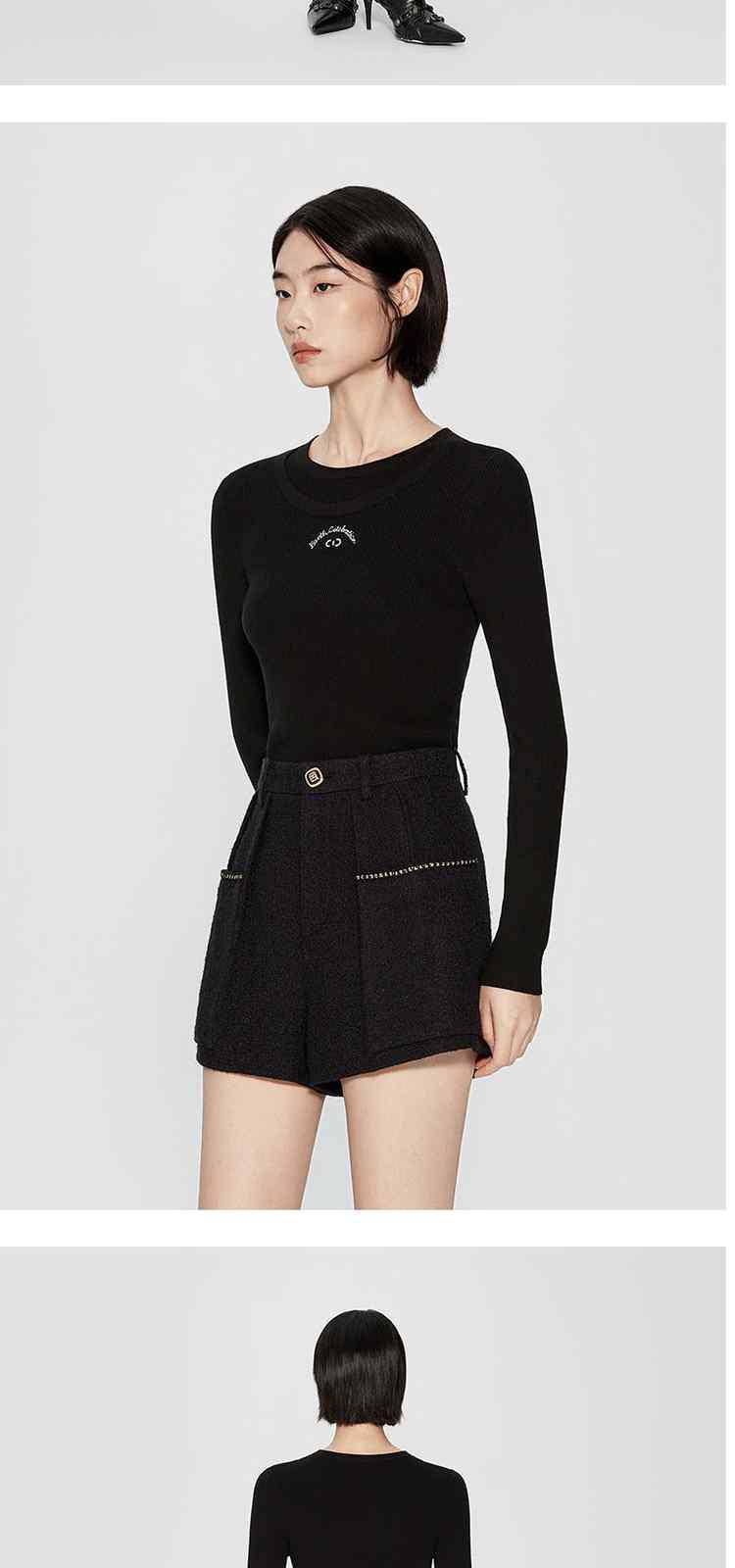 春装 绣花拼接修身打底珍珠纤维毛衣女 698383