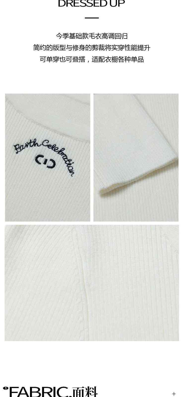 商品名称:春装 绣花拼接修身打底珍珠纤维毛衣女 698383