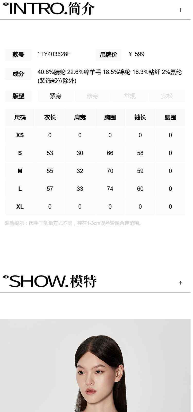 袖长(cm)