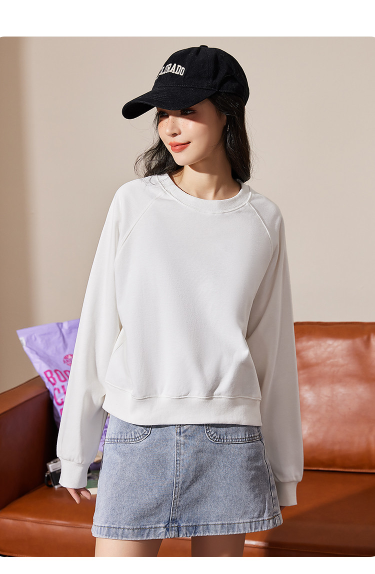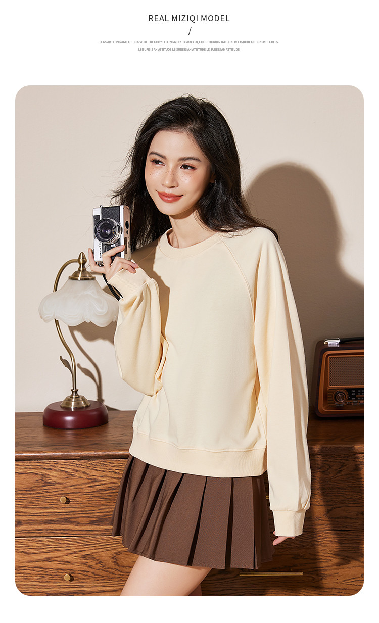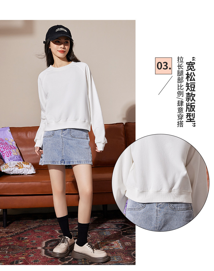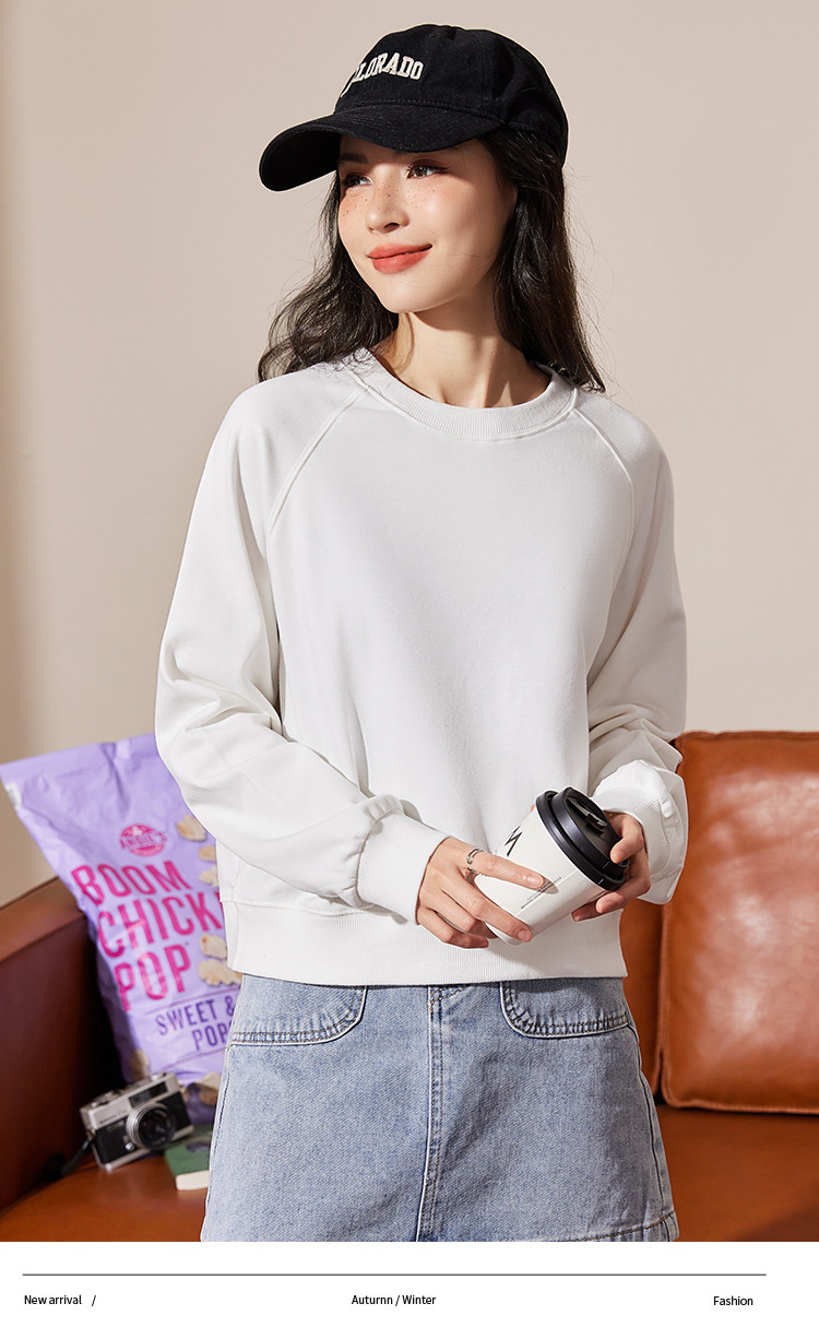 商品名称:米子旗春秋款圆领女士卫衣外套宽松短款慵懒风卫衣女 165850