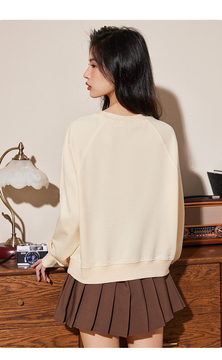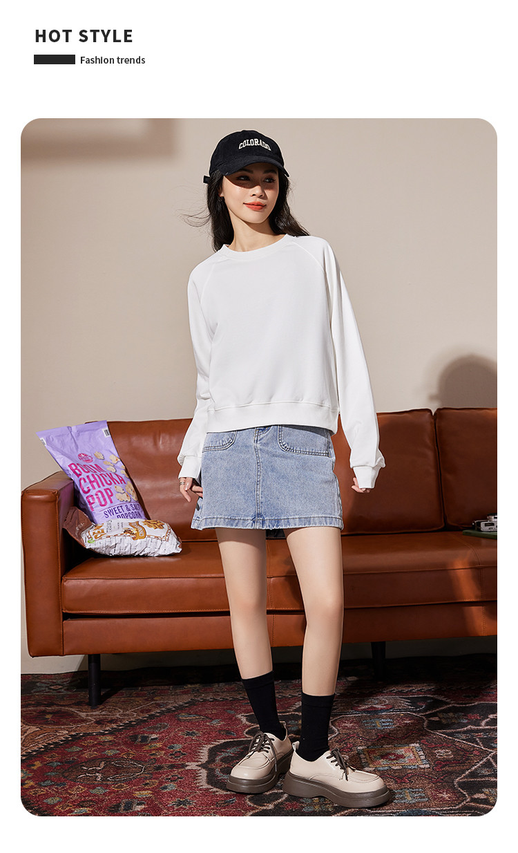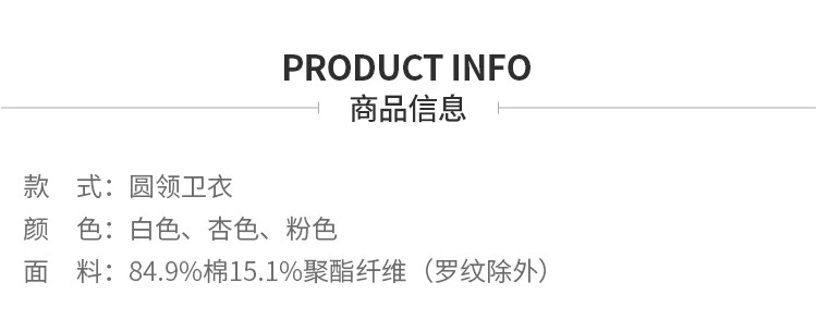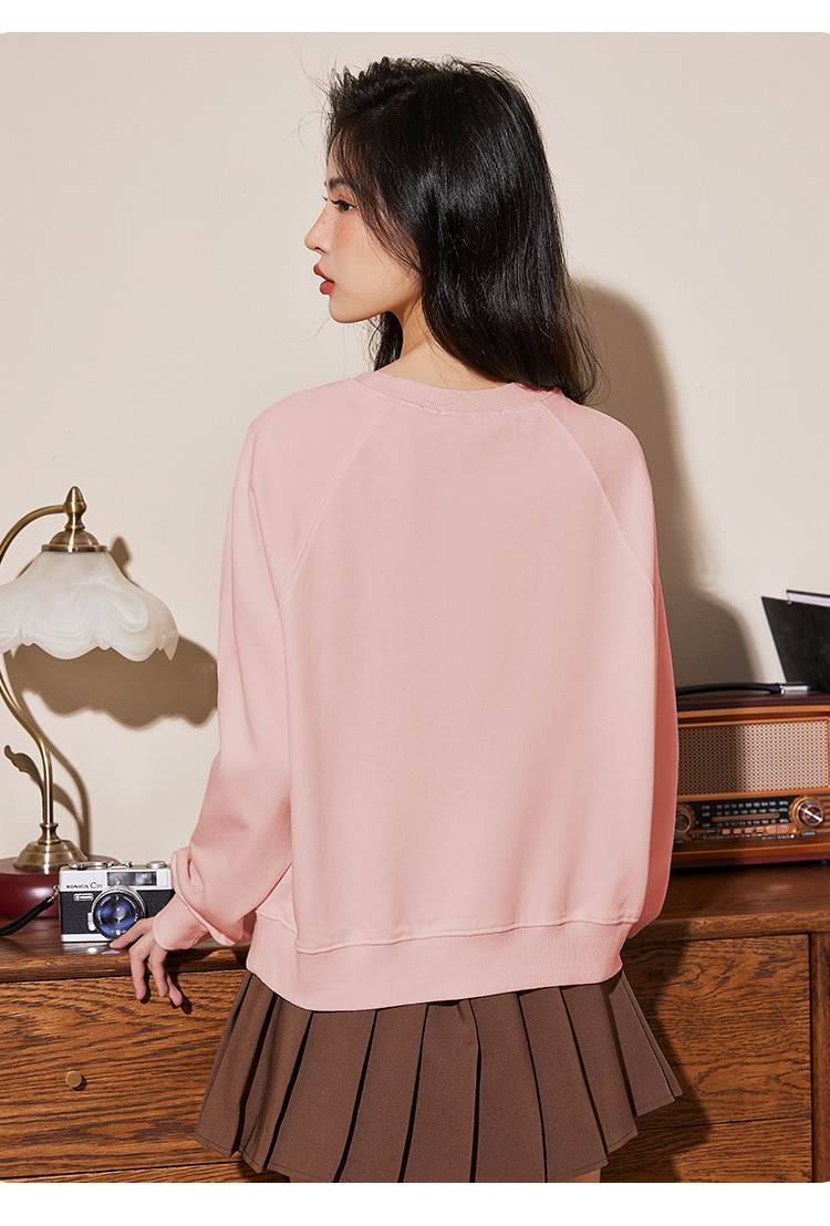 商品名称:米子旗春秋款圆领女士卫衣外套宽松短款慵懒风卫衣女 165850