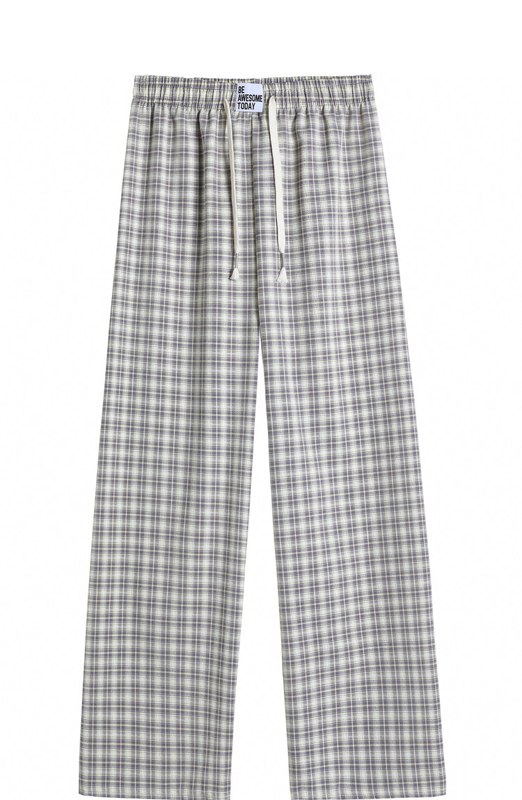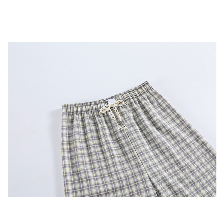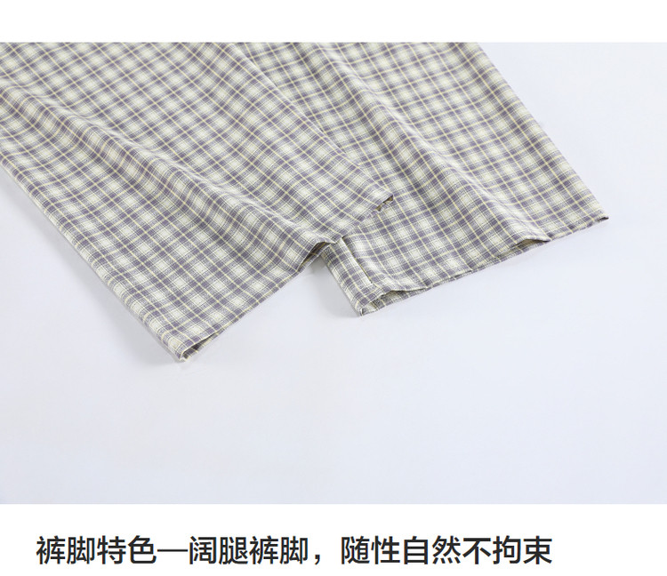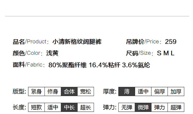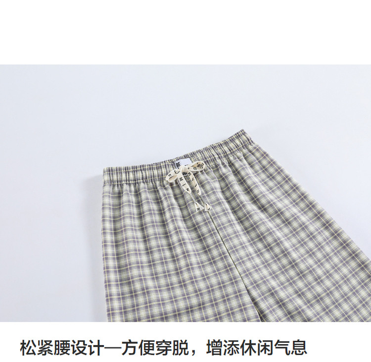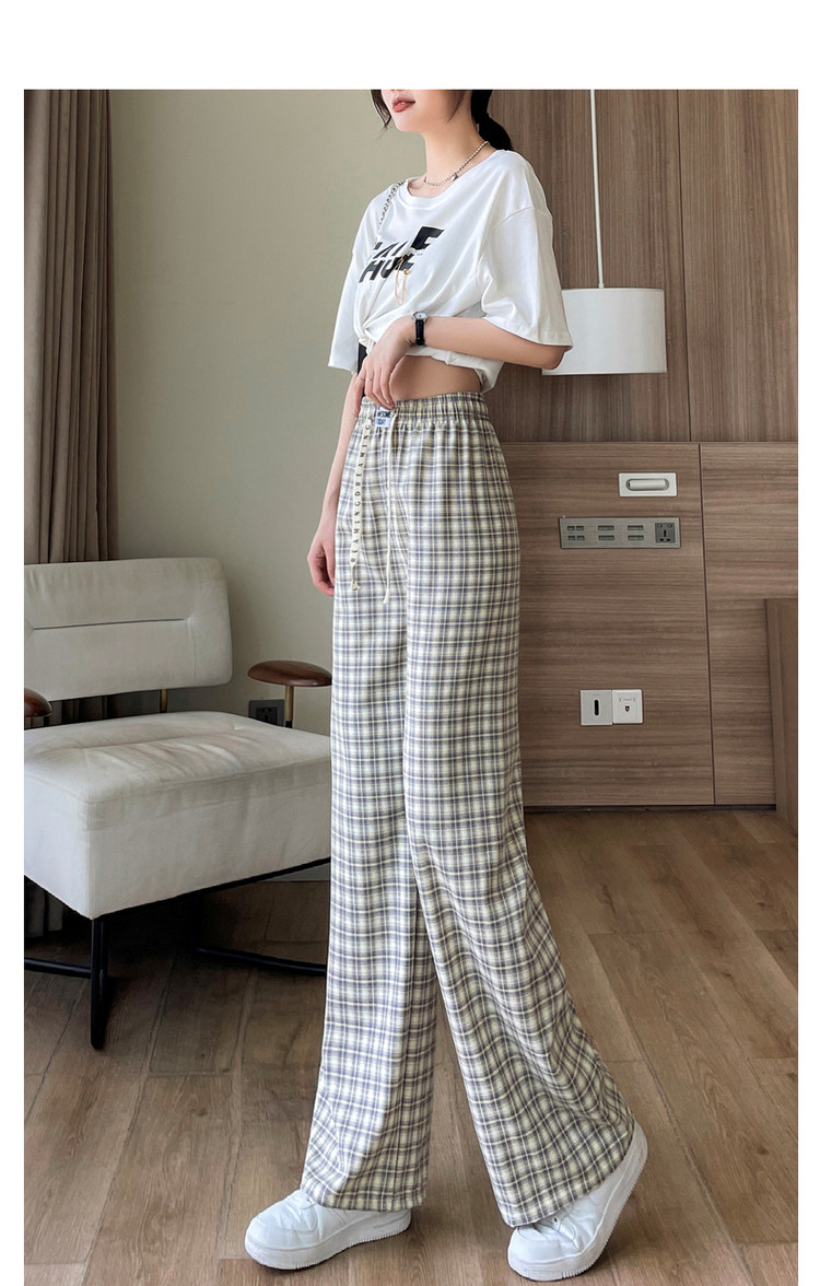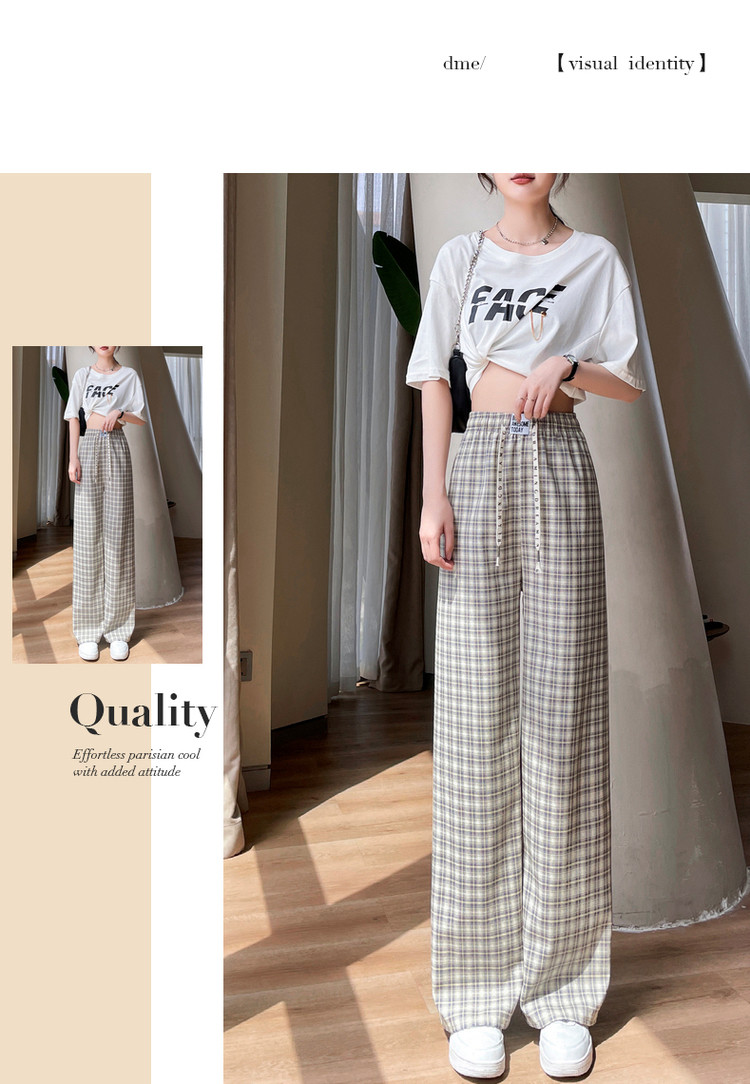 商品名称:【格纹阔腿裤】夏松紧腰系绳女裤微弹薄款直筒裤子女休闲裤 443649