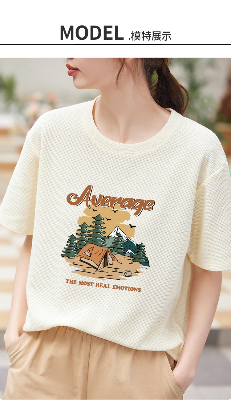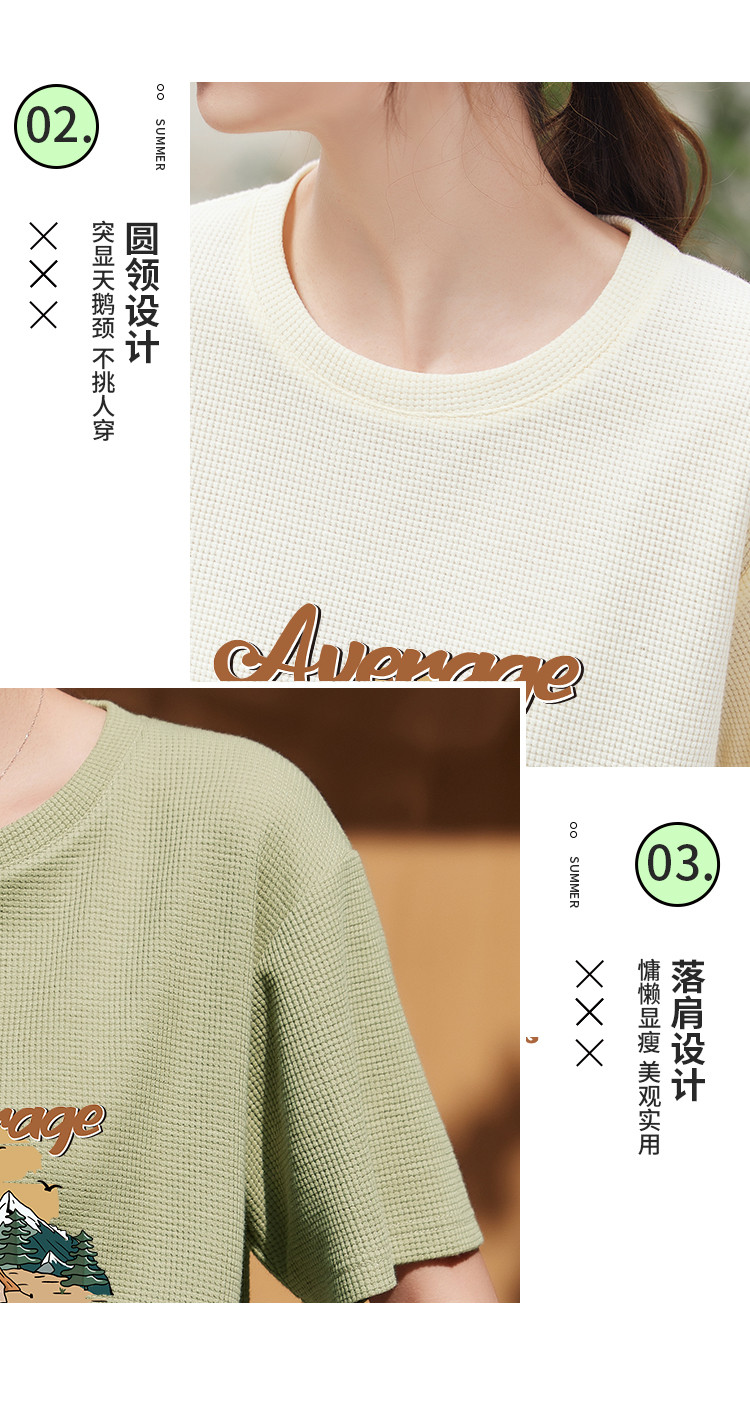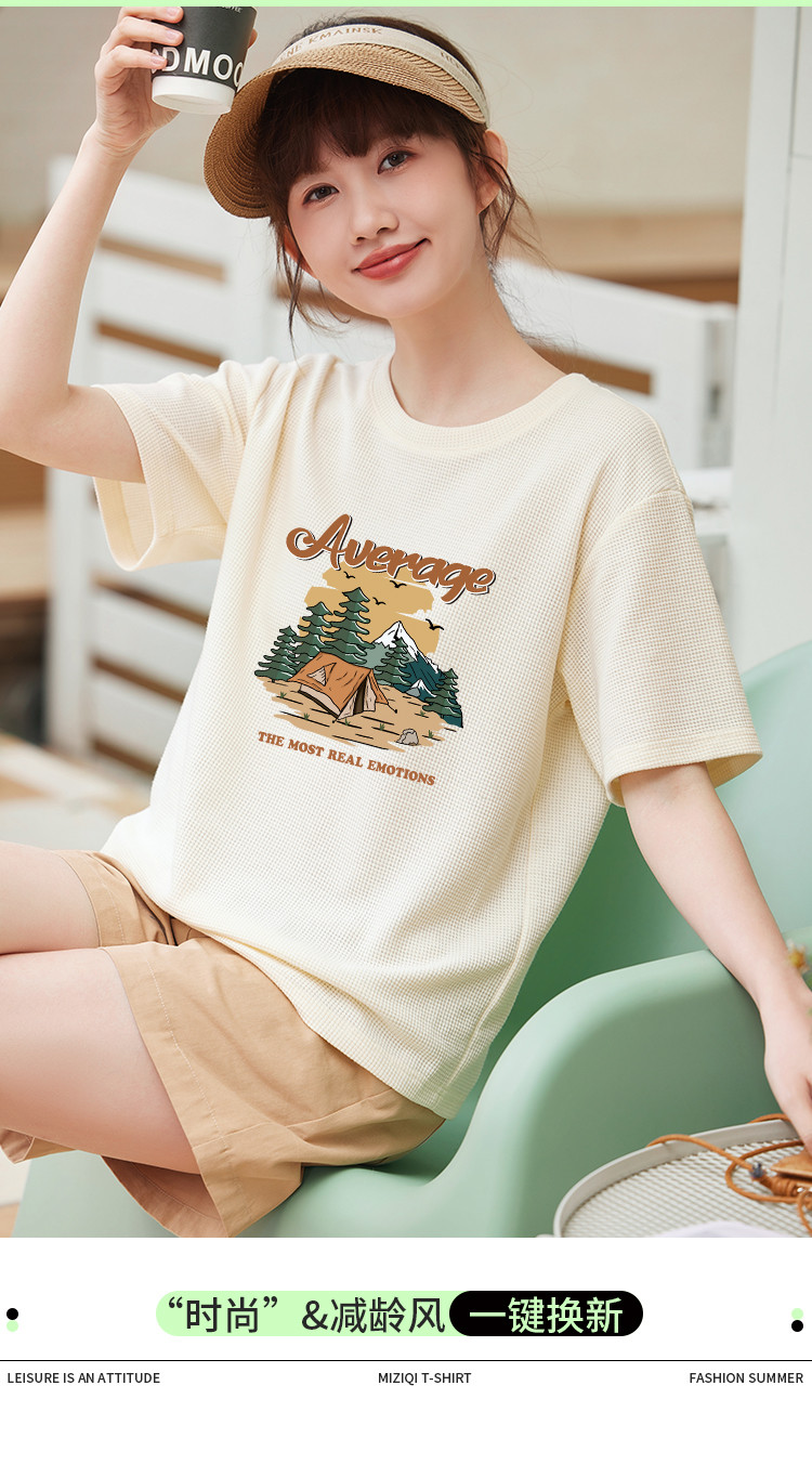 商品名称:米子旗夏装款印花圆领T恤女宽松华夫格短袖上衣 968346