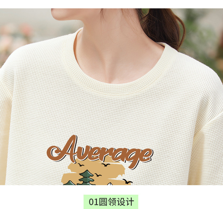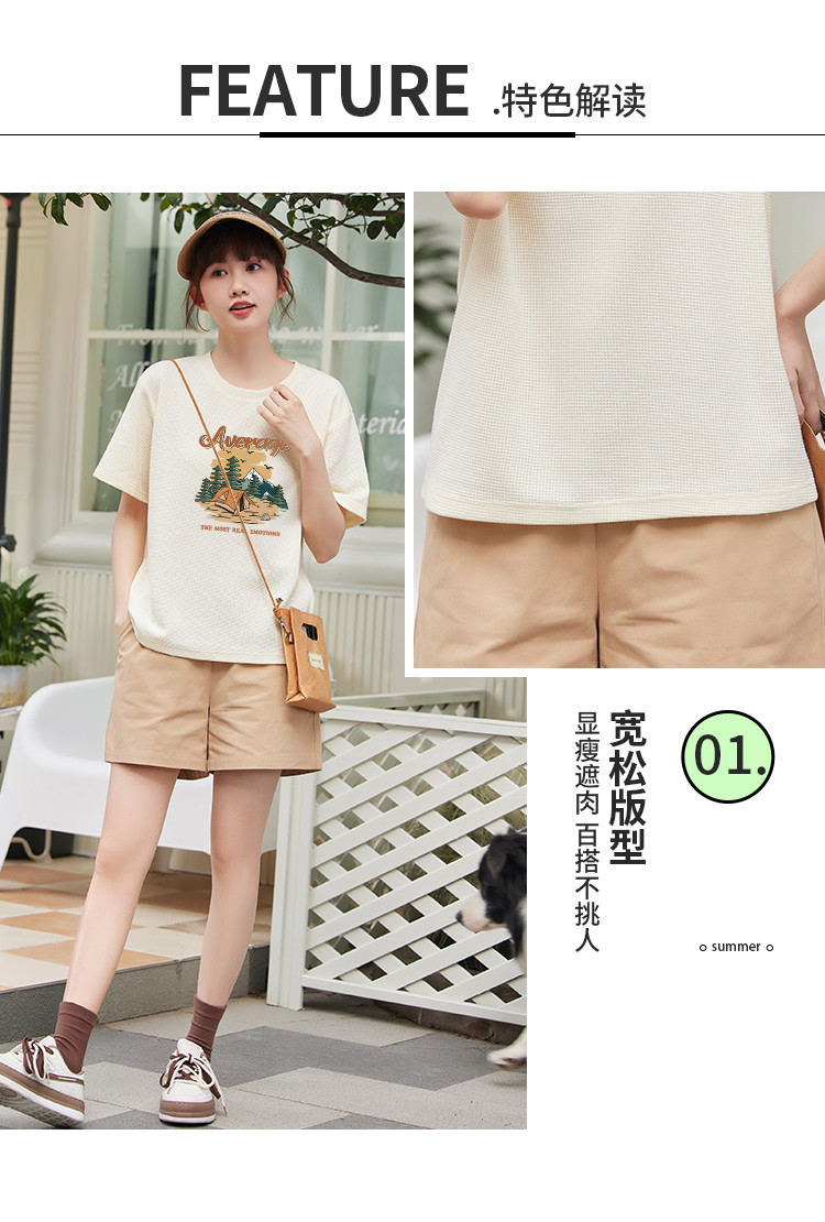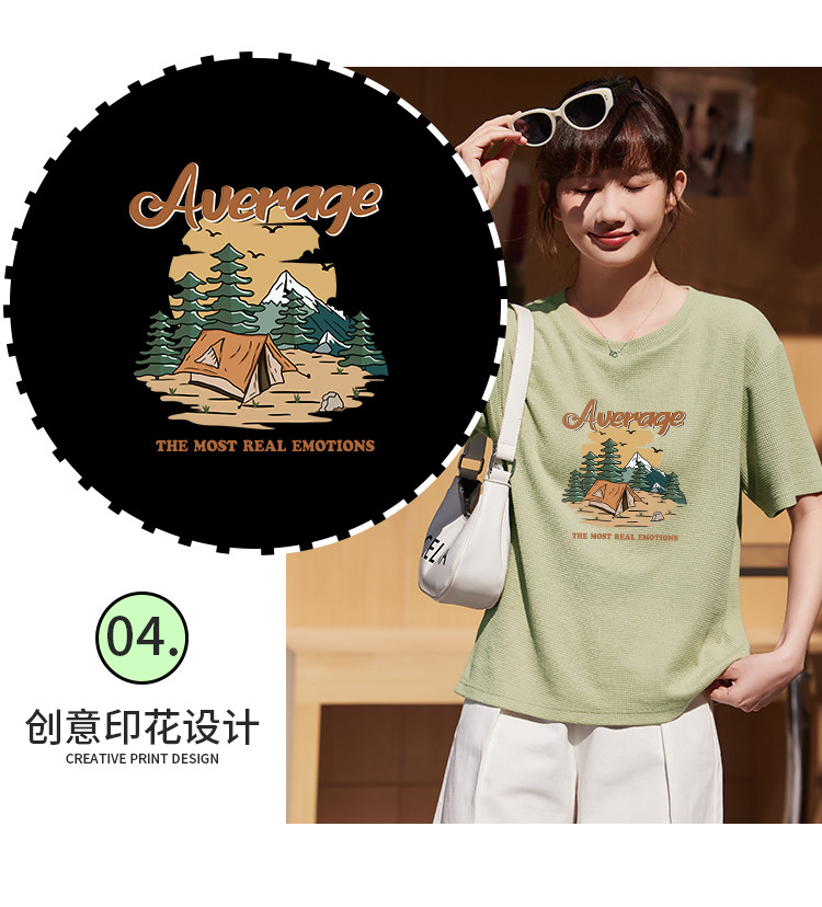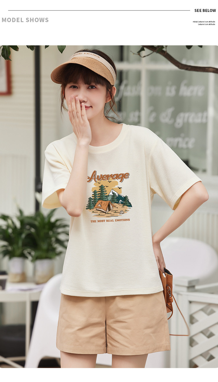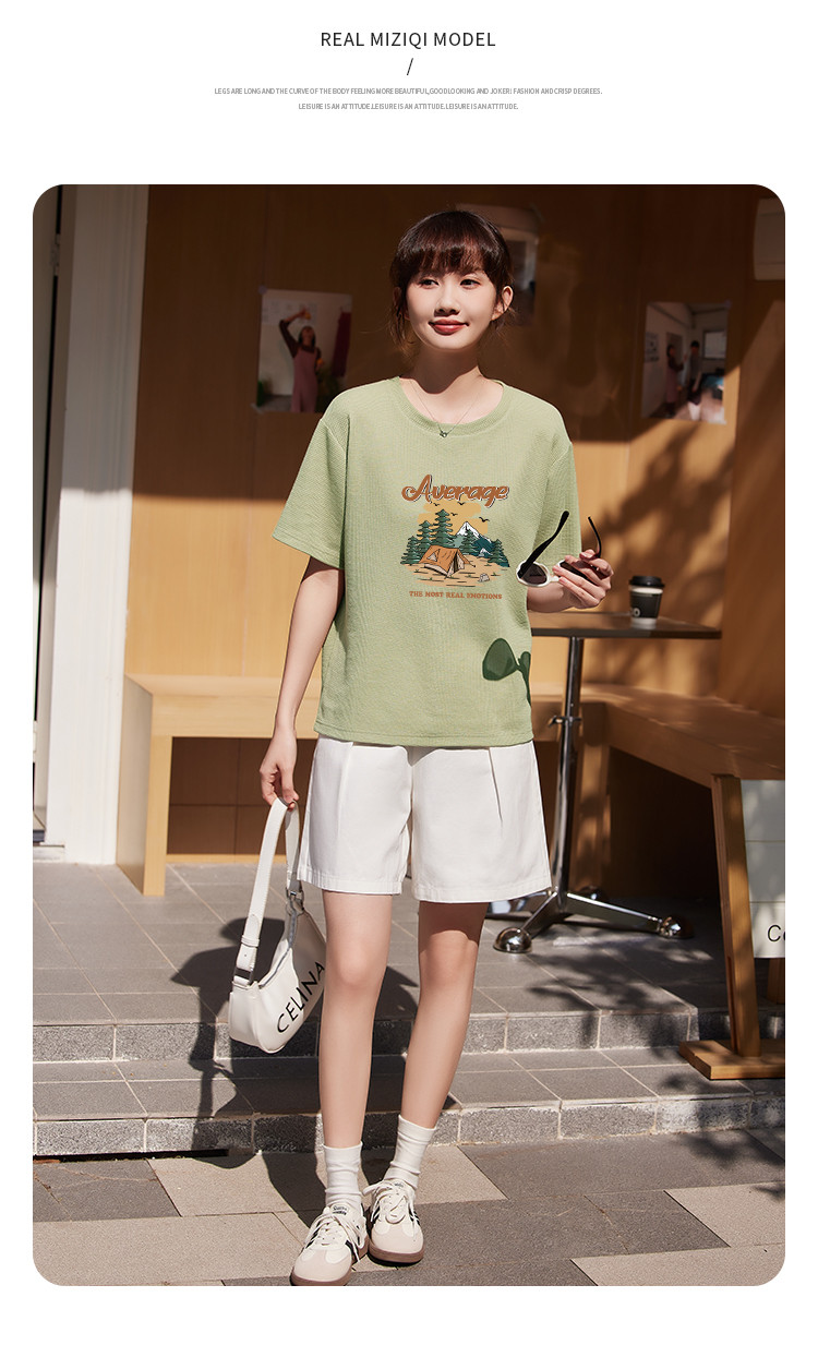 商品名称:米子旗夏装款印花圆领T恤女宽松华夫格短袖上衣 968346