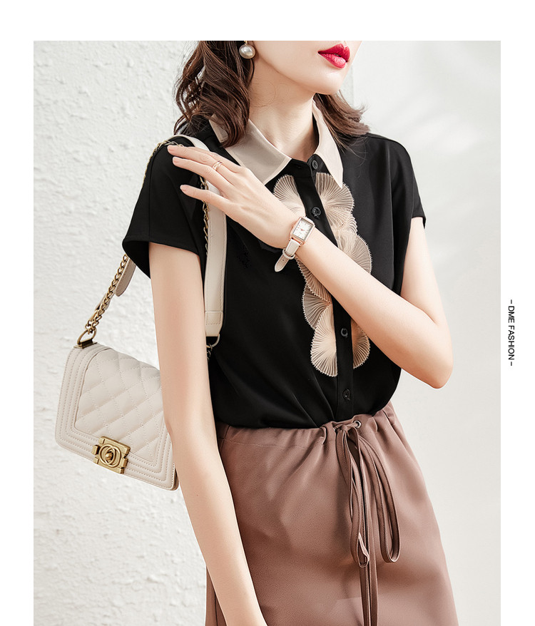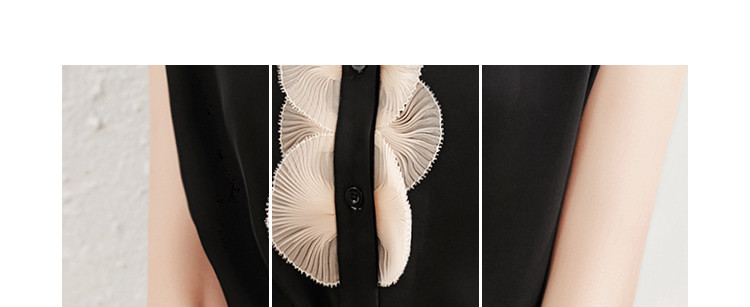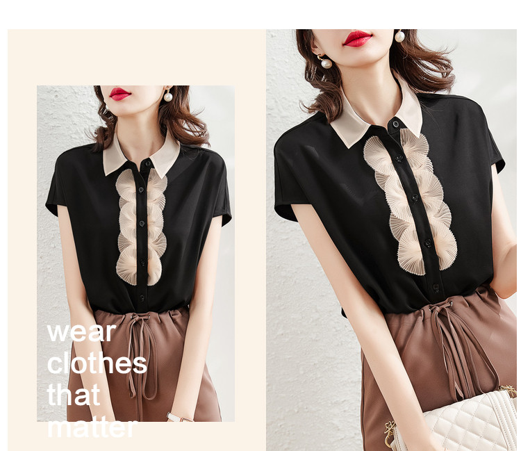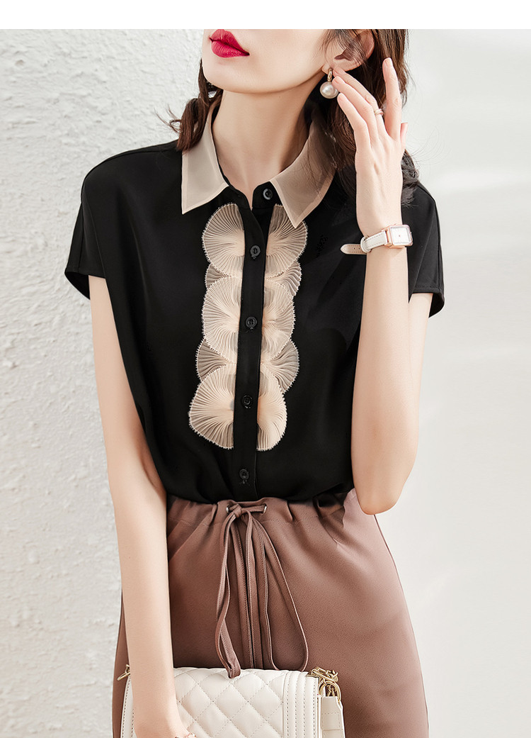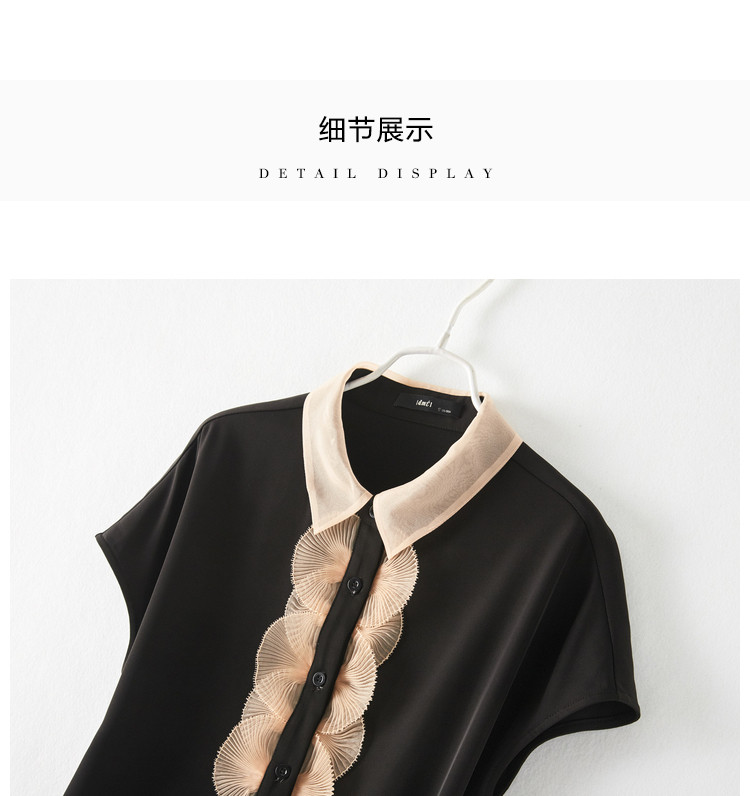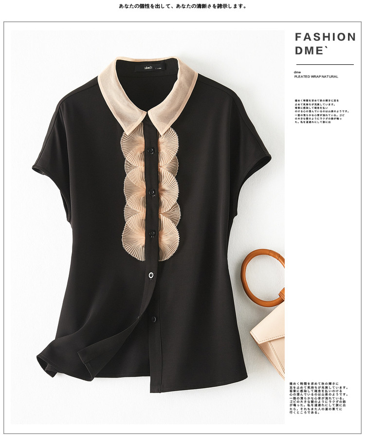 【长丝衬衫】夏宽松欧根纱翻领压褶扇形直筒衬衫女士上衣 060929
