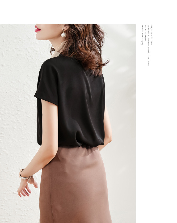 商品名称:【长丝衬衫】夏宽松欧根纱翻领压褶扇形直筒衬衫女士上衣 060929