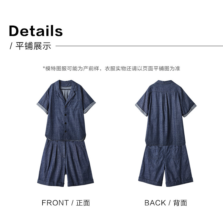 商品名称:【简单百搭西装式牛仔短袖套装】设计时尚感女士两件套 107074