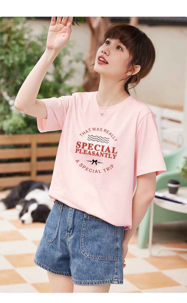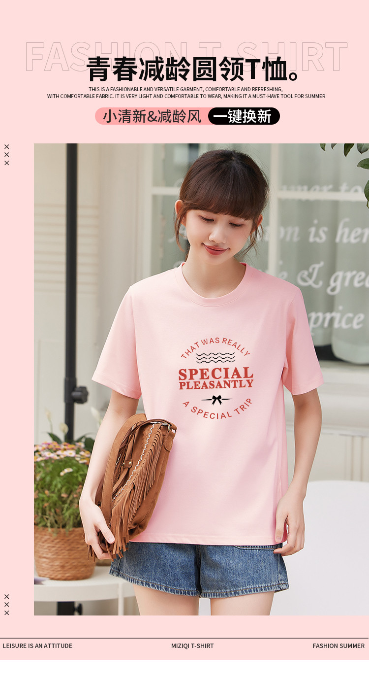 商品名称:米子旗夏装款创意印花圆领T恤女宽松短袖上衣 463706