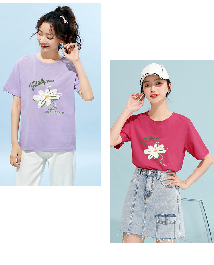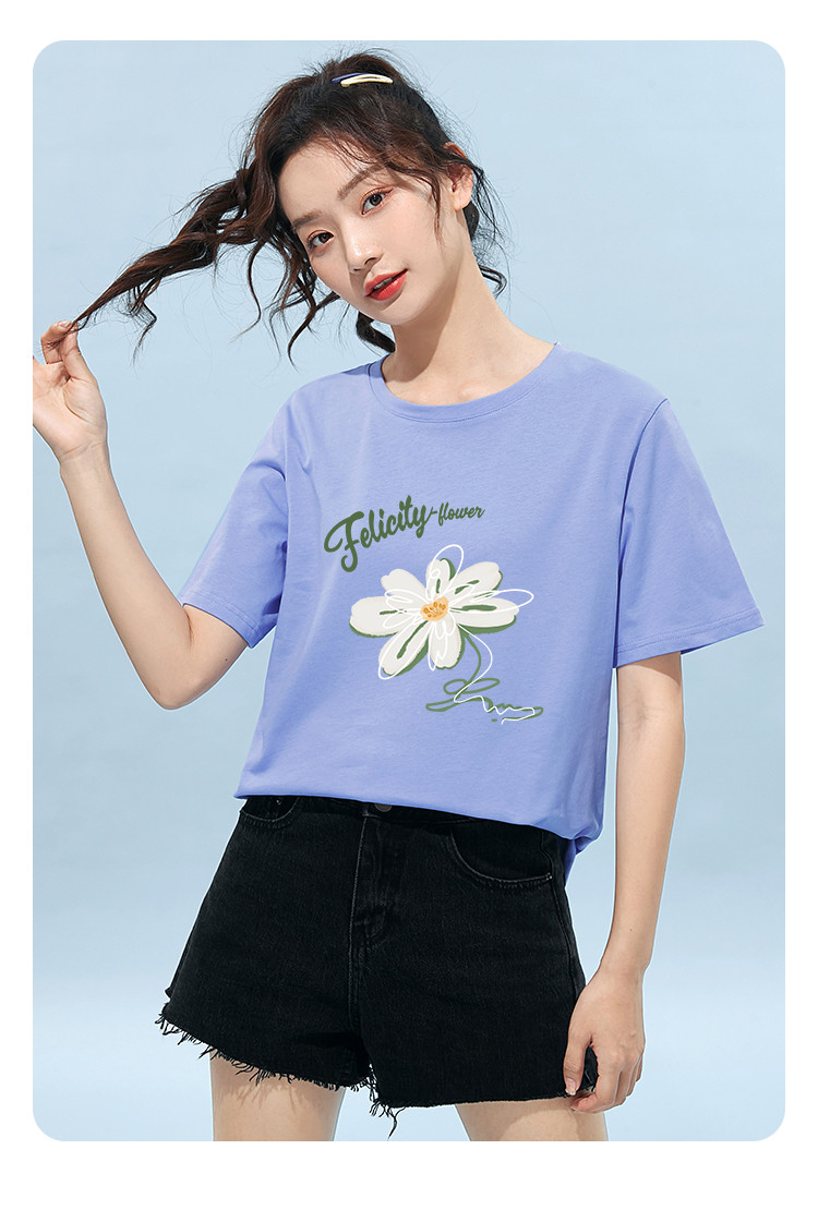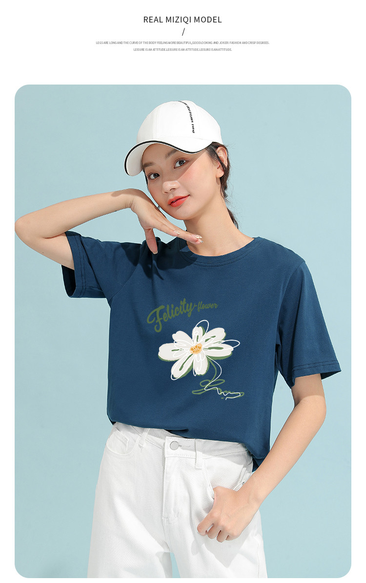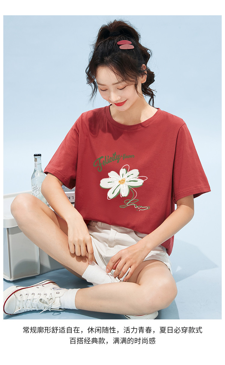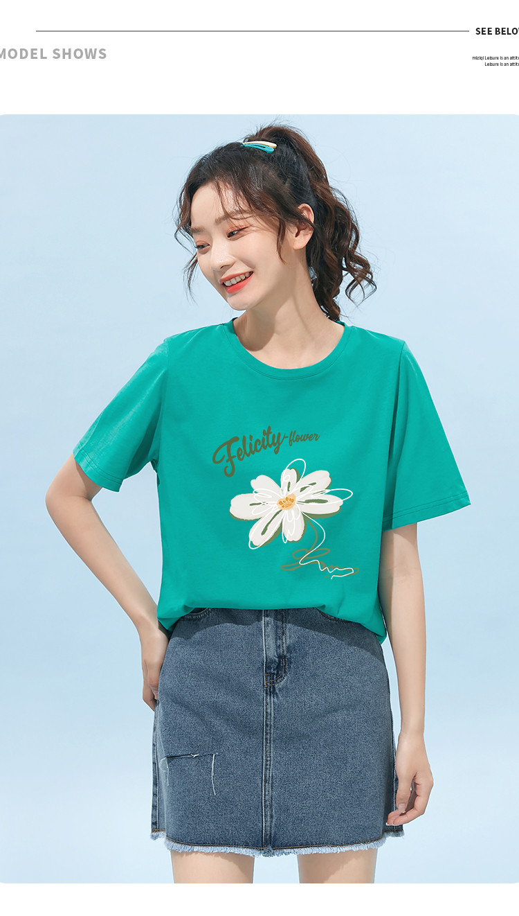 商品名称:米子旗夏季款圆领宽松T恤字母印花短袖T恤遮肉显瘦上衣女 649050