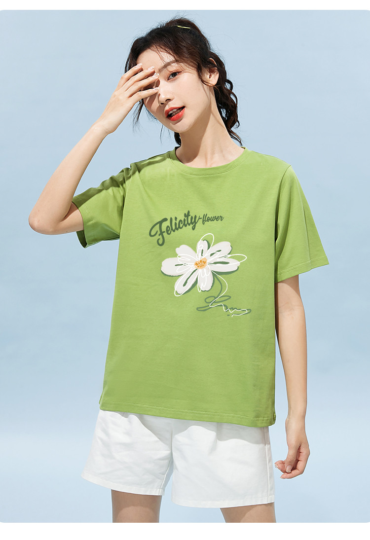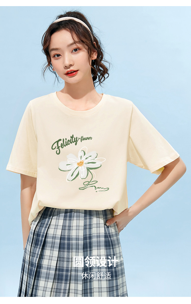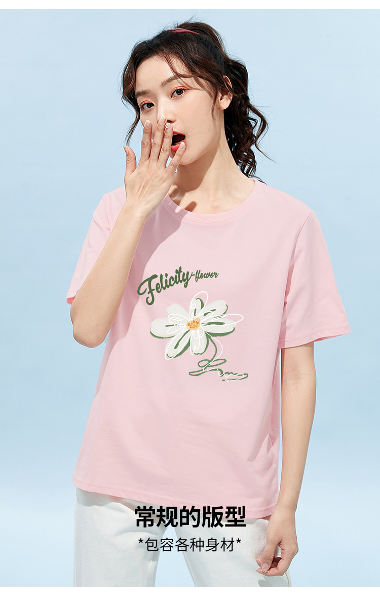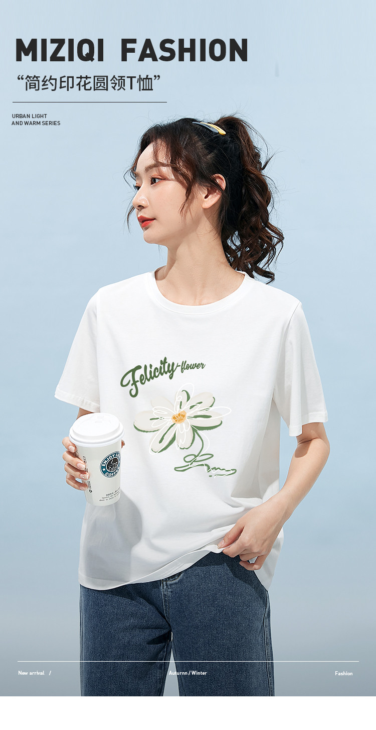米子旗夏季款圆领宽松T恤字母印花短袖T恤遮肉显瘦上衣女 649050