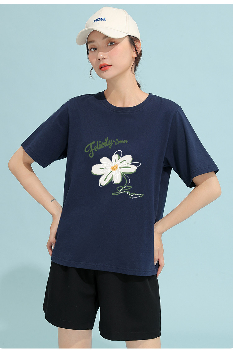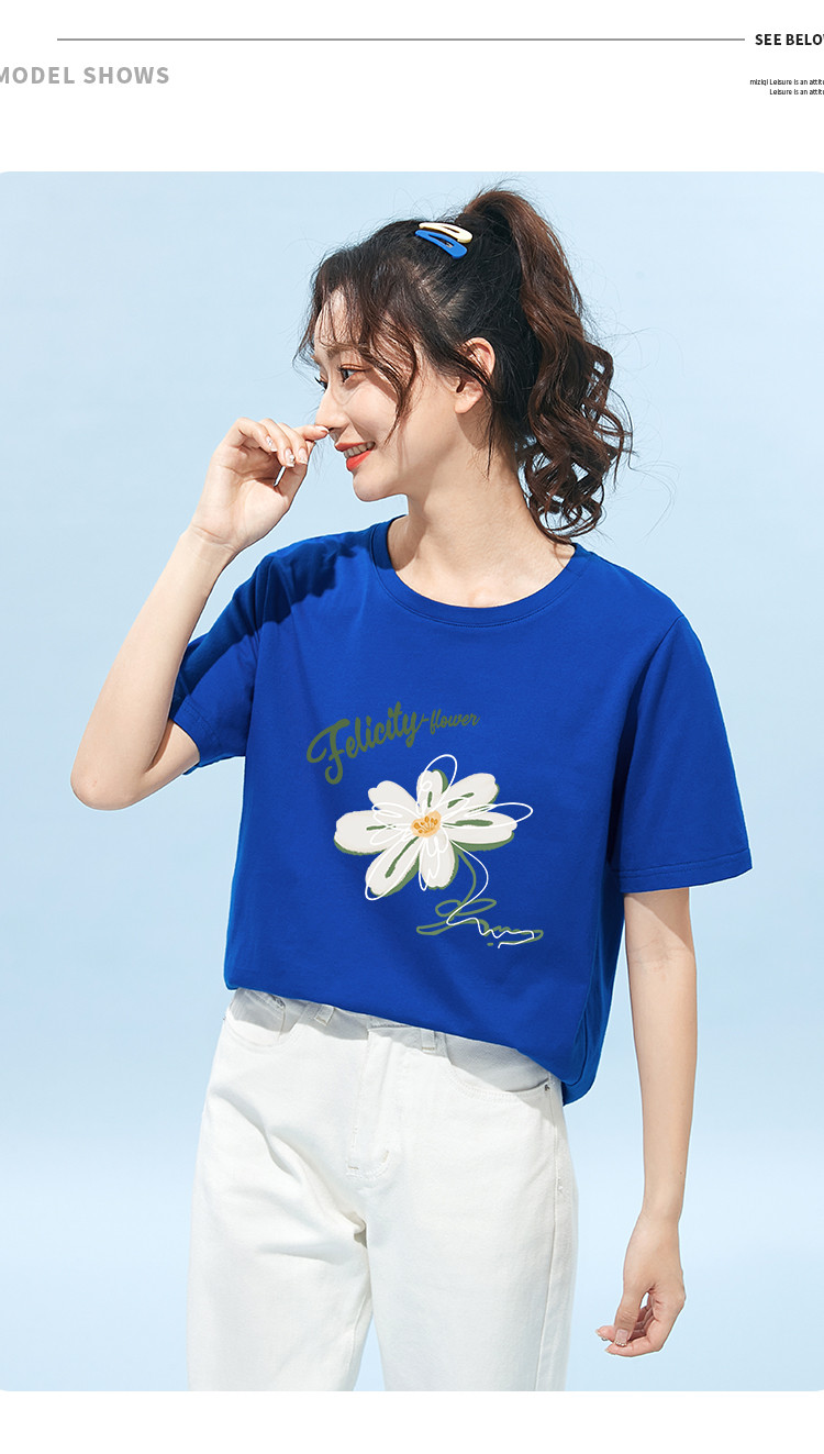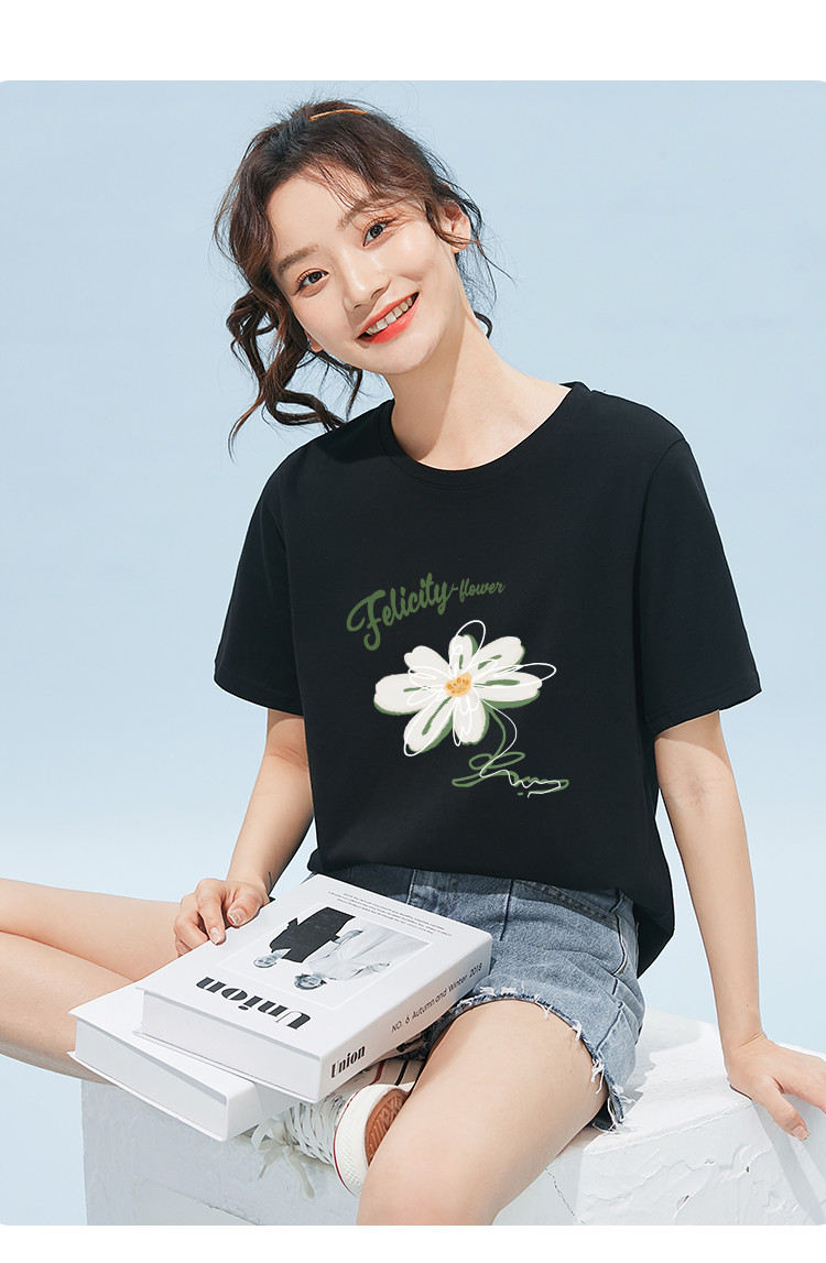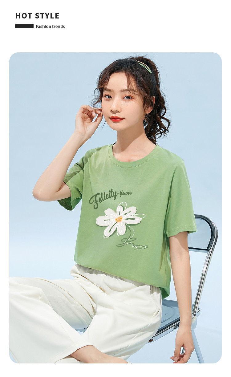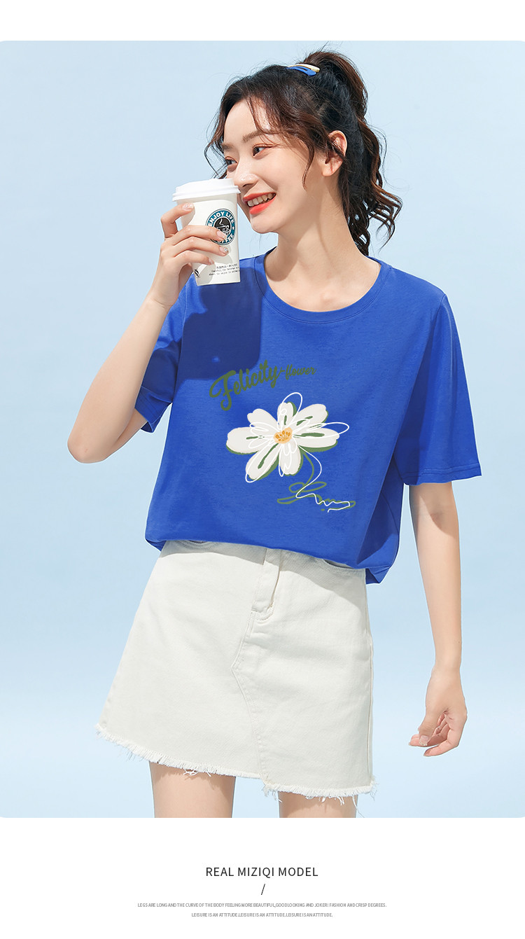 米子旗夏季款圆领宽松T恤字母印花短袖T恤遮肉显瘦上衣女 649050