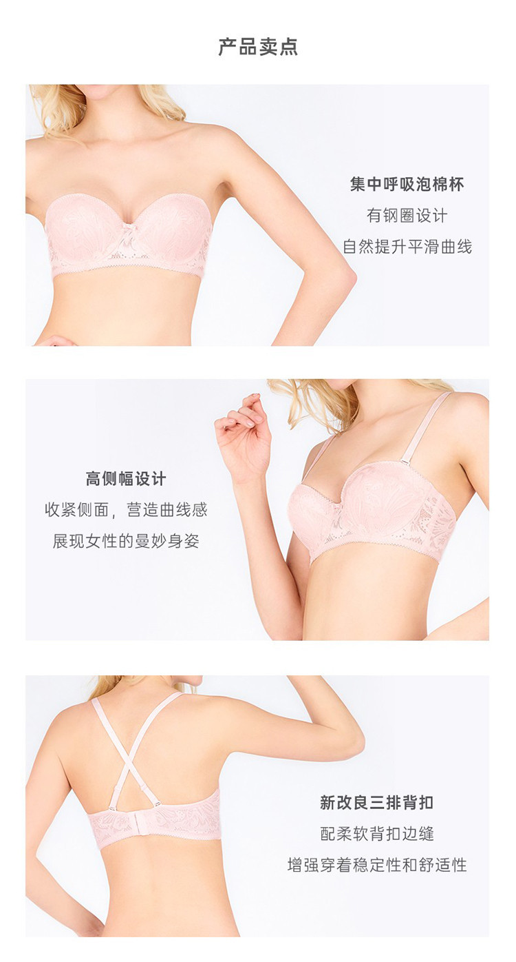商品名称:【集中聚拢】黛安芬可拆卸肩带抹胸两穿聚拢文胸16-8544 915144