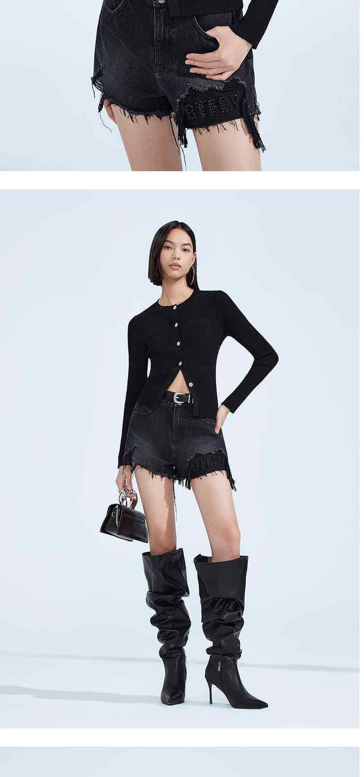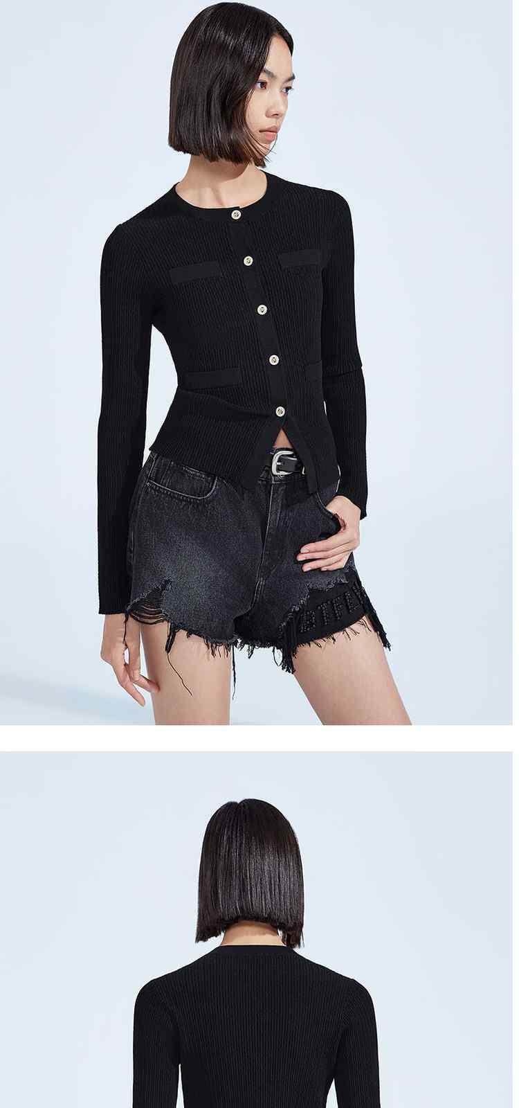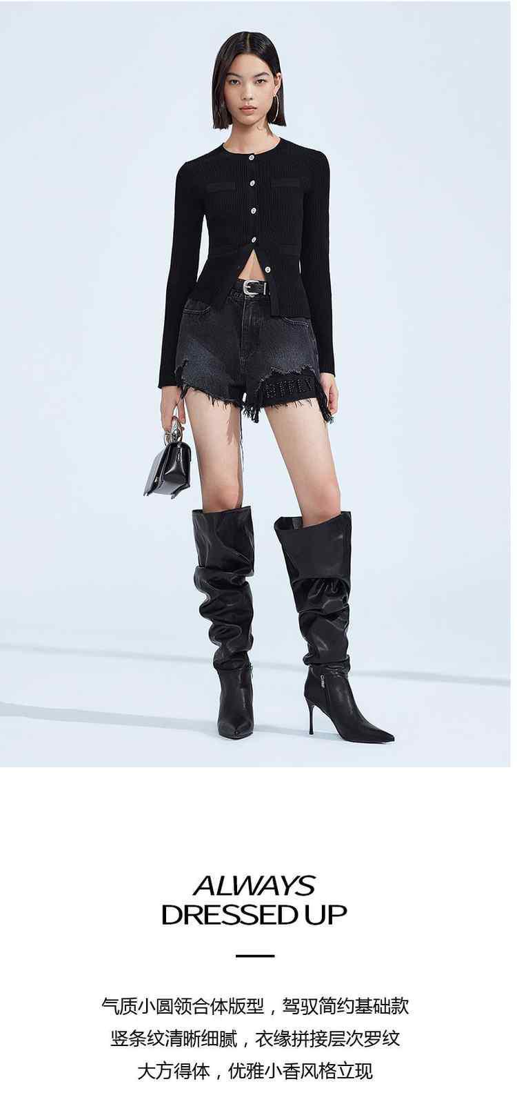 商品名称:春装 雕花扣织带气质小香风开衫针织外套女 297999
