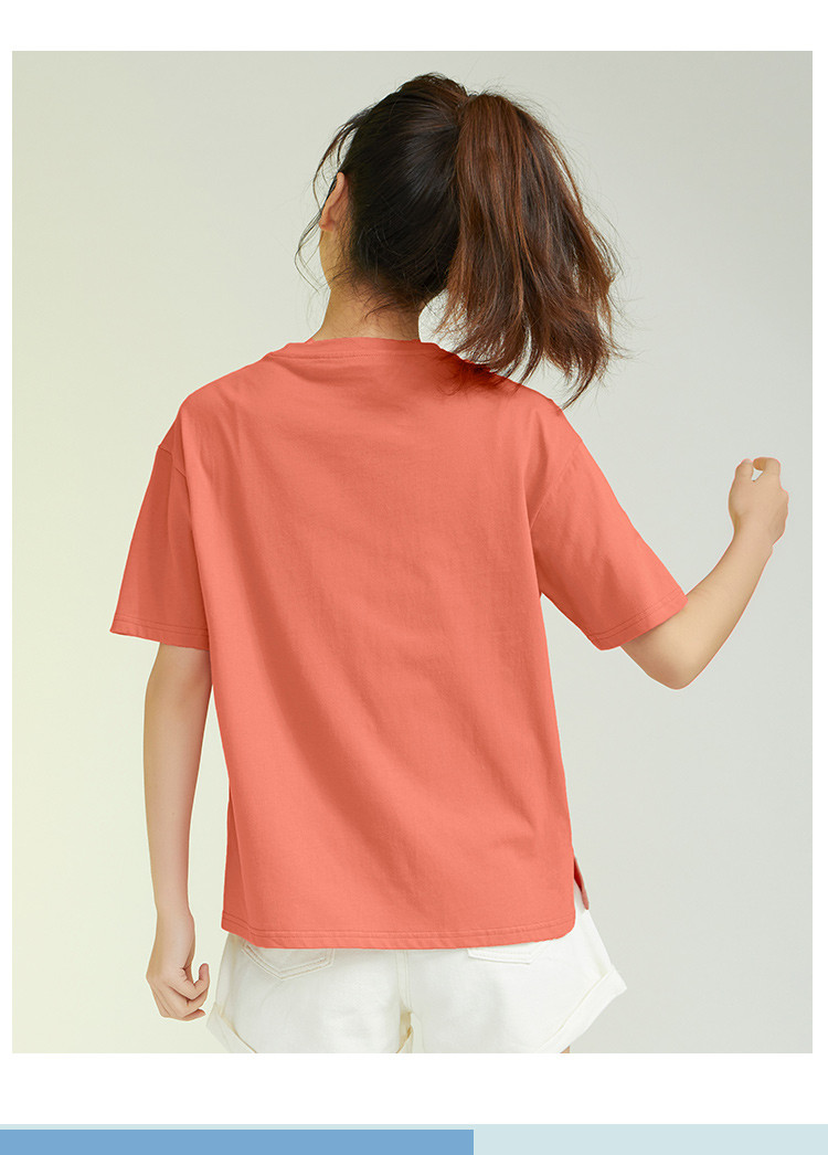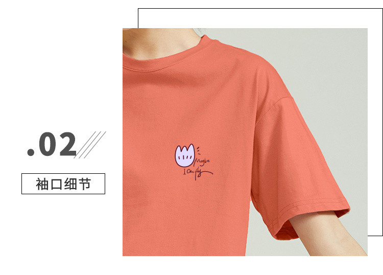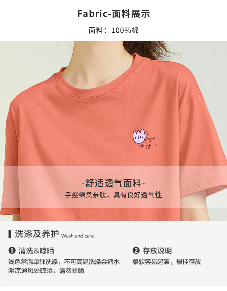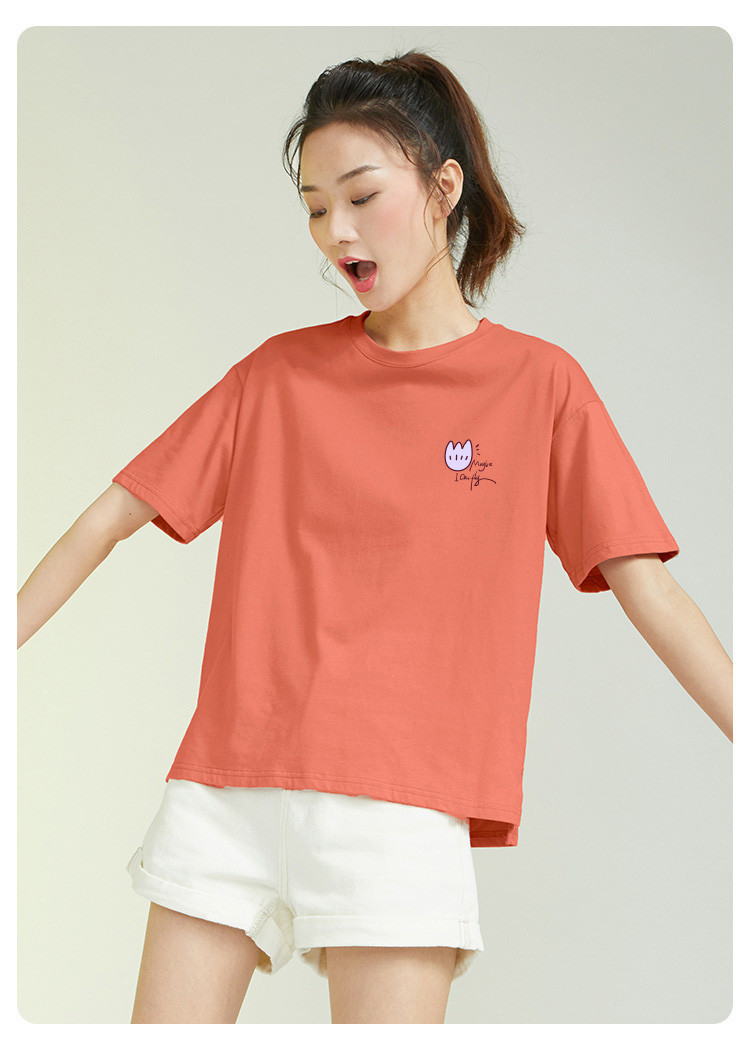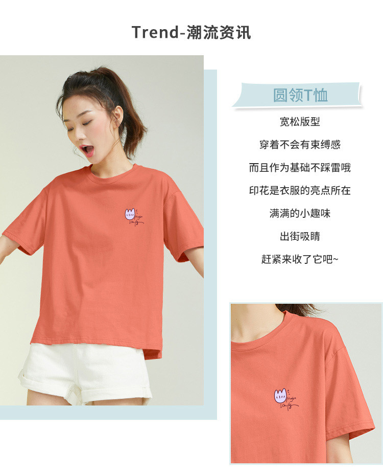 商品名称:米子旗夏季时尚潮流简约印花上衣侧边开叉宽松短袖大码T恤女 288730