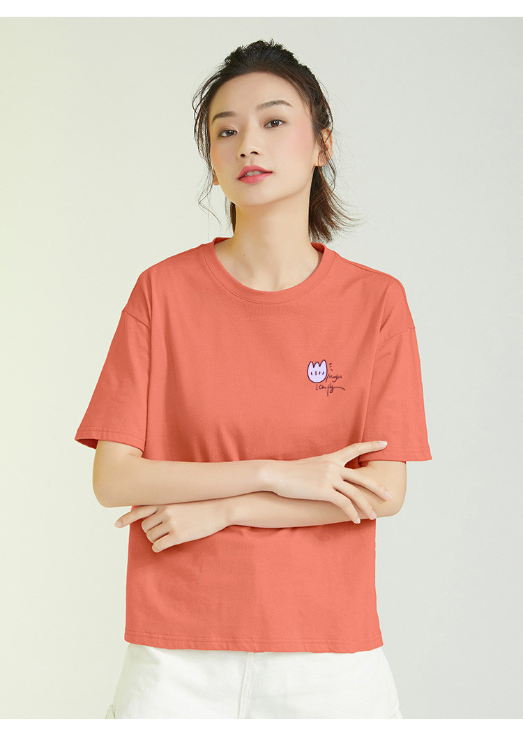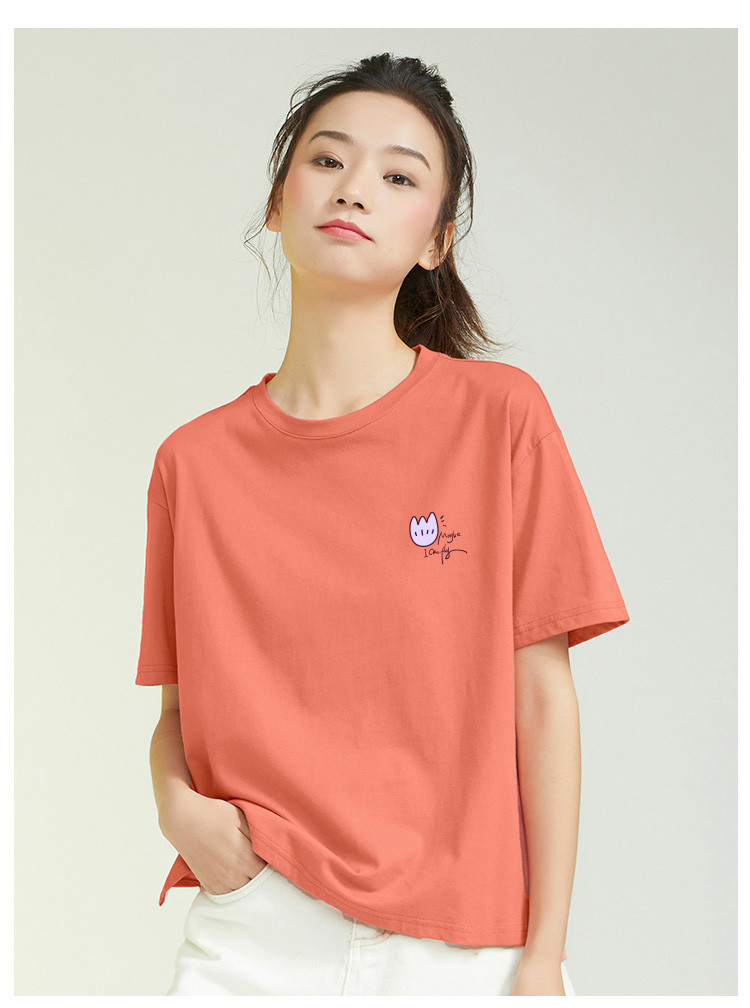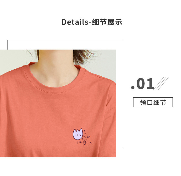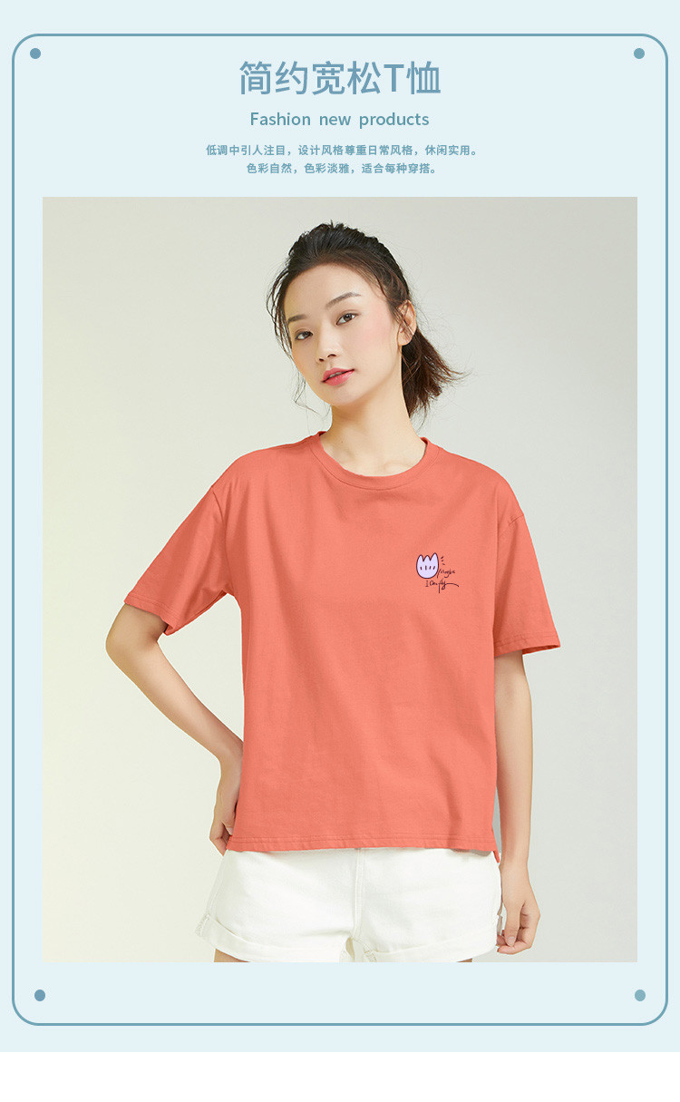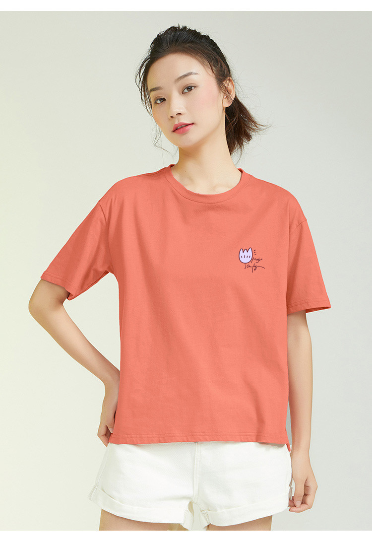 商品名称:米子旗夏季时尚潮流简约印花上衣侧边开叉宽松短袖大码T恤女 288730