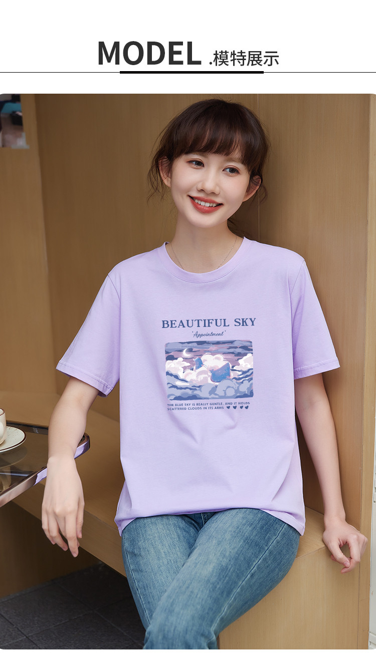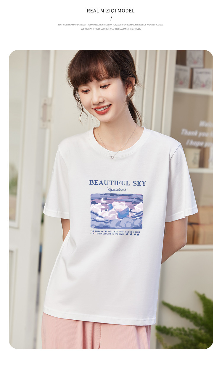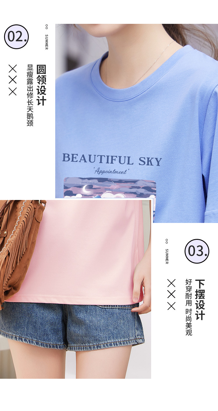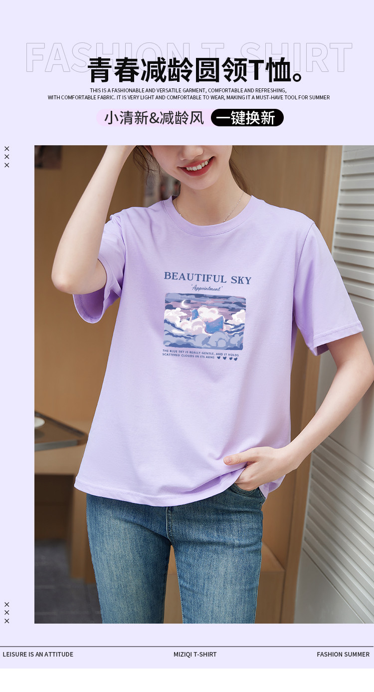 商品名称:米子旗夏季款圆领印花T恤女宽松短袖上衣 377946