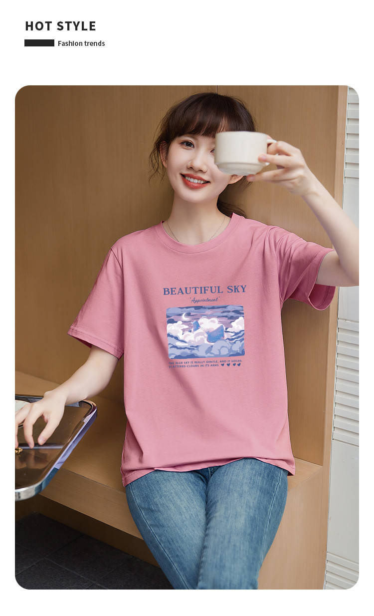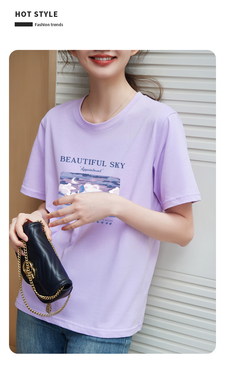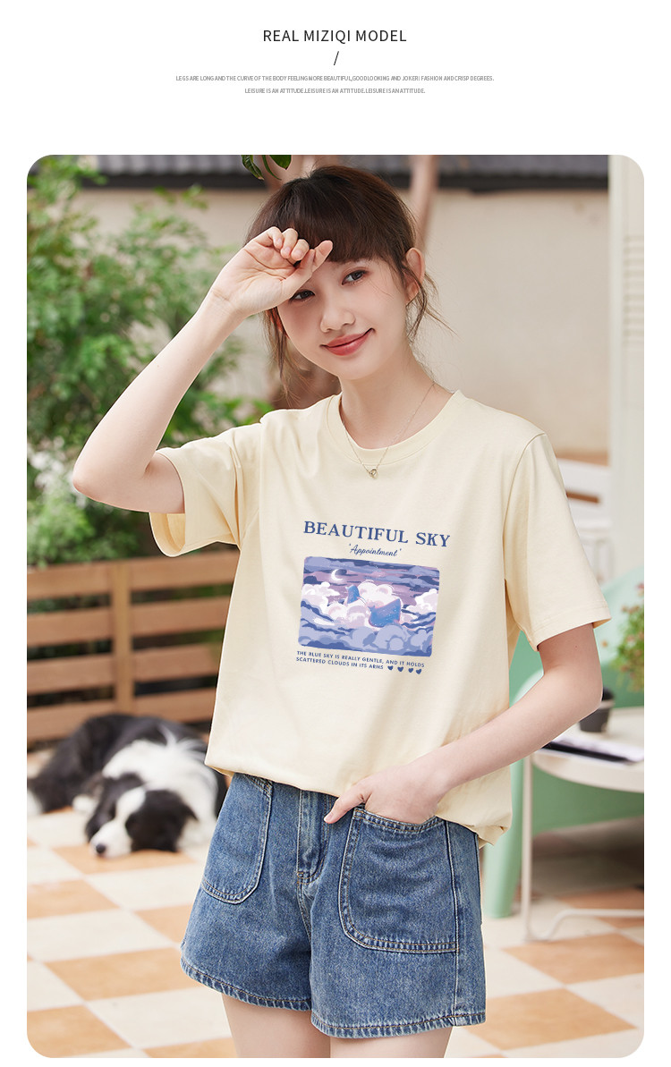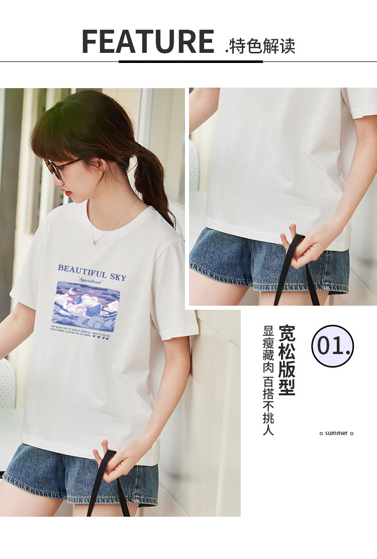 商品名称:米子旗夏季款圆领印花T恤女宽松短袖上衣 377946