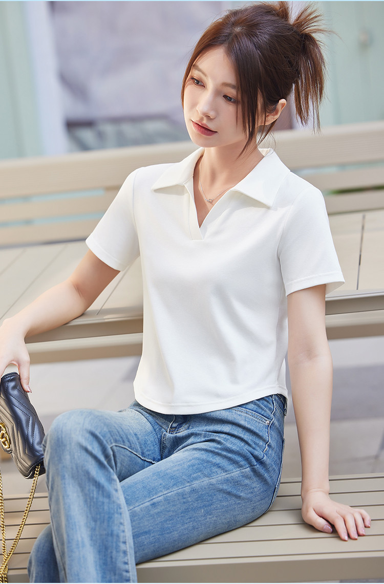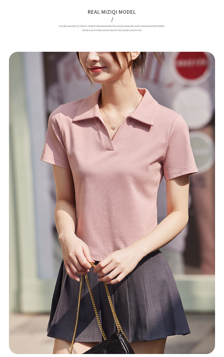 商品名称:米子旗夏季款polo领纯色T恤女短款修身短袖上衣 754778