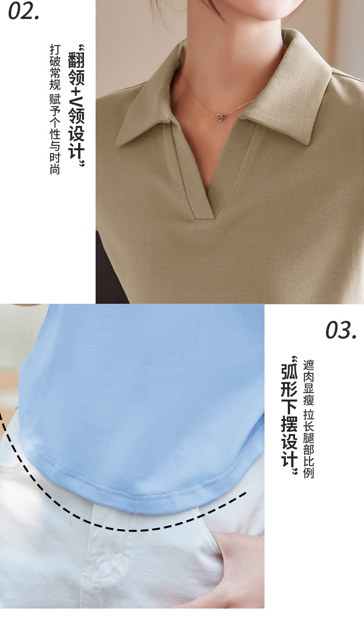 米子旗夏季款polo领纯色T恤女短款修身短袖上衣 754778