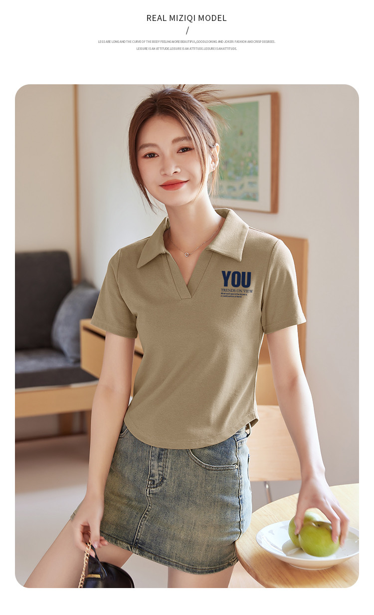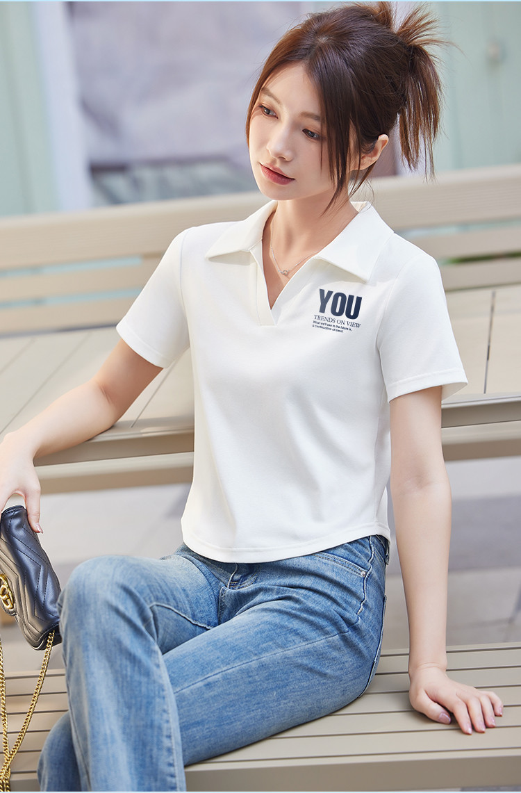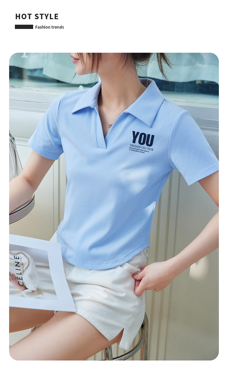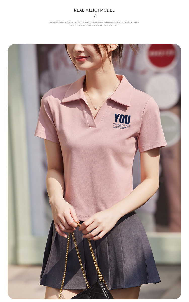 商品名称:米子旗夏季款polo领印花T恤女短款修身短袖上衣 681050