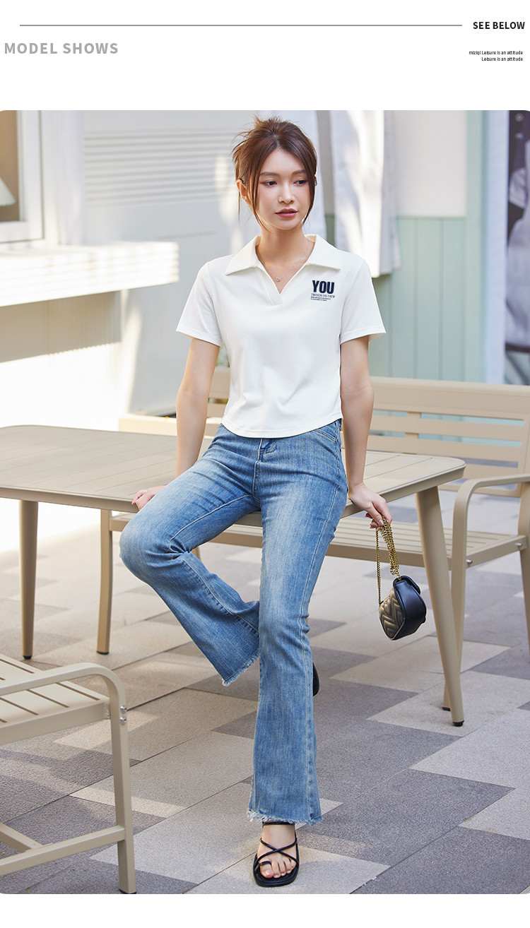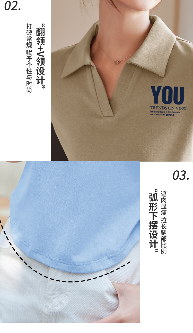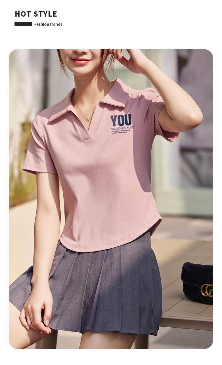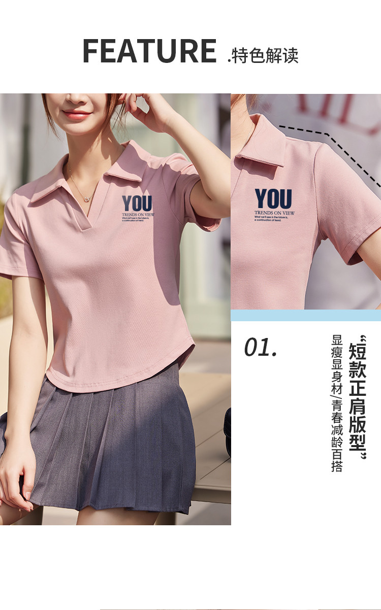 商品名称:米子旗夏季款polo领印花T恤女短款修身短袖上衣 681050