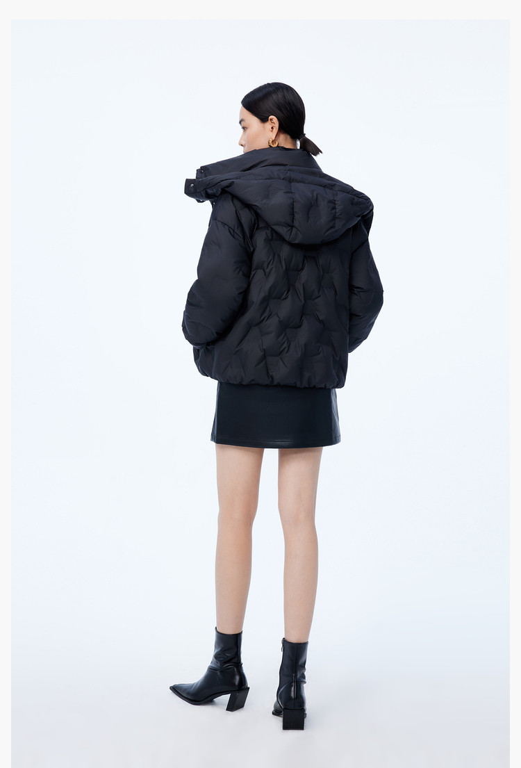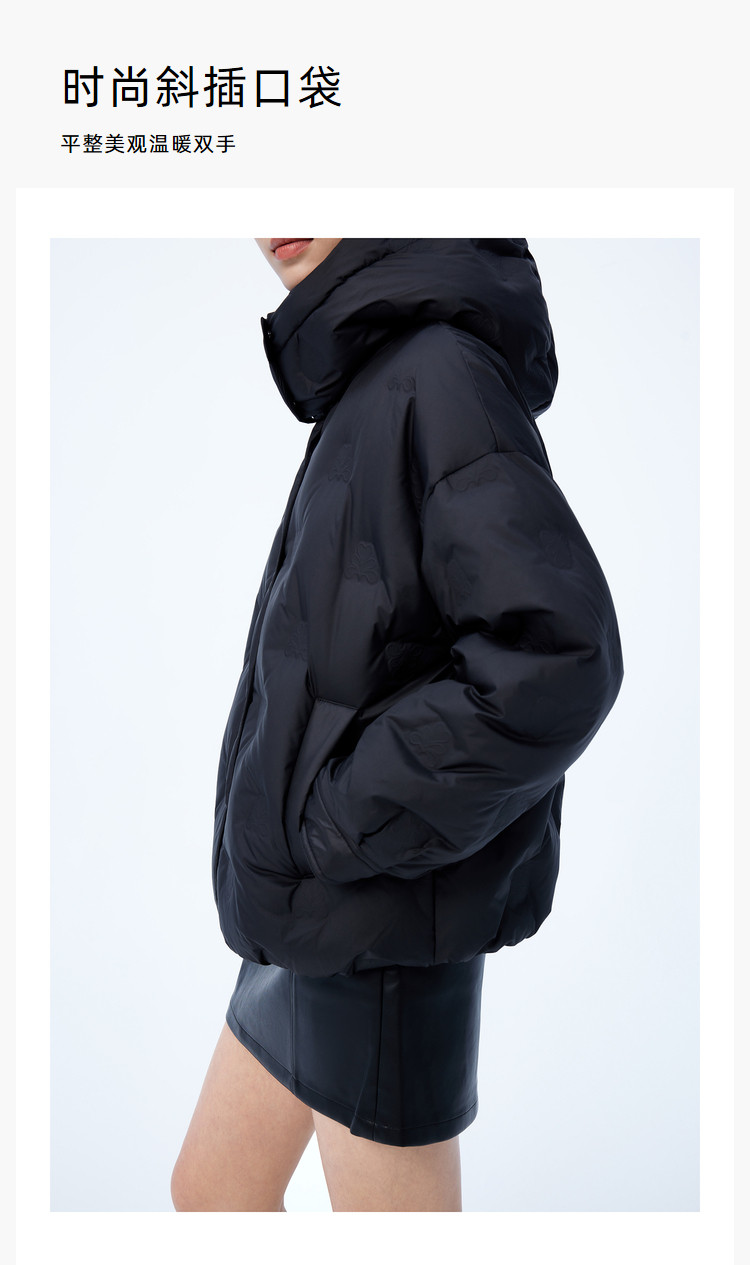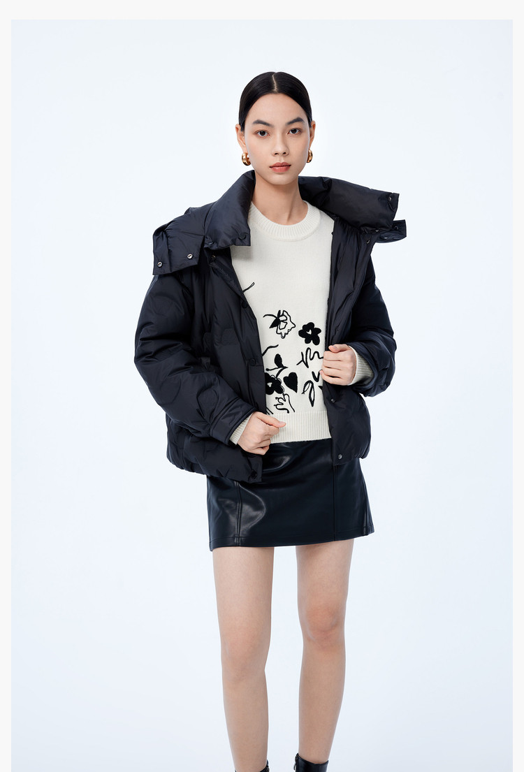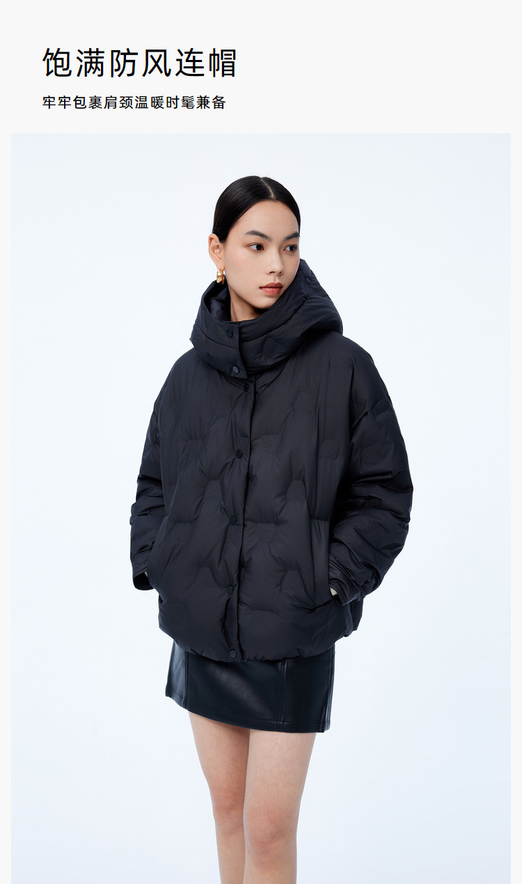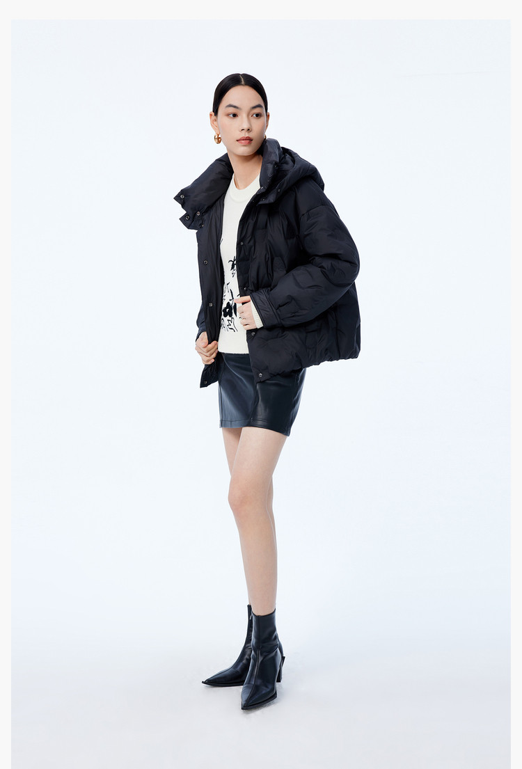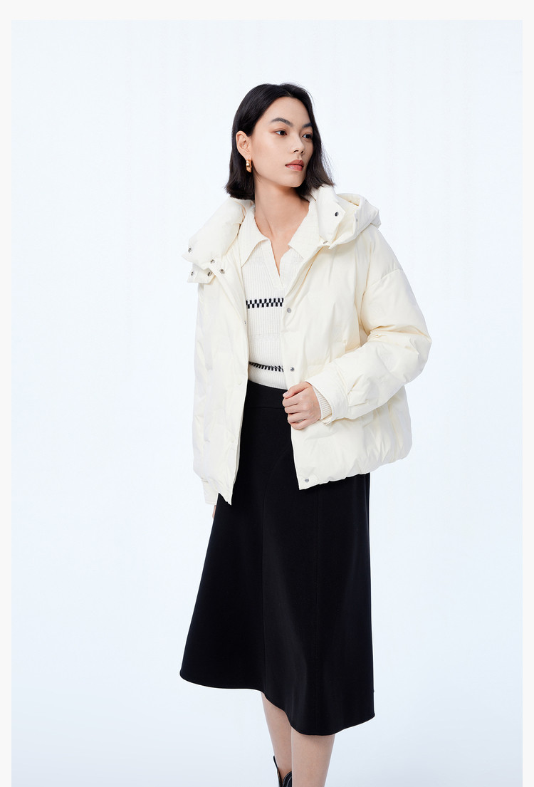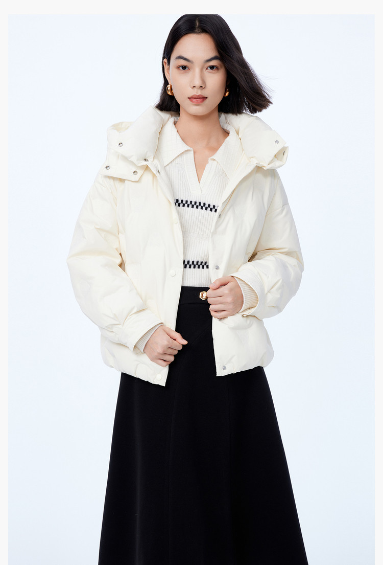 商品名称:冬季羽绒服外套女时尚休闲气质通勤款保暖连帽小个子短款羽绒服 748635