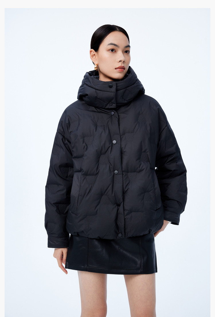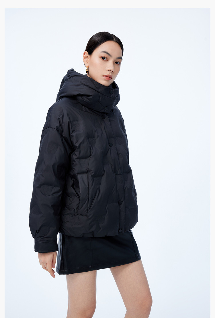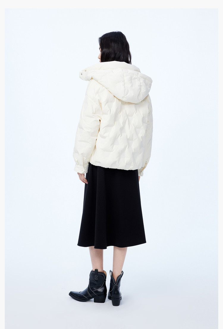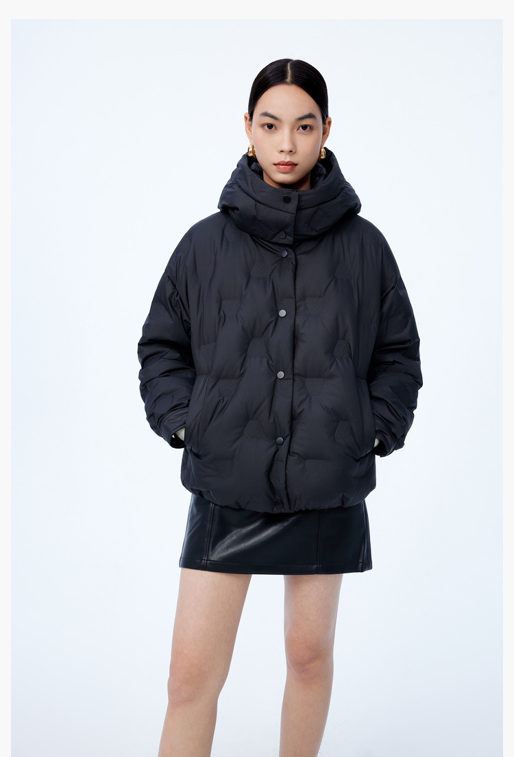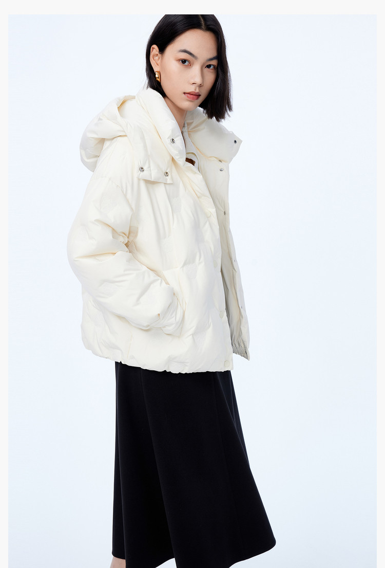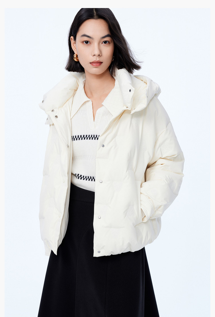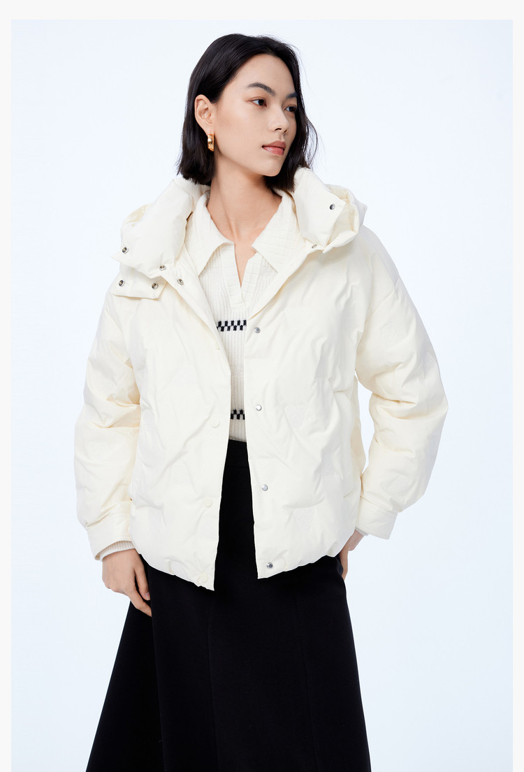 商品名称:冬季羽绒服外套女时尚休闲气质通勤款保暖连帽小个子短款羽绒服 748635