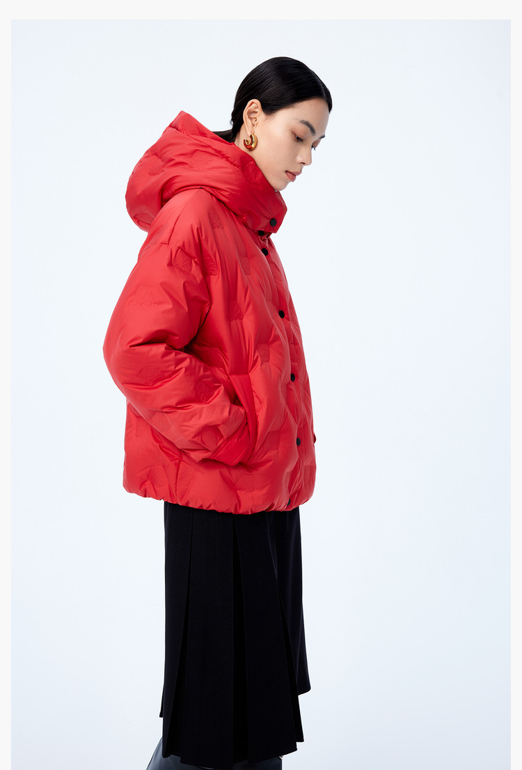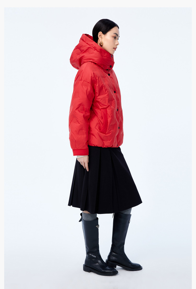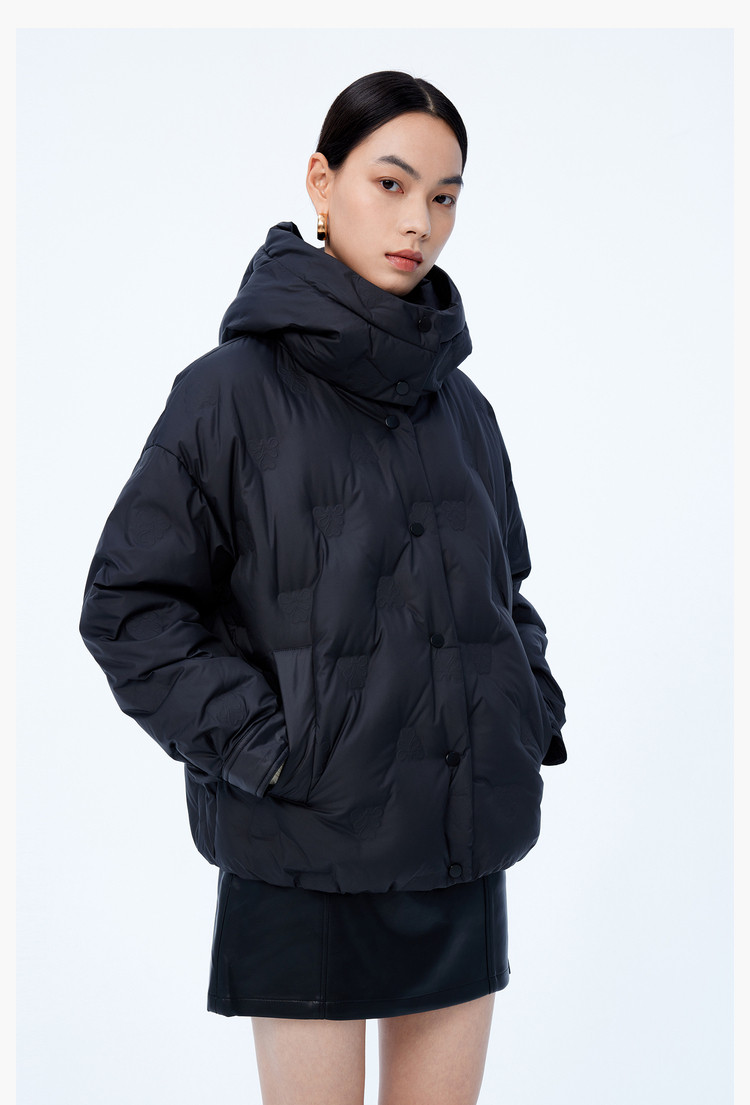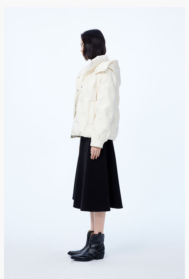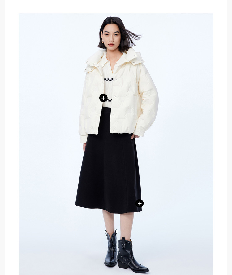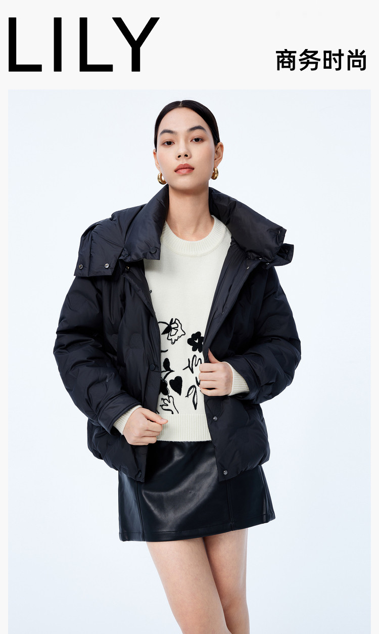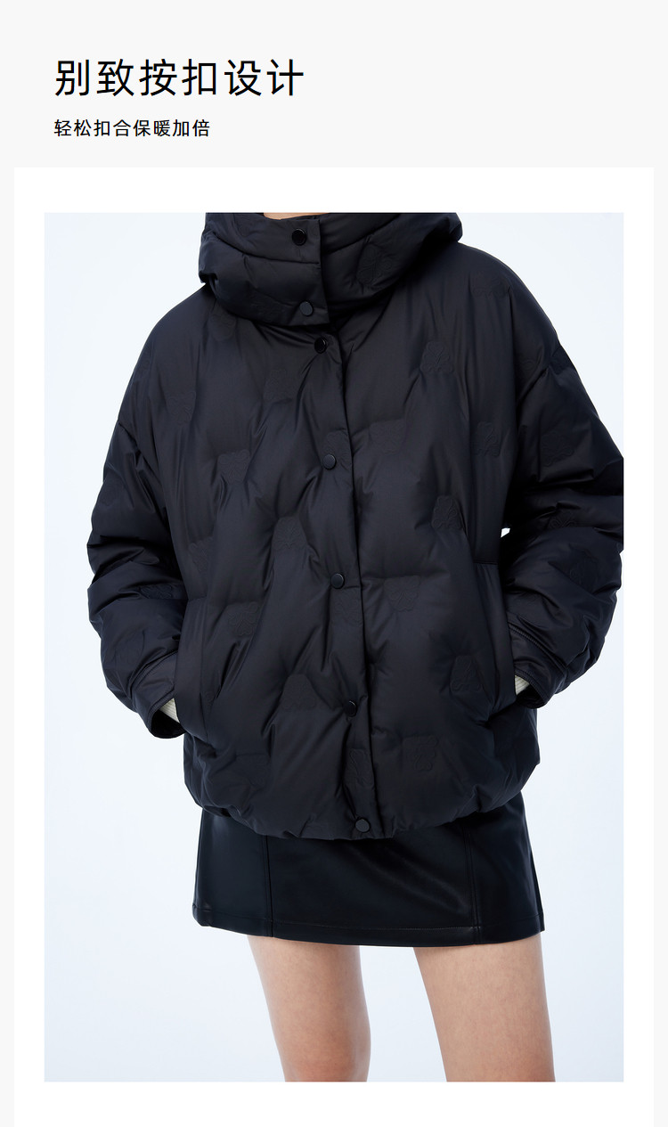 商品名称:冬季羽绒服外套女时尚休闲气质通勤款保暖连帽小个子短款羽绒服 748635