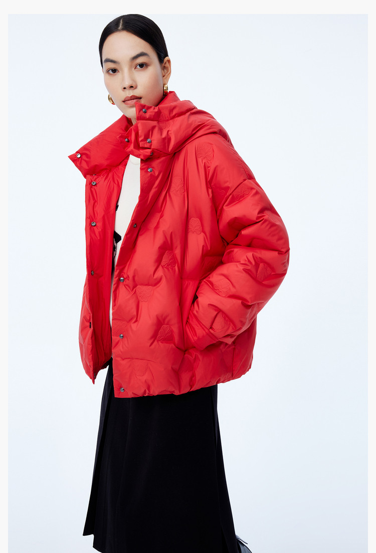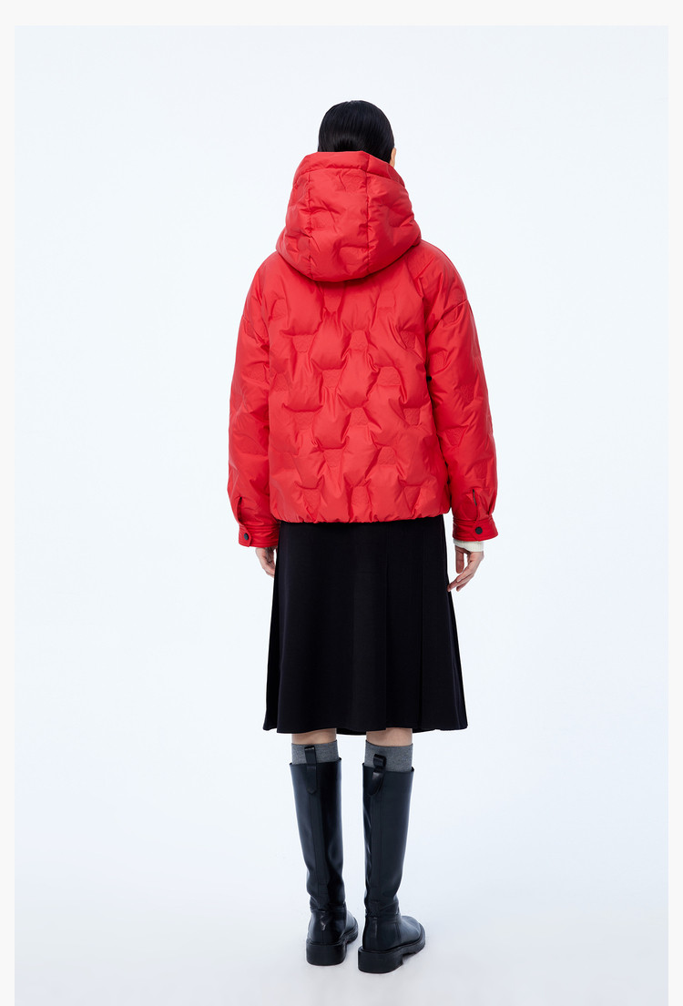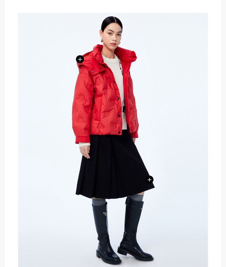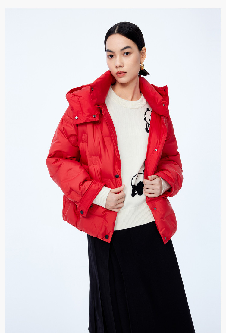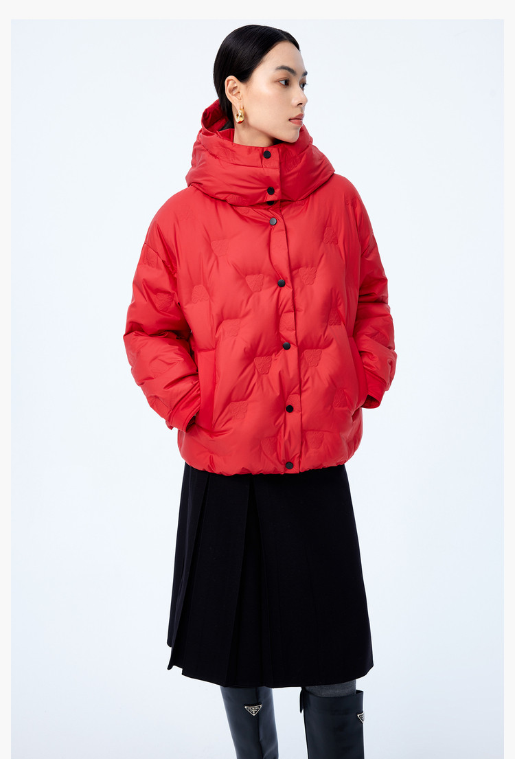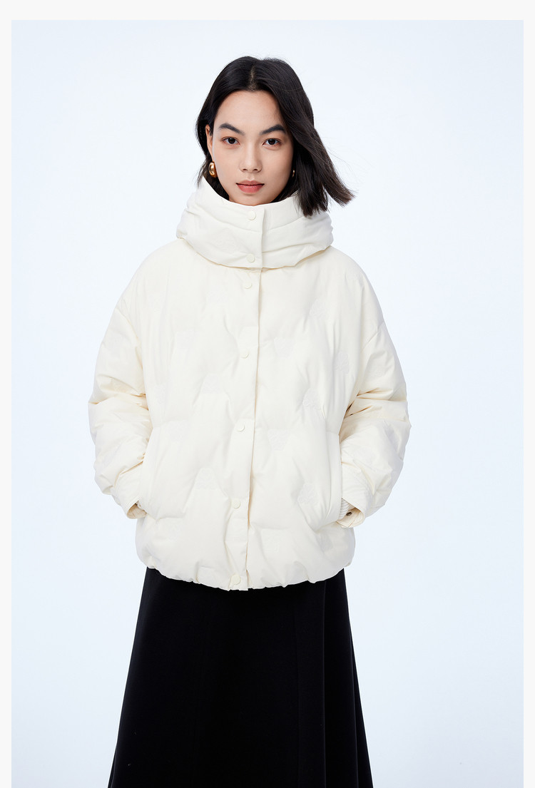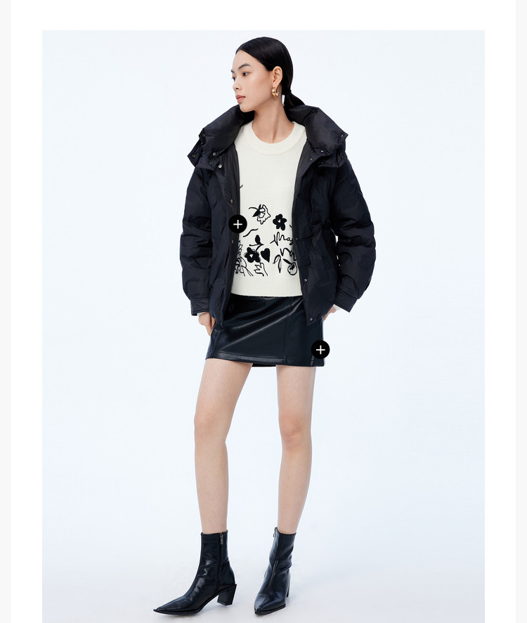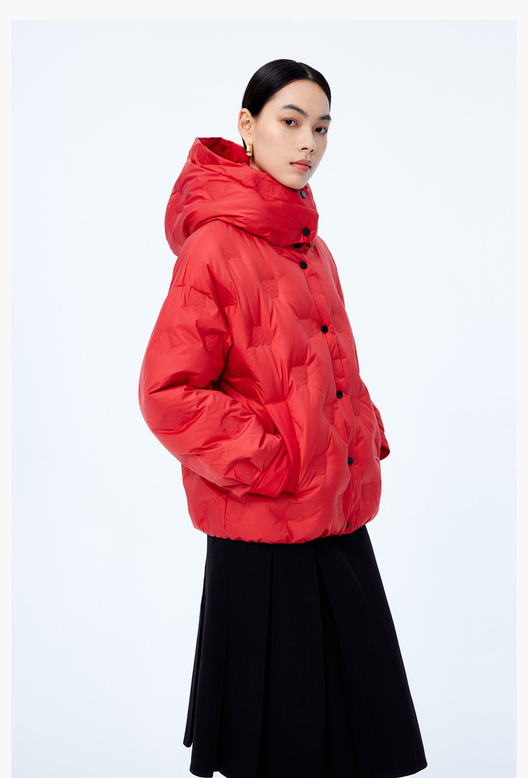 商品名称:冬季羽绒服外套女时尚休闲气质通勤款保暖连帽小个子短款羽绒服 748635