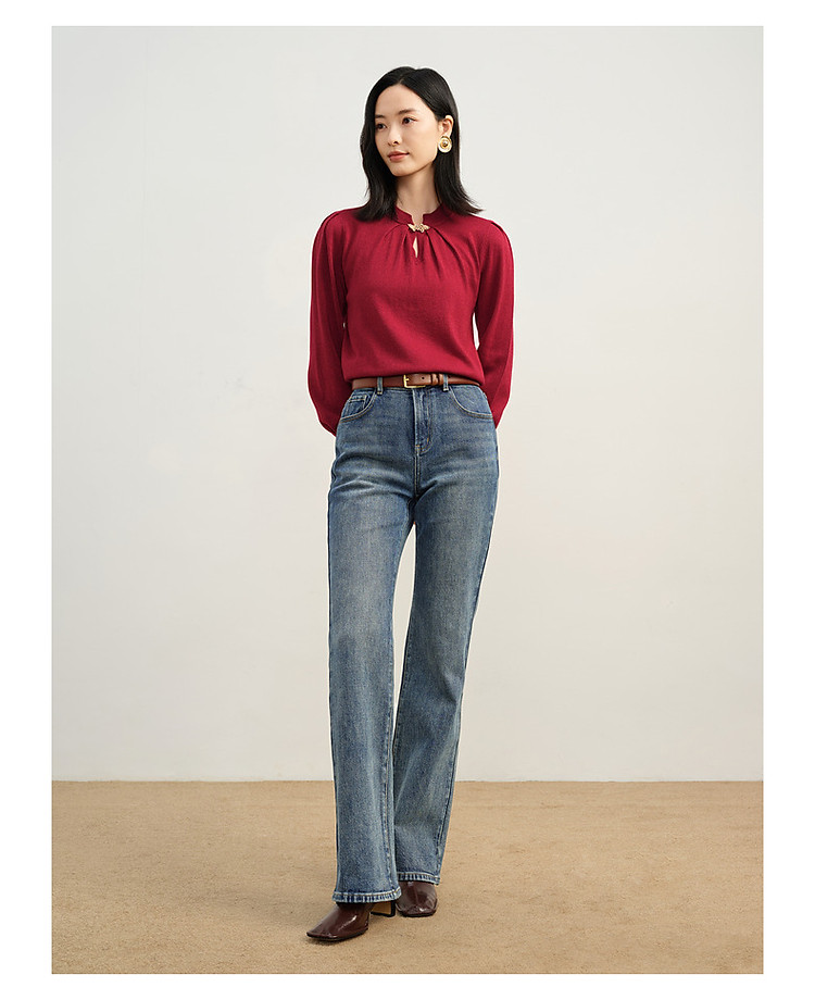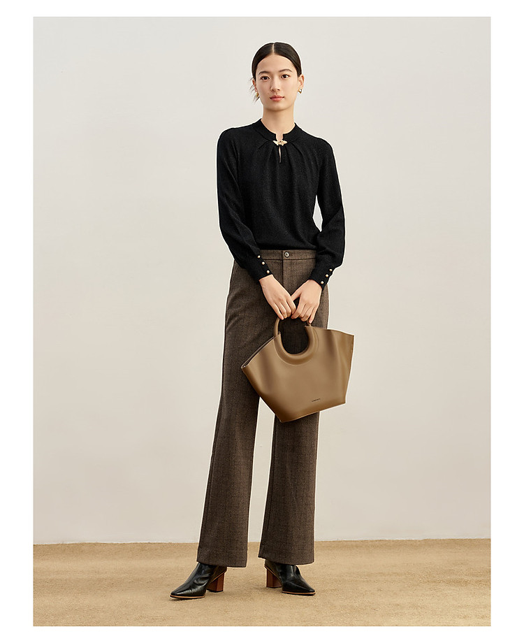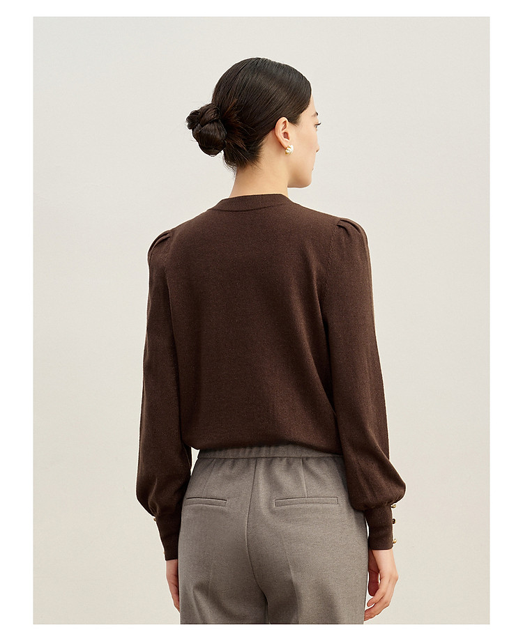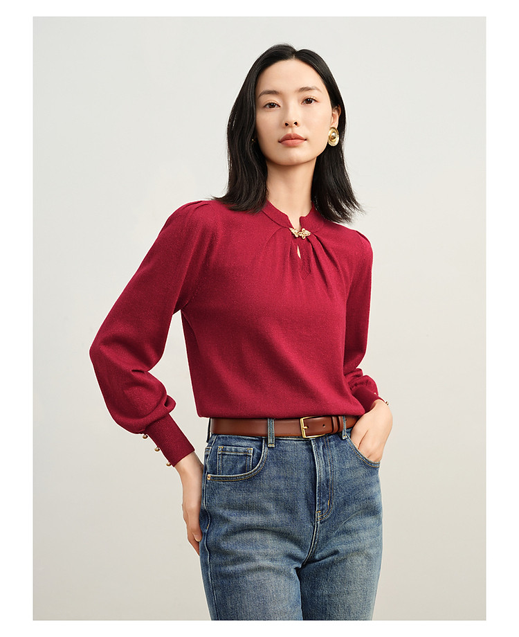 玖姿旗下安娜蔻系列新中式国风盘扣羊毛混纺针织毛衣女冬季 680716