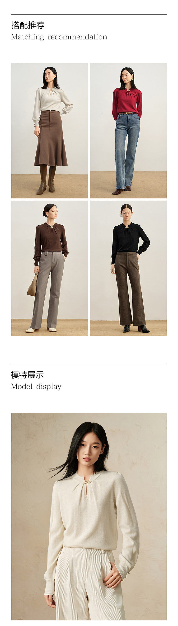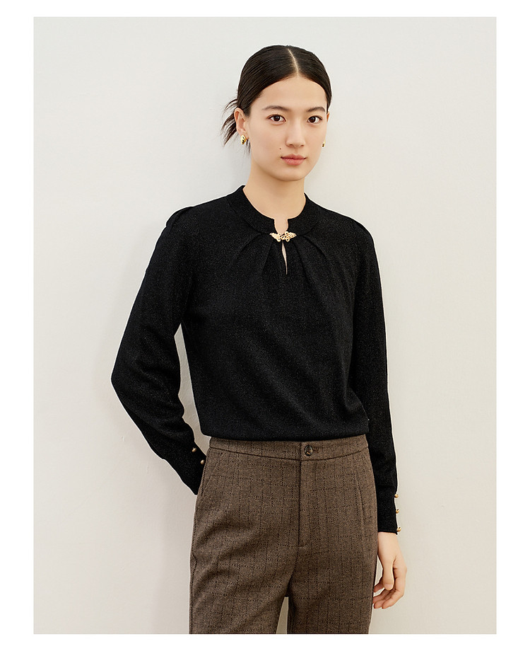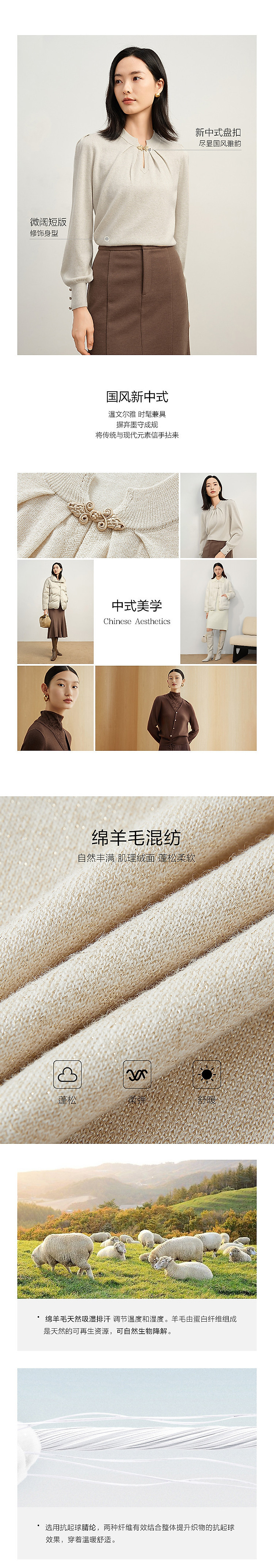 商品名称:玖姿旗下安娜蔻系列新中式国风盘扣羊毛混纺针织毛衣女冬季 680716