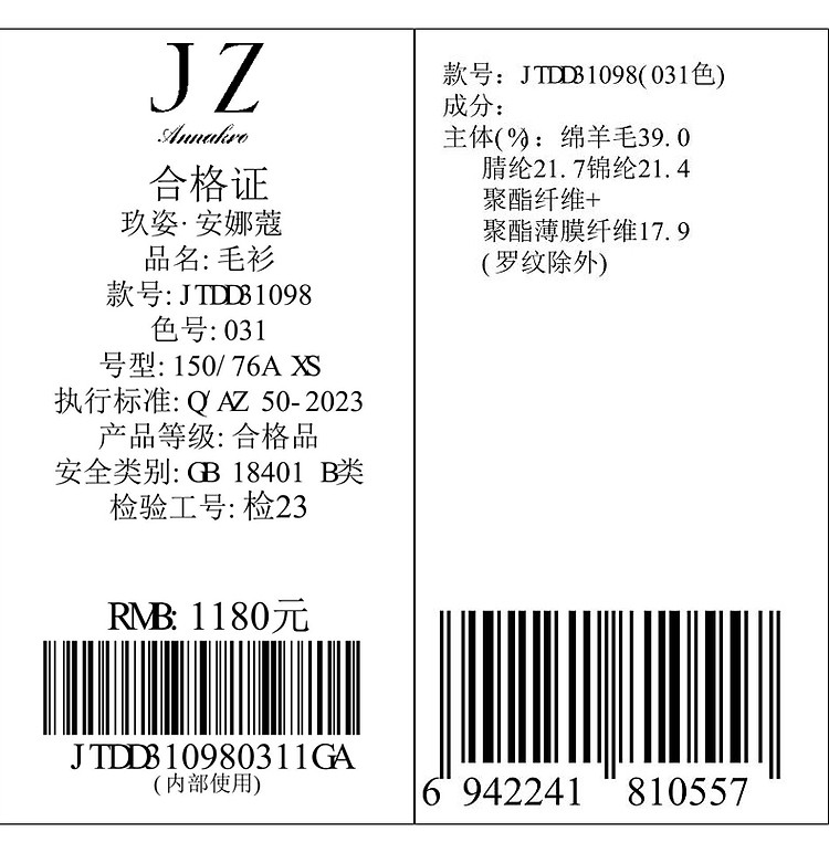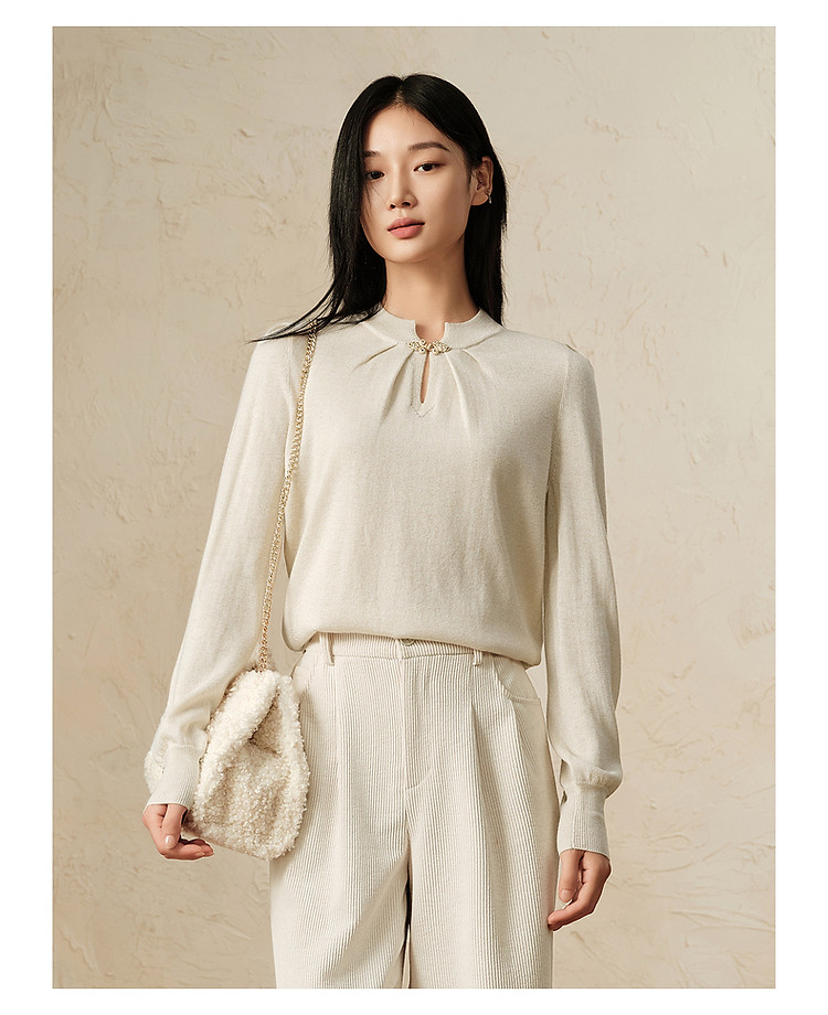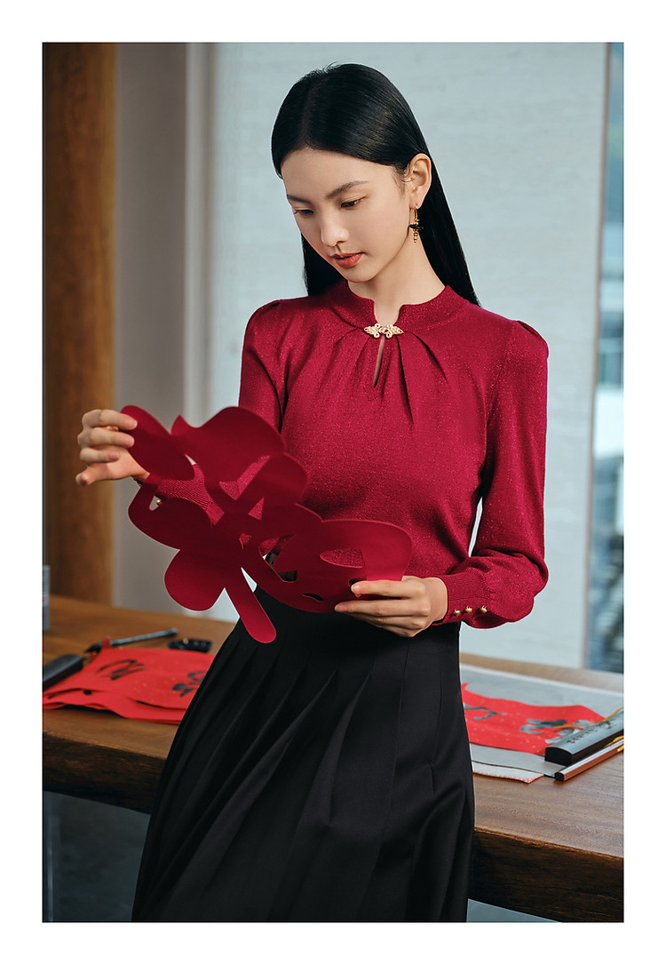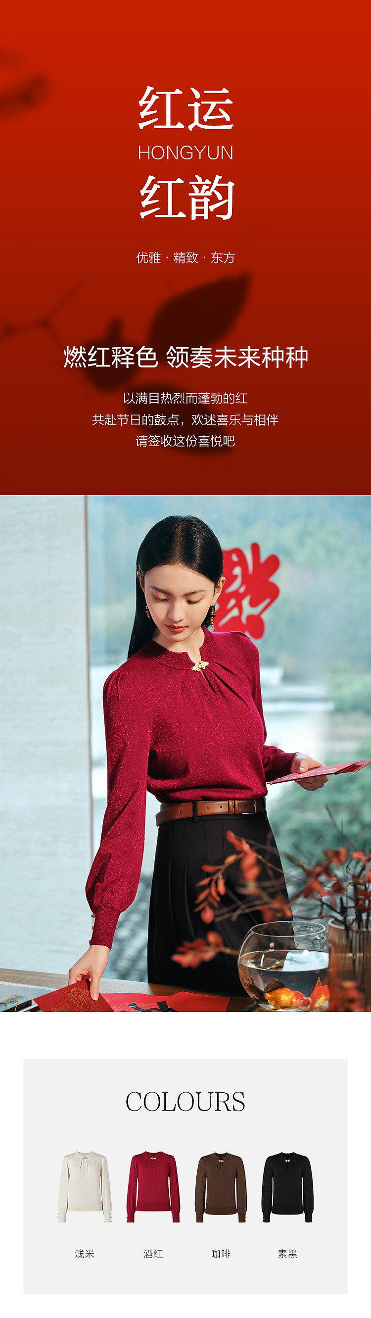商品名称:玖姿旗下安娜蔻系列新中式国风盘扣羊毛混纺针织毛衣女冬季 680716